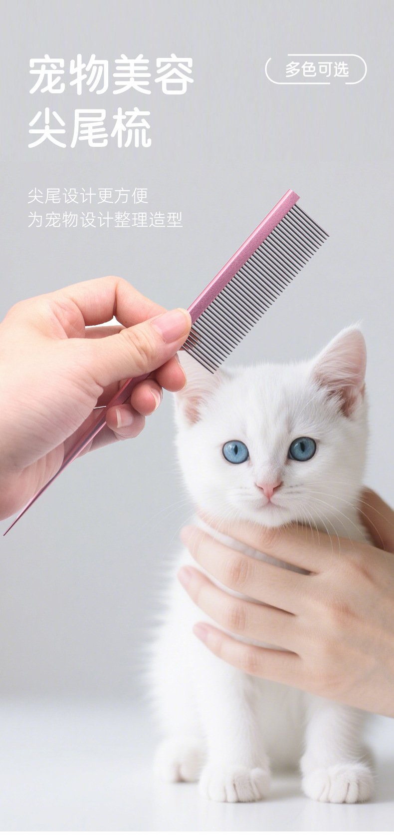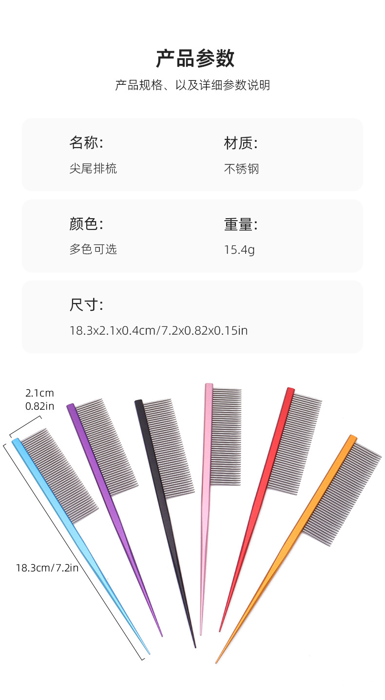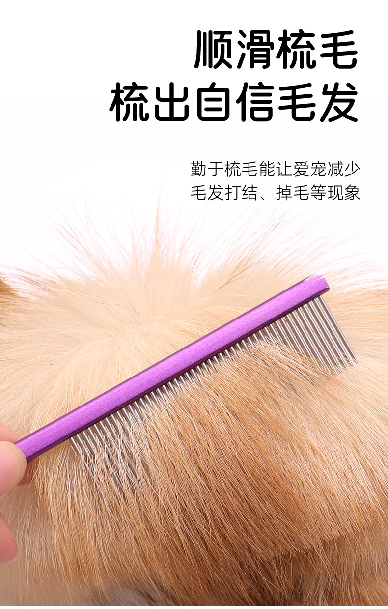 Peine de gato, artefacto, peine de cola puntiaguda de acero inoxidable, peine para mascotas, peine de pelo de dientes densos, peine de perro de línea dividida