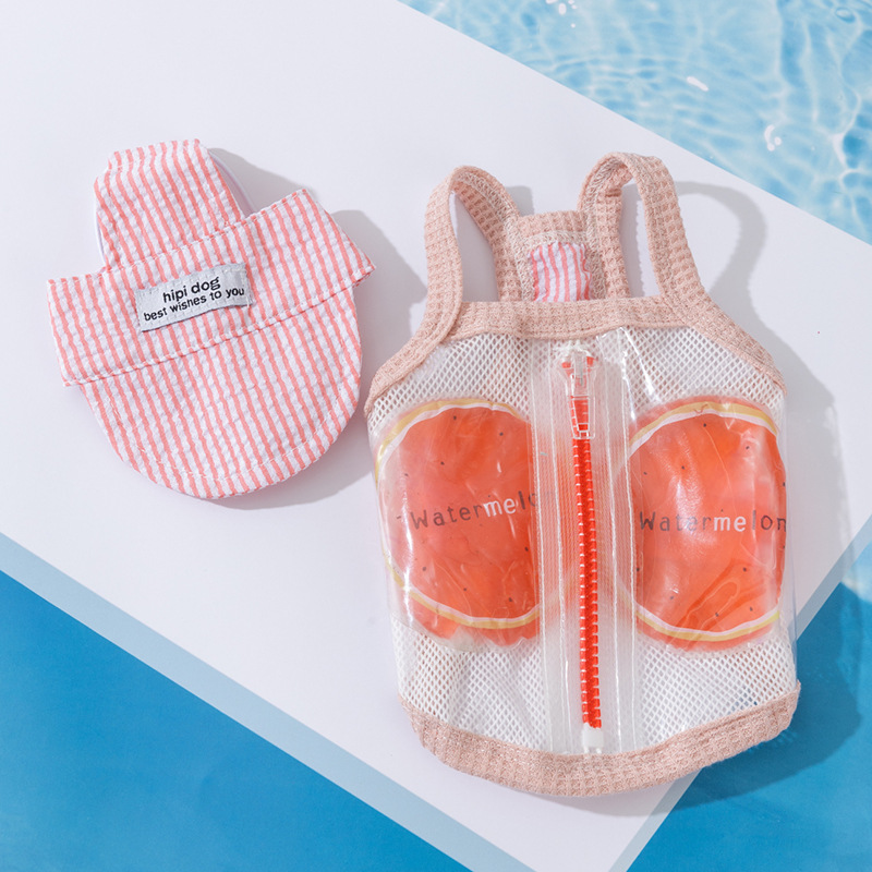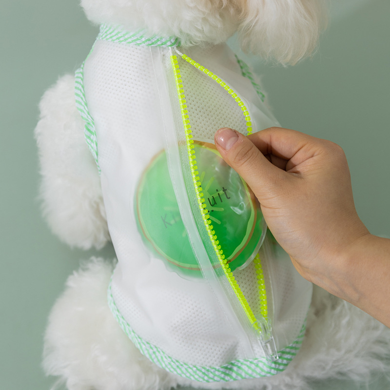 Bolsa de hielo de frutas de dibujos animados de enfriamiento de perro de verano Ropa fresca para perros pequeños y medianos Ropa para perros al aire libre de verano