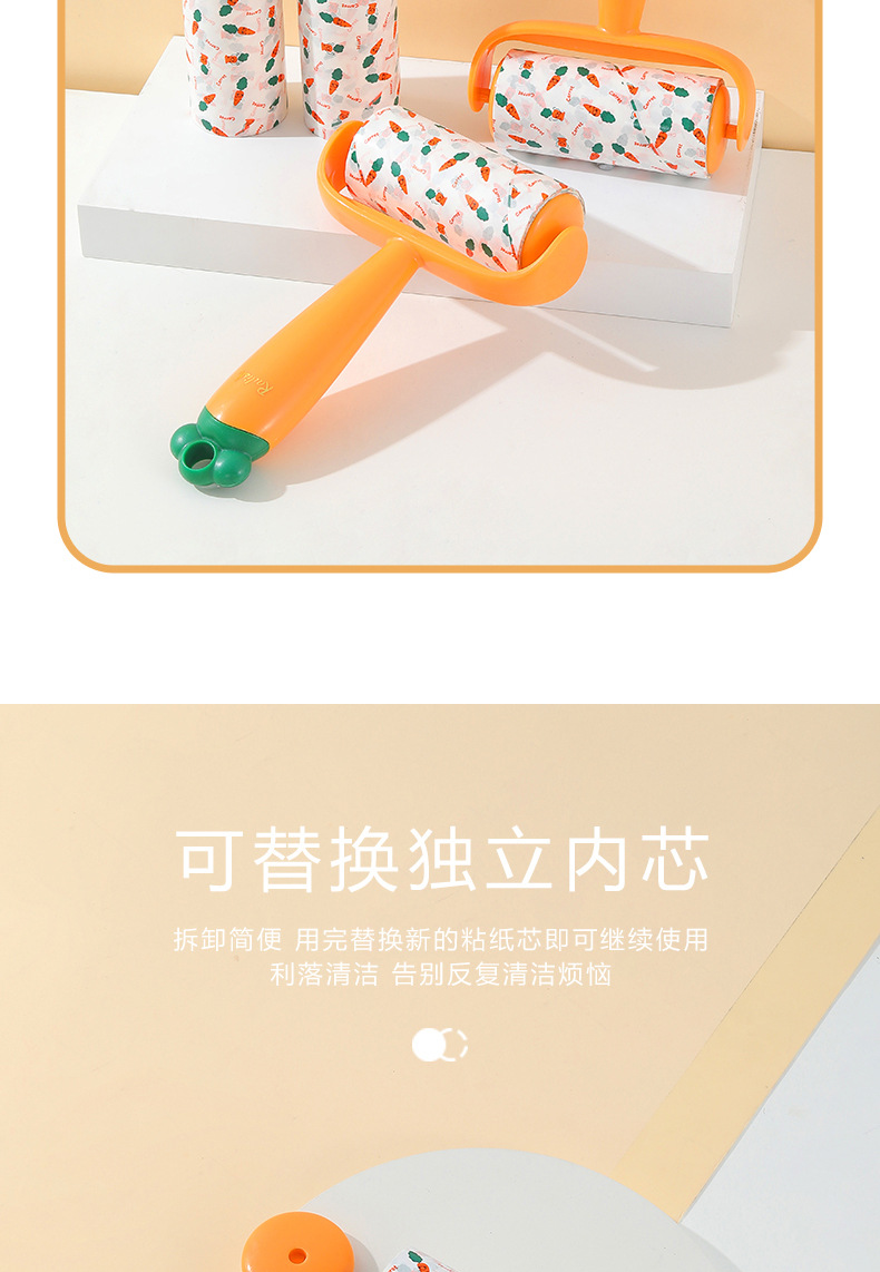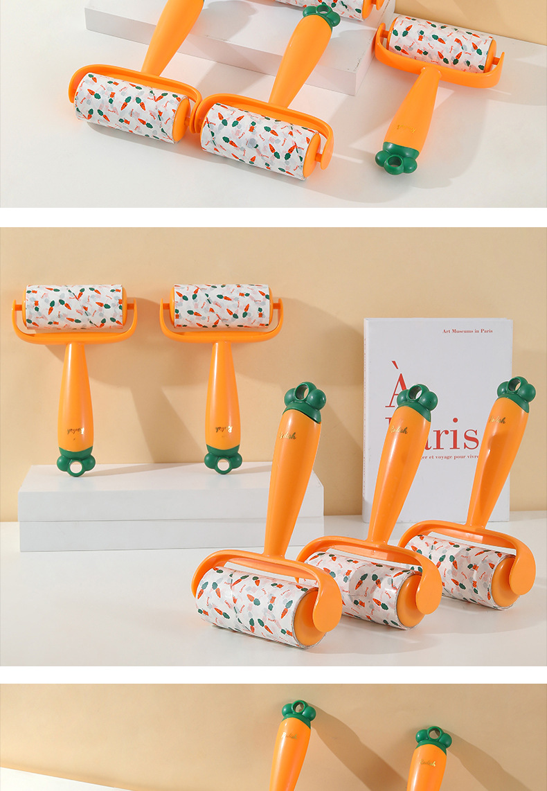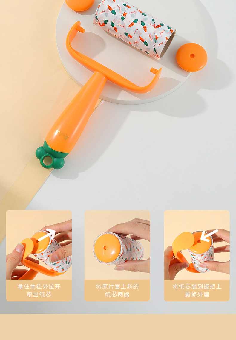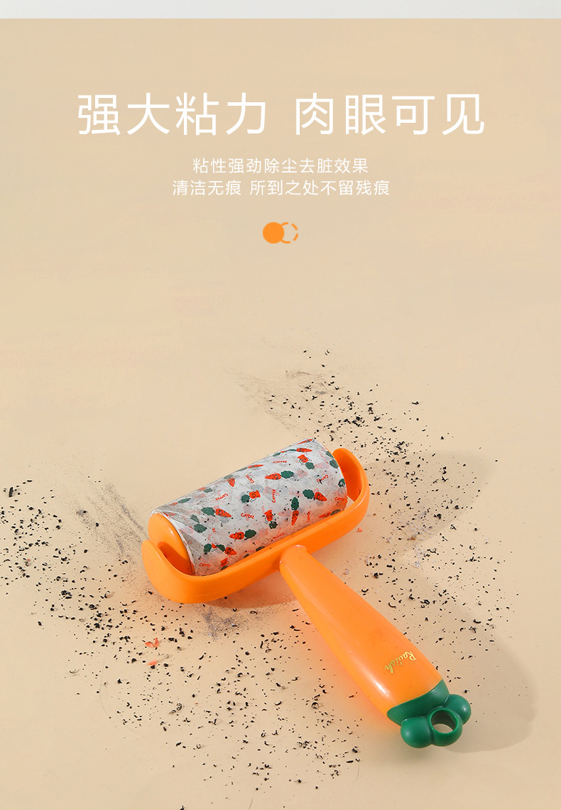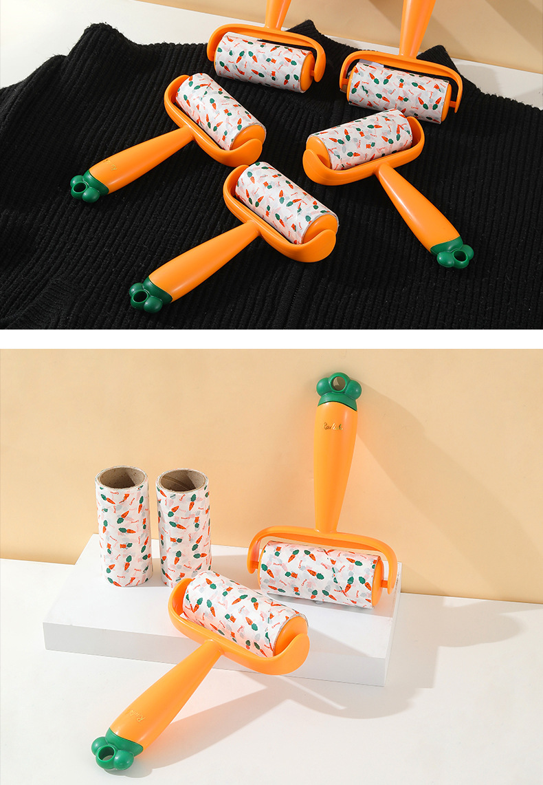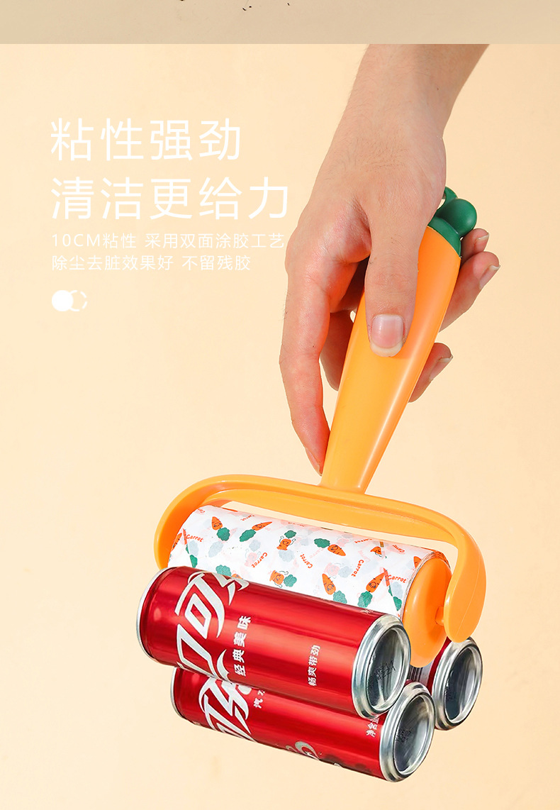 Nuevo producto Dispositivo de depilación pegajosa de zanahoria, eliminación de polvo, reemplazo de lana pegajosa, rodillo de rollo de papel, cepillo de depilación pegajosa push-pull