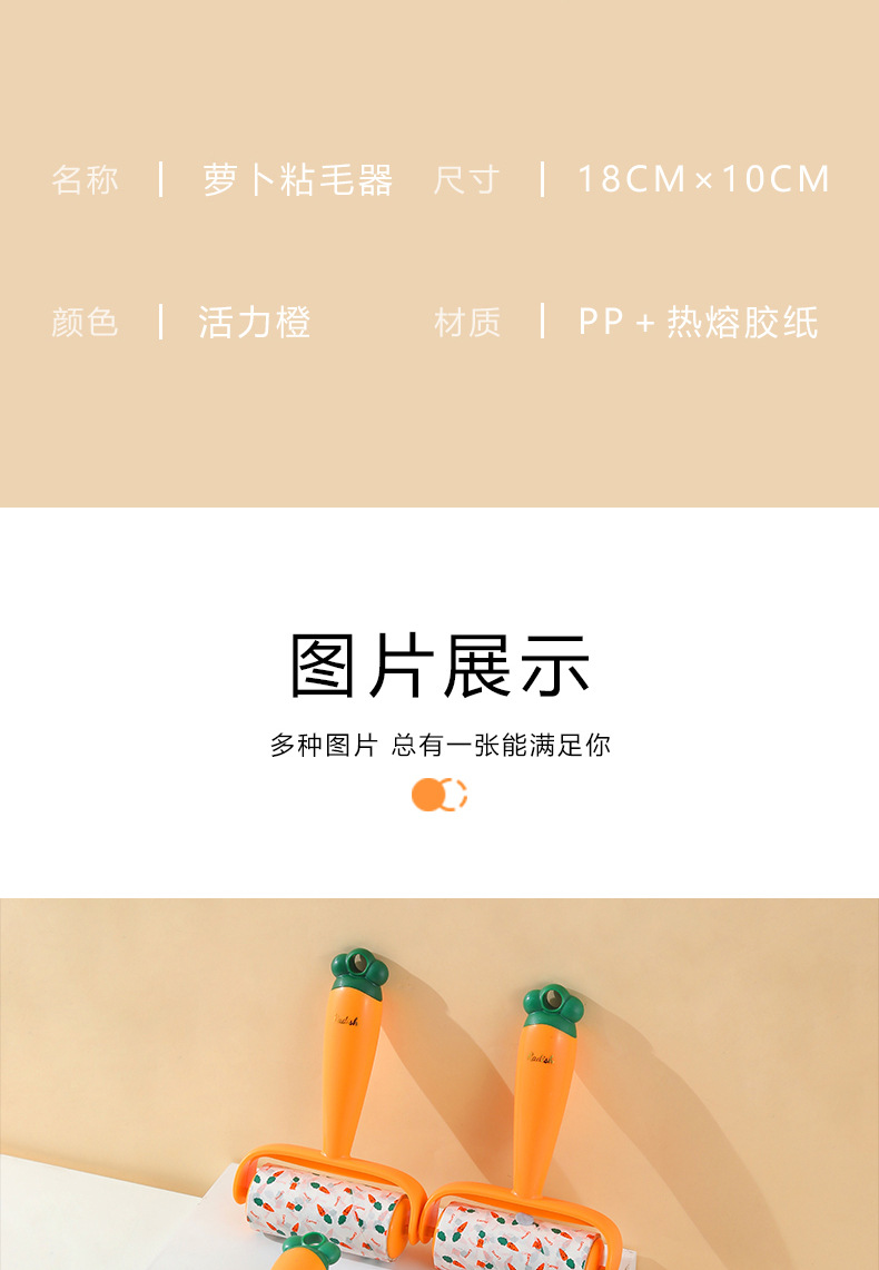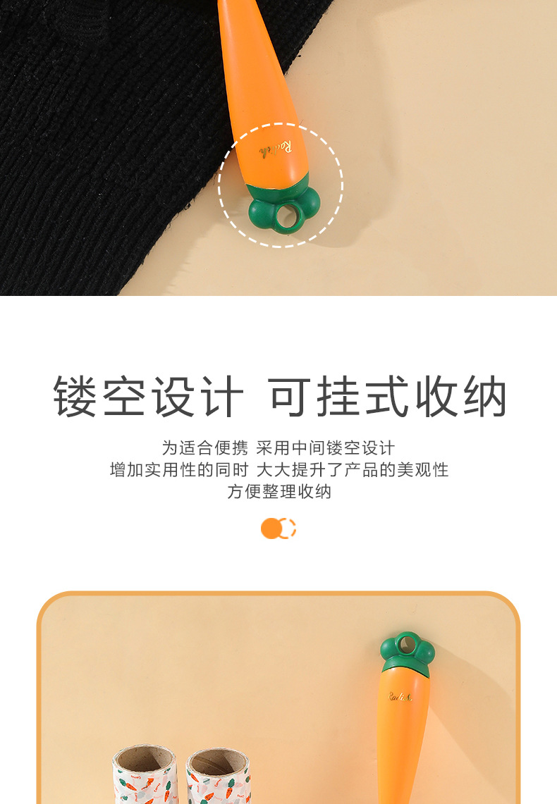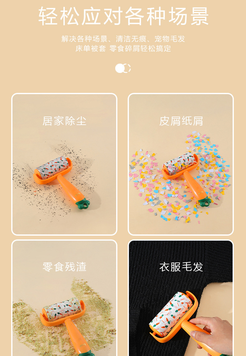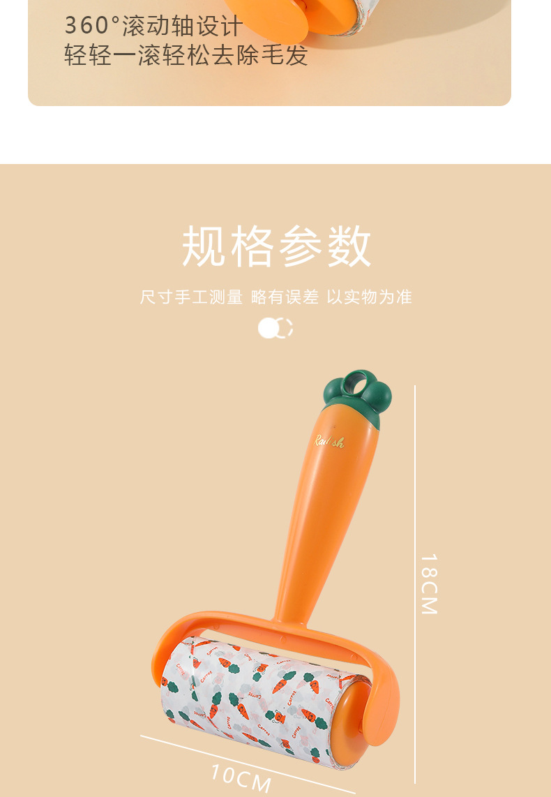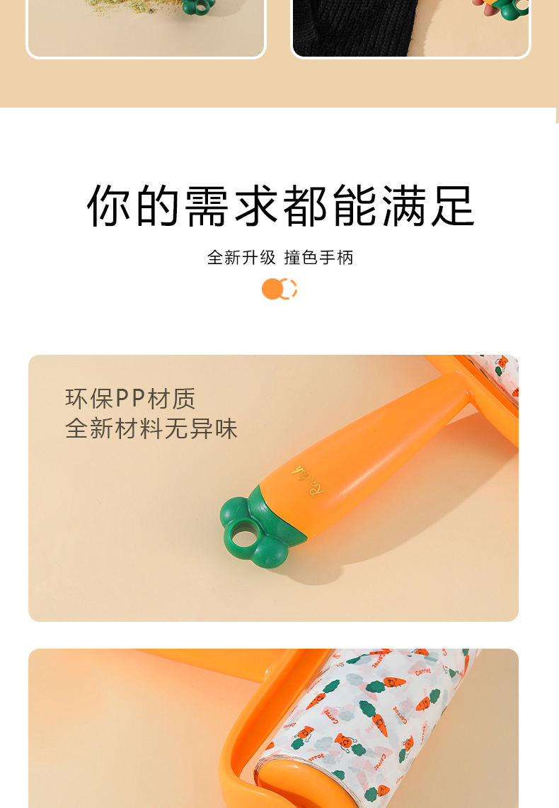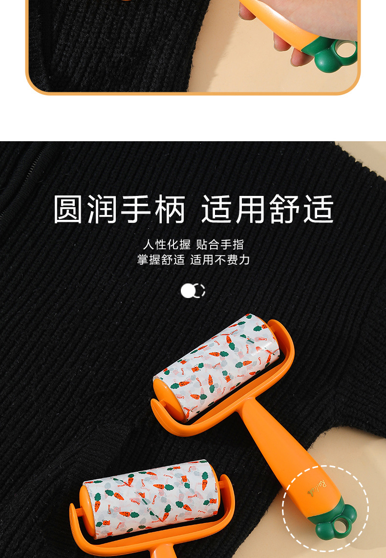 Nuevo producto Dispositivo de depilación pegajosa de zanahoria, eliminación de polvo, reemplazo de lana pegajosa, rodillo de rollo de papel, cepillo de depilación pegajosa push-pull