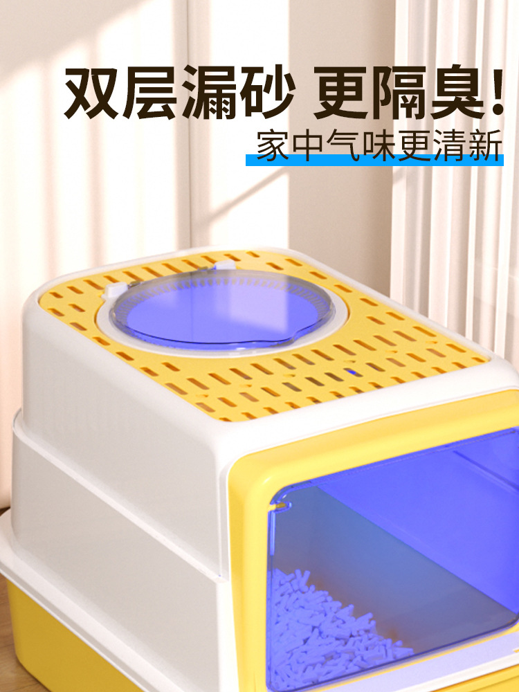 La caja de arena para gatos está completamente cerrada, los productos para gatos, el inodoro para gatos de gran tamaño, la arena y el olor