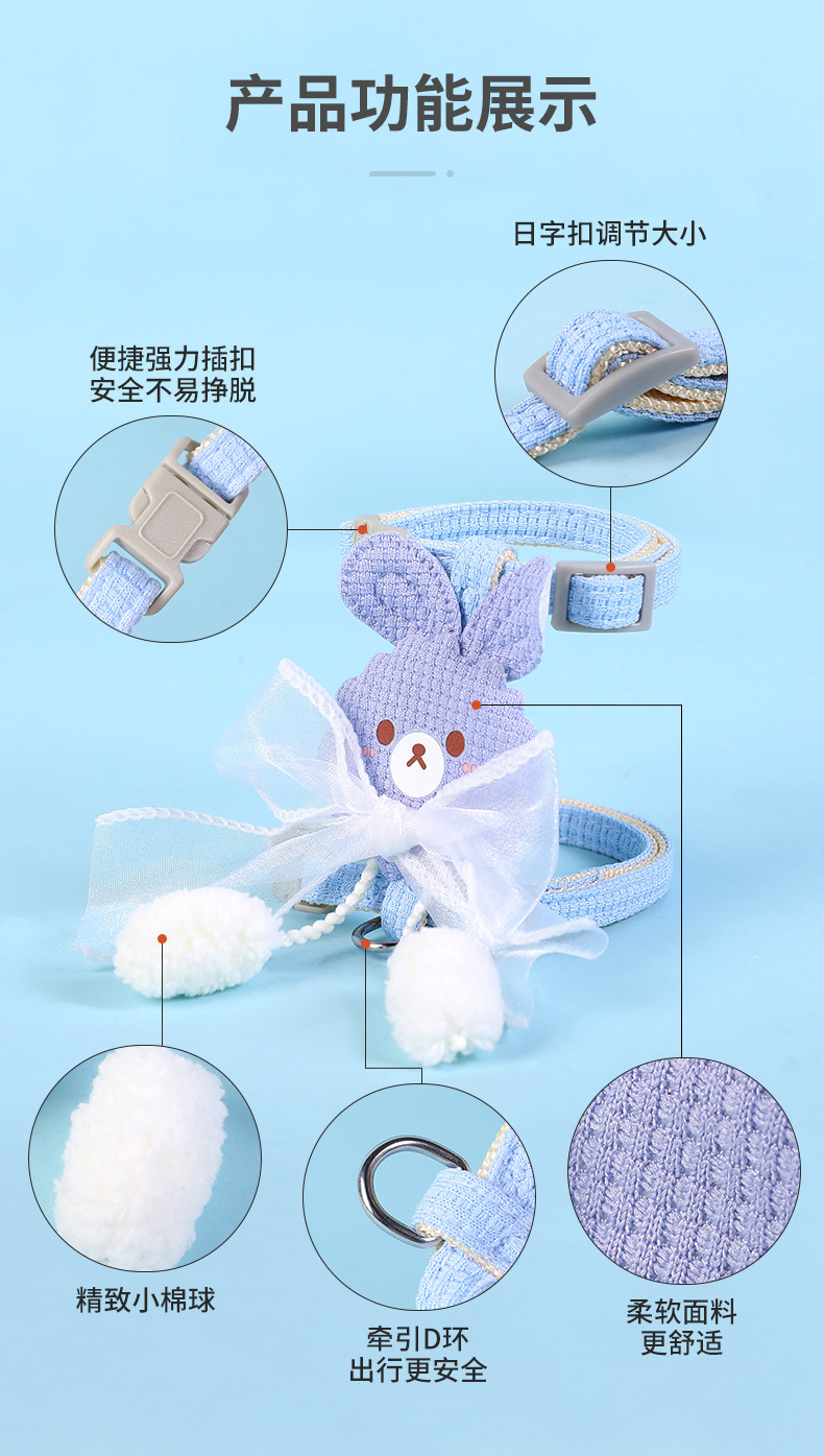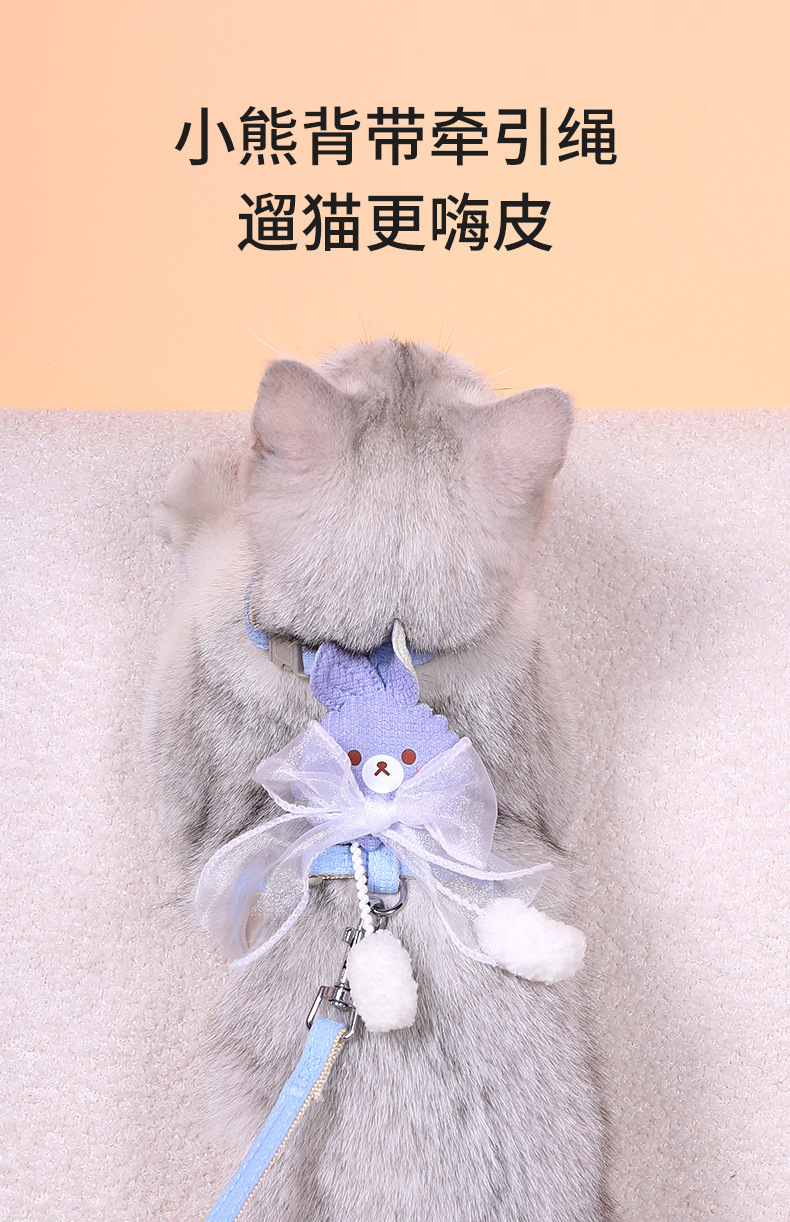 Fábrica al por mayor correa de gato en forma de I no apretado cuello gato cadena correa de gato Cinta ajustable oso cuerda de gato