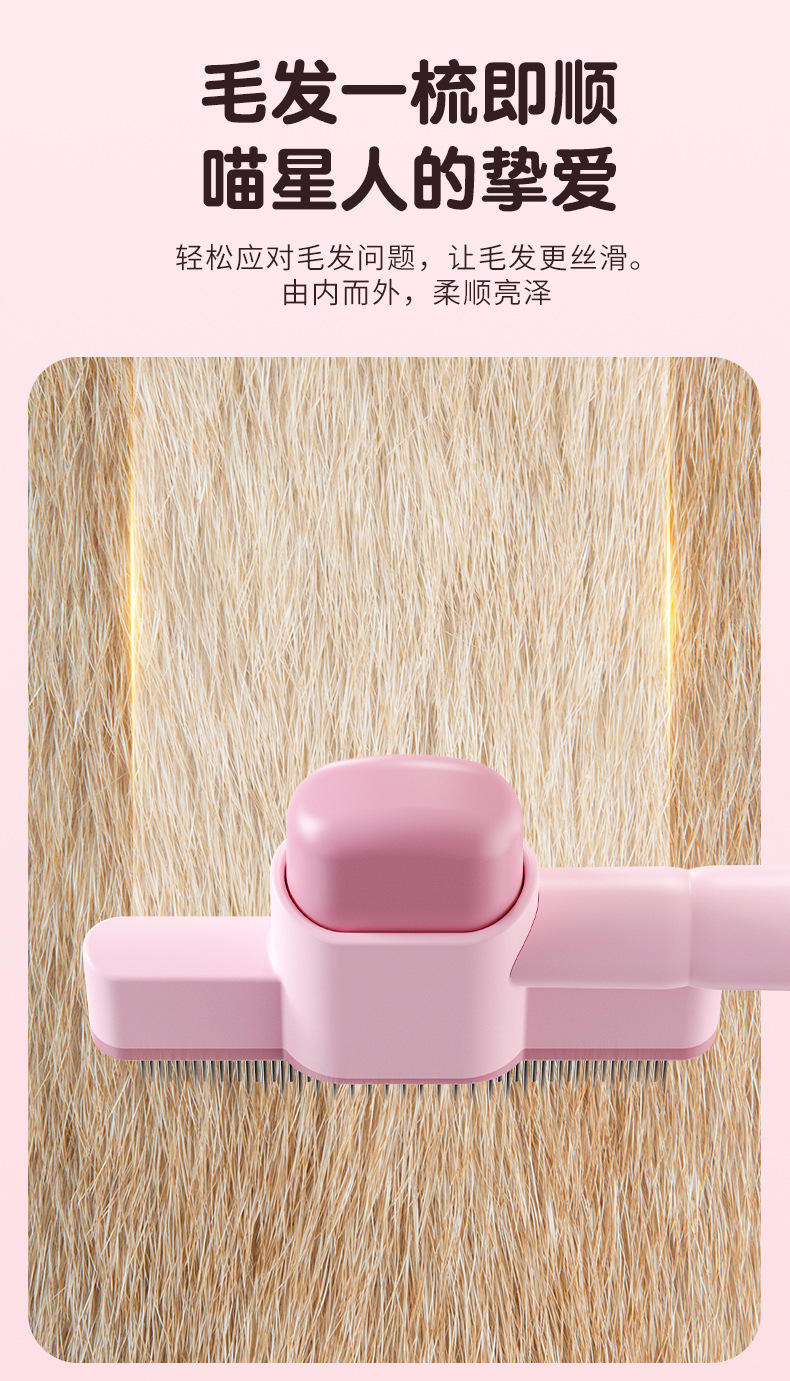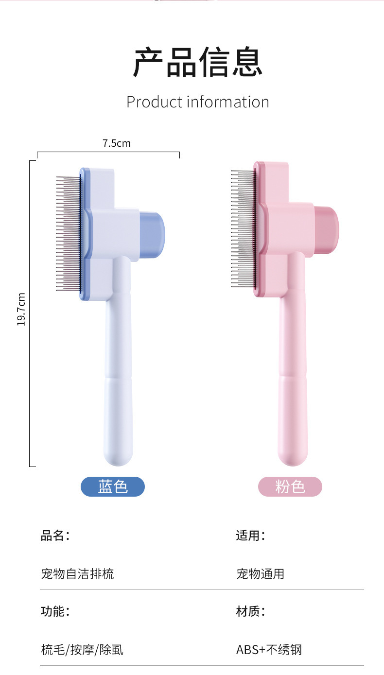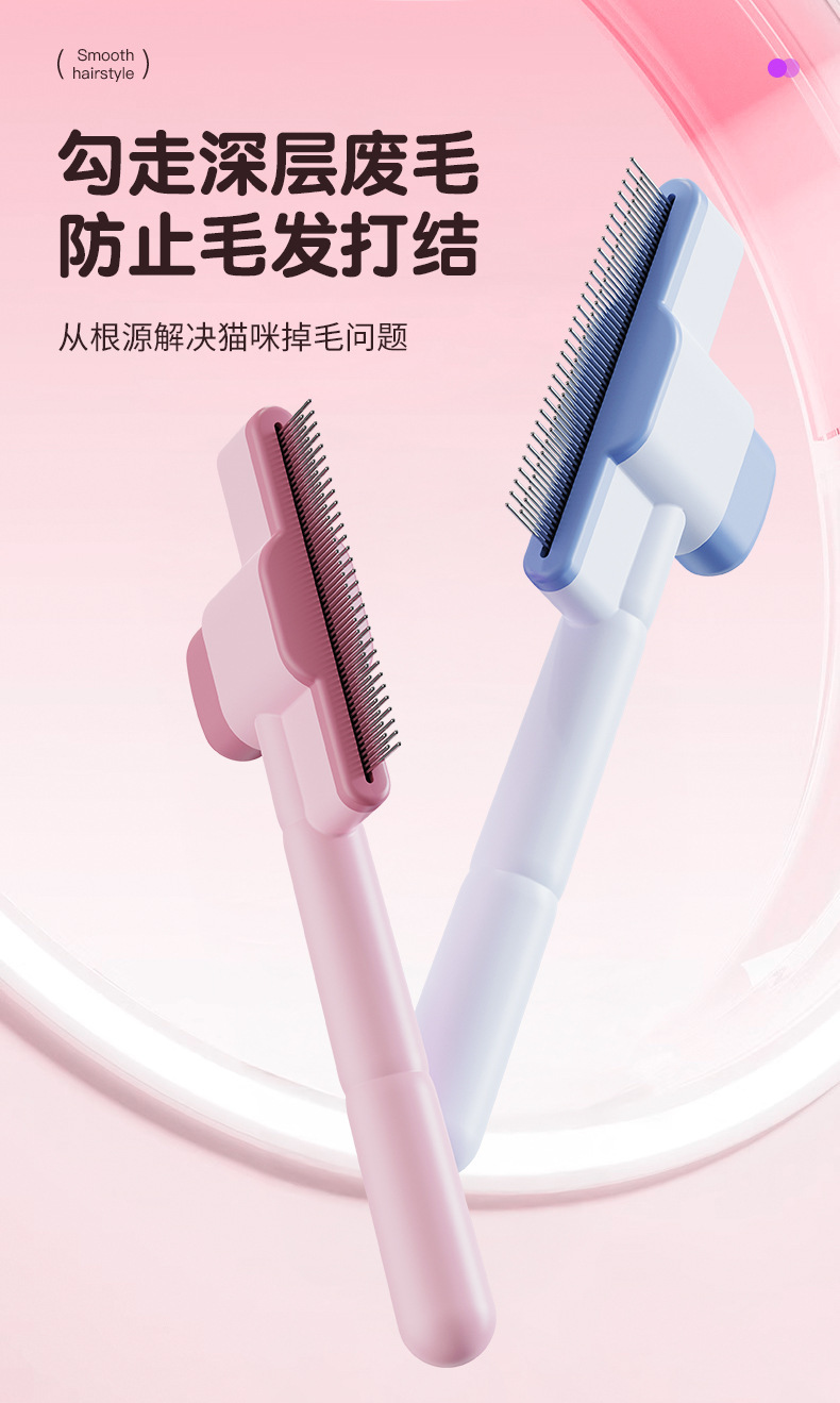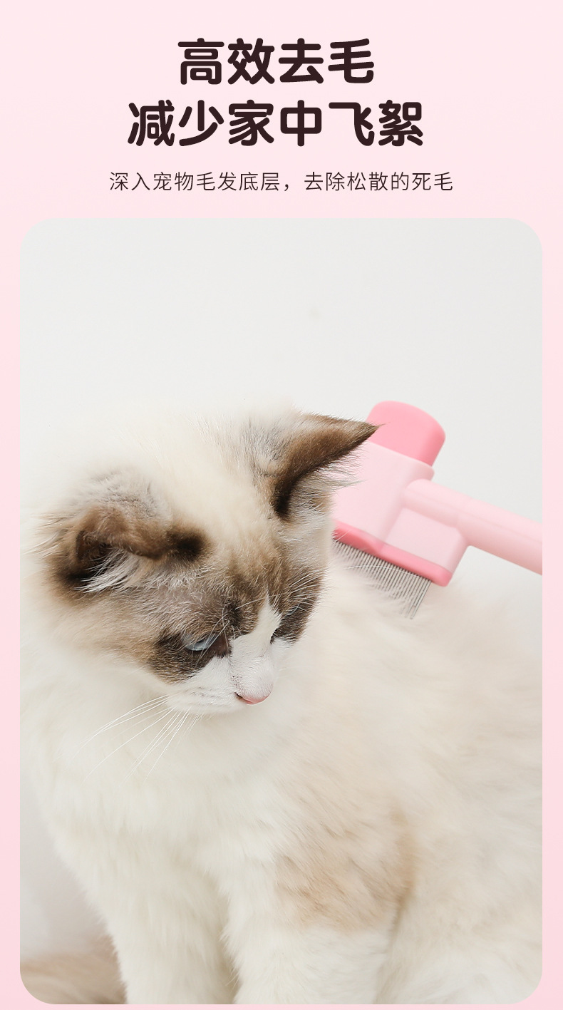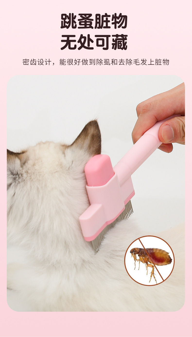 Masaje de peine de pelo de gato, eliminación de pulgas, eliminación de artefactos de pelo flotante, peine de fila de dientes densos, autolimpiante, limpieza de nudos para gatos de pelo largo