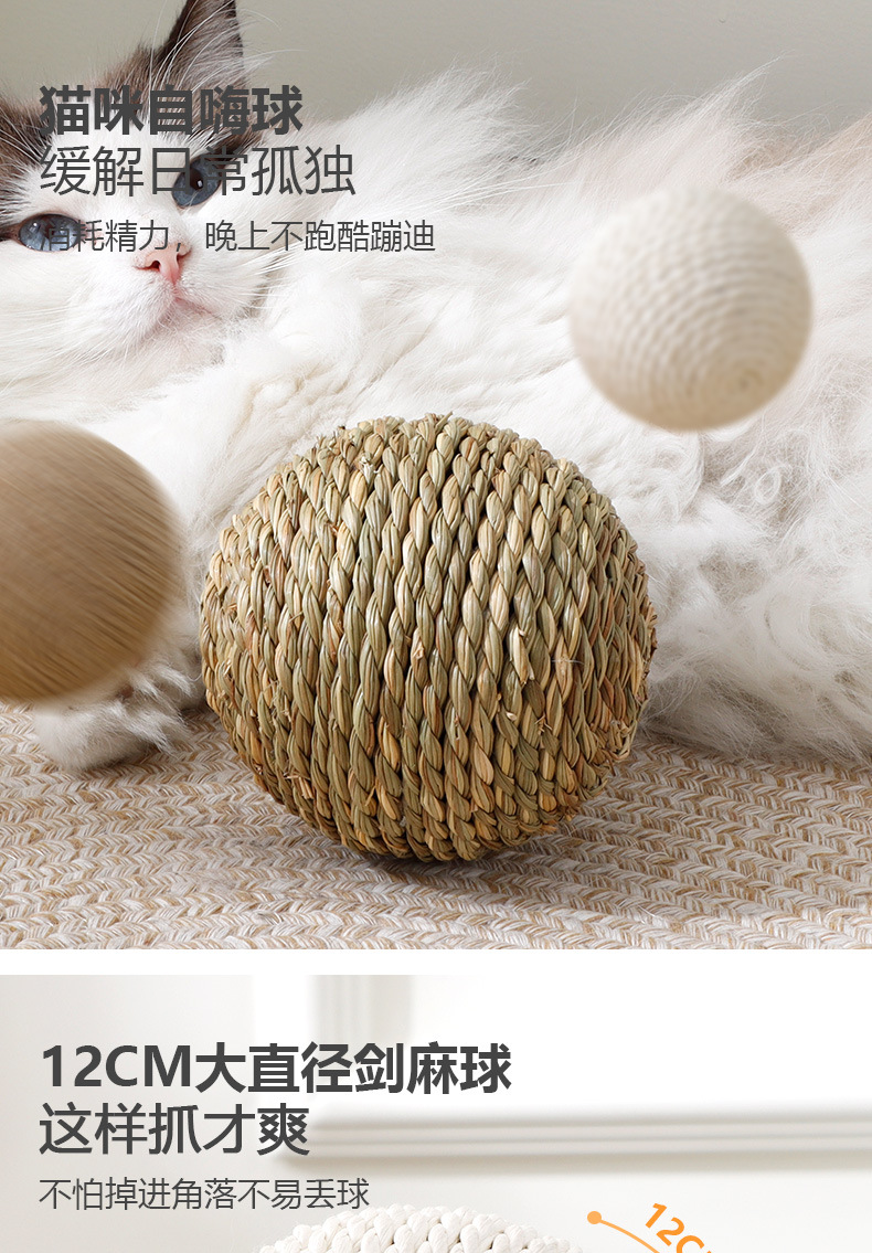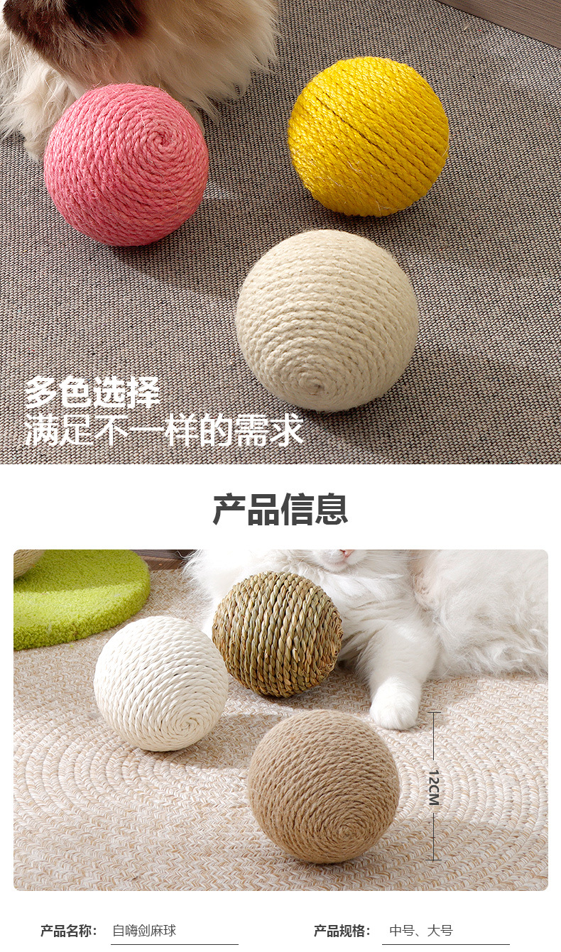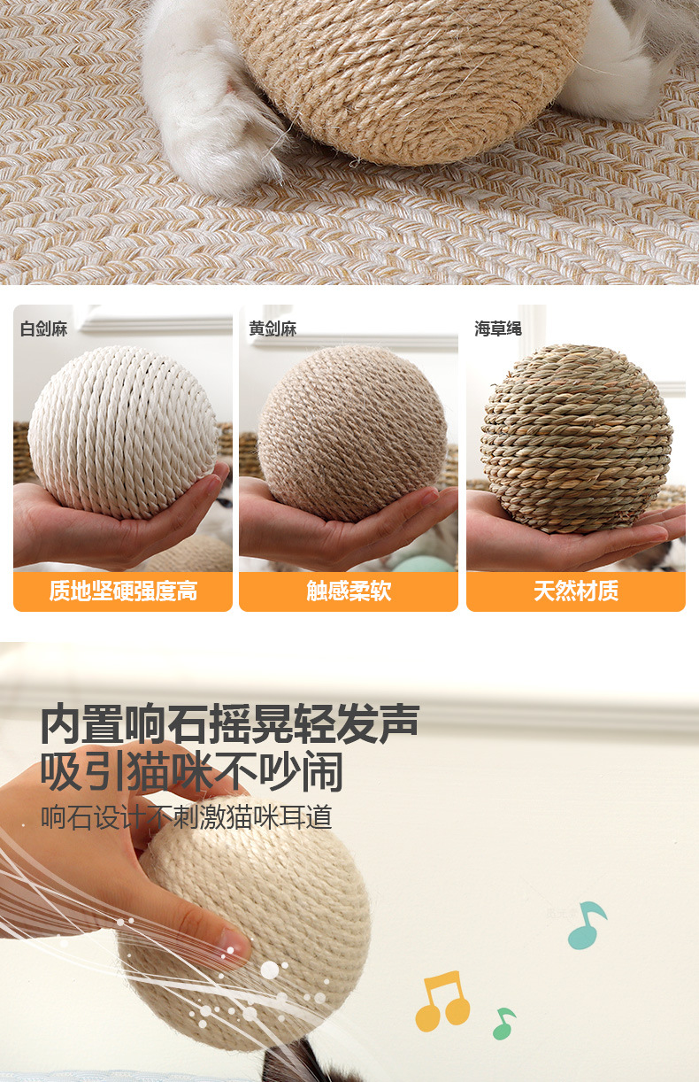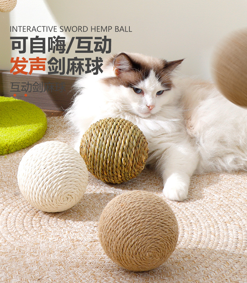 Bola de sisal de gran tamaño al por mayor, artefacto de rechinar de dientes de auto-hey, bola de gato divertida, bola de sonido resistente a morder, juguetes para gatos