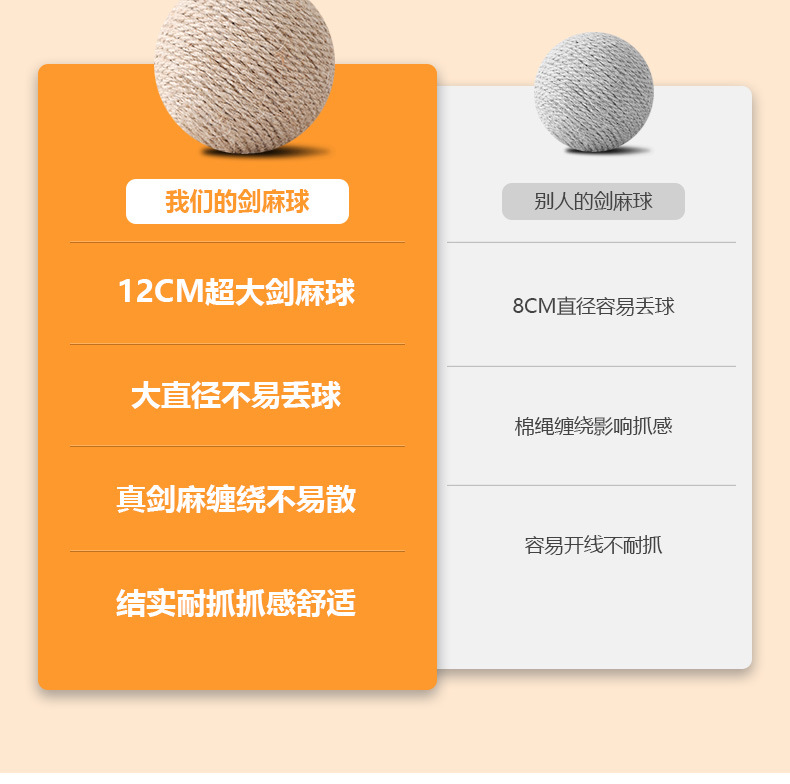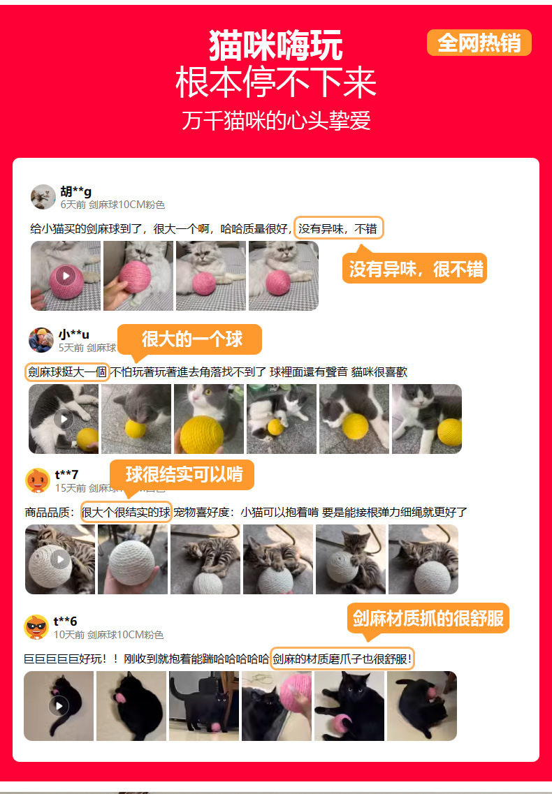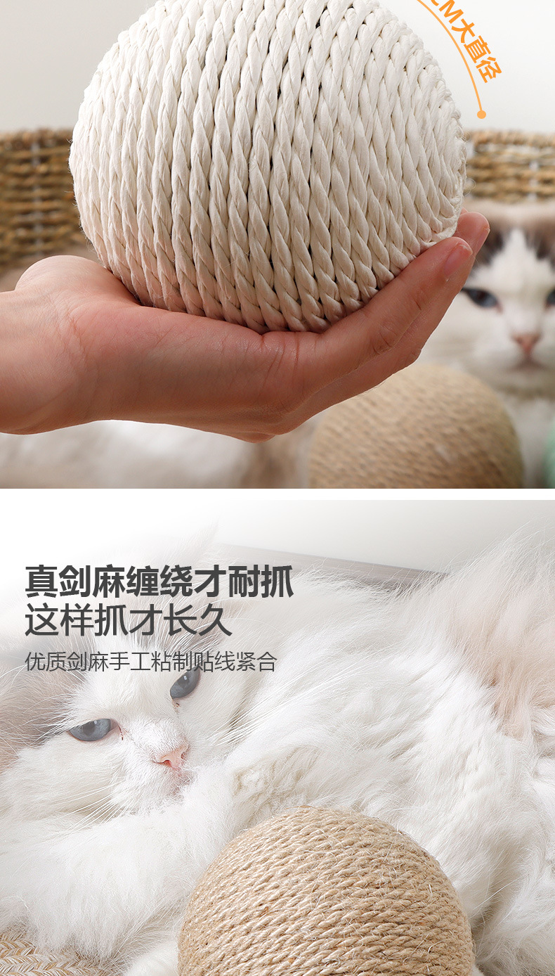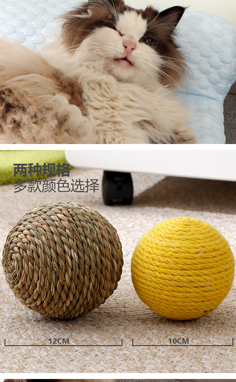 Bola de sisal de gran tamaño al por mayor, artefacto de rechinar de dientes de auto-hey, bola de gato divertida, bola de sonido resistente a morder, juguetes para gatos