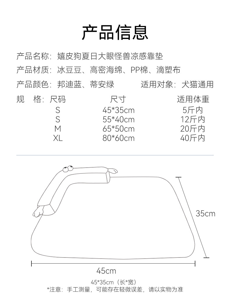 Primavera y verano perro Big Eye Monster cojín fresco sofá perrera nido de gato nido de mascotas Peluche pequeño perro estera