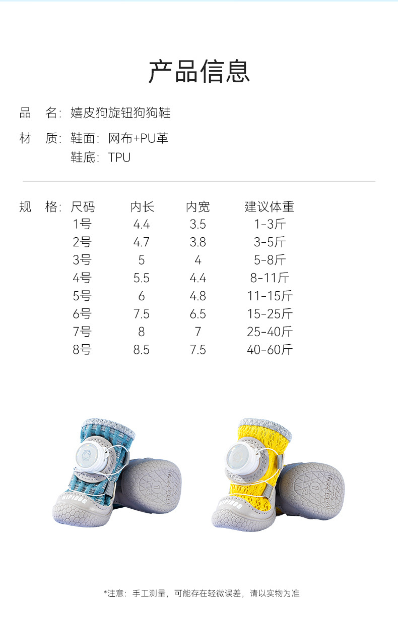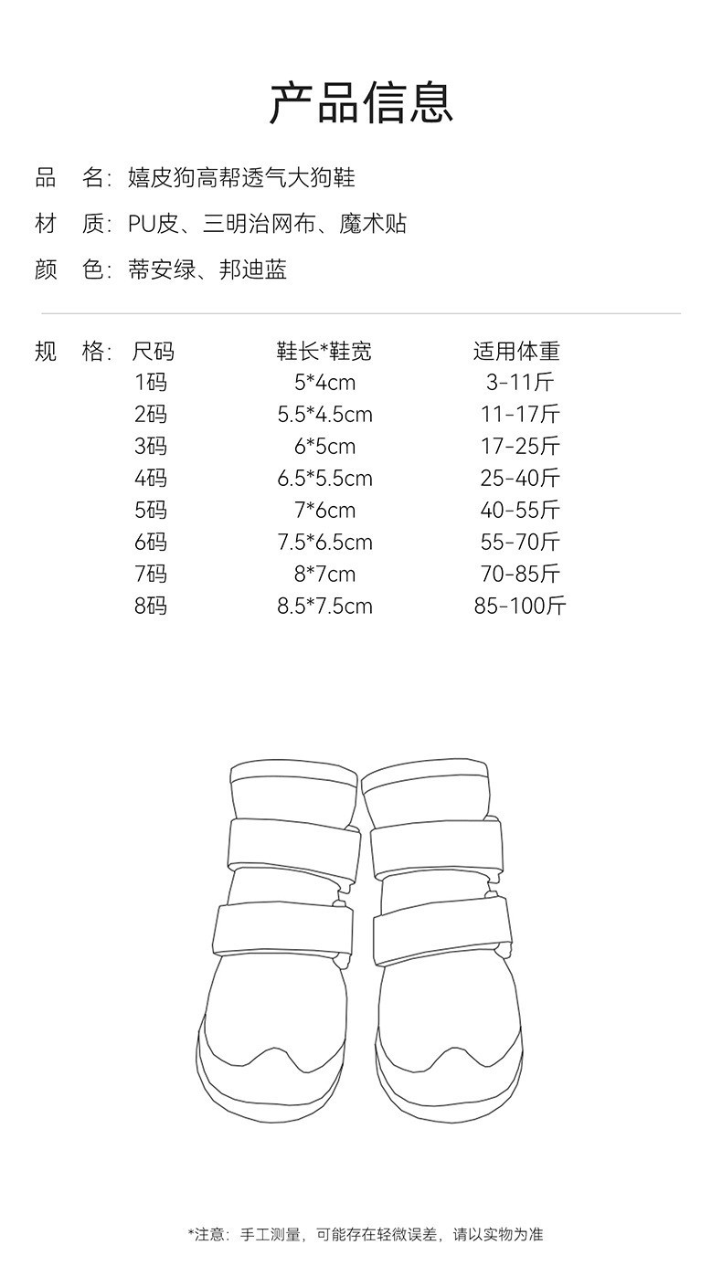 | Colores | Tiritas (paquete de 2),Amarillo roca (paquete de 2),Tiritas (paquete de 4),Amarillo roca (paquete de 4),Perros de razas medianas a grandes - Bondi Blue (paquete de 2),Perros de razas medianas a grandes - Tian Green (paquete de 2),Perros medianos a grandes - Bondi Blue (paquete de 4),Perros de razas medianas a grandes - Tian Green (paquete de 4),Malla amarilla (paquete de 4),Malla blanca (paquete de 4),Malla negra (paquete de 4),Zapatos amarillos de suela blanda.,Zapatos verdes de suela blanda. |