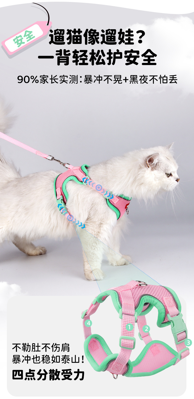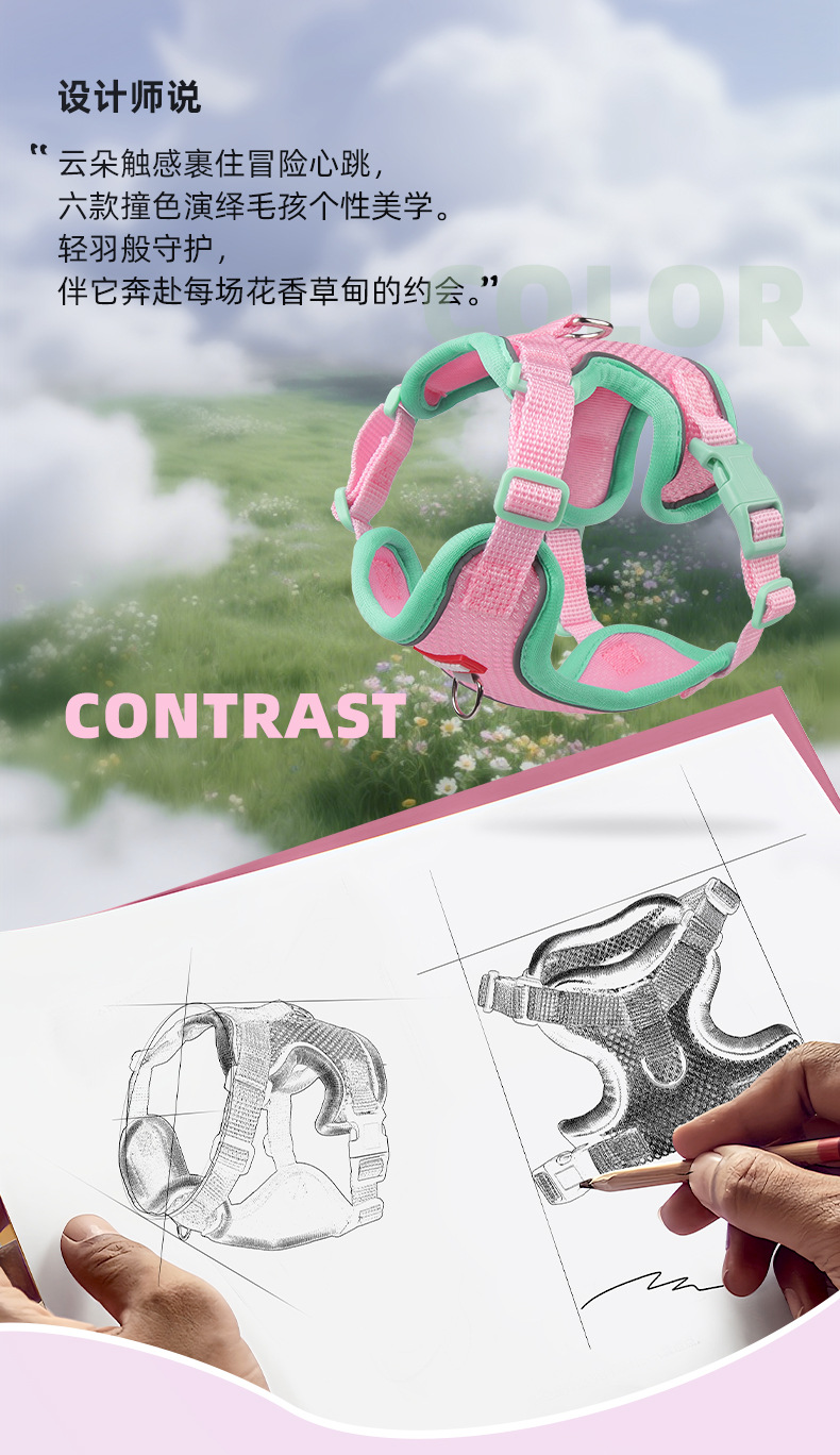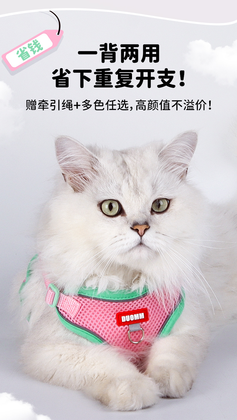 Cuerda de tracción para mascotas mejorada de color de contraste clásico transfronterizo, malla de doble capa, suave y cómoda, se puede colgar, correa de gato de marca famosa