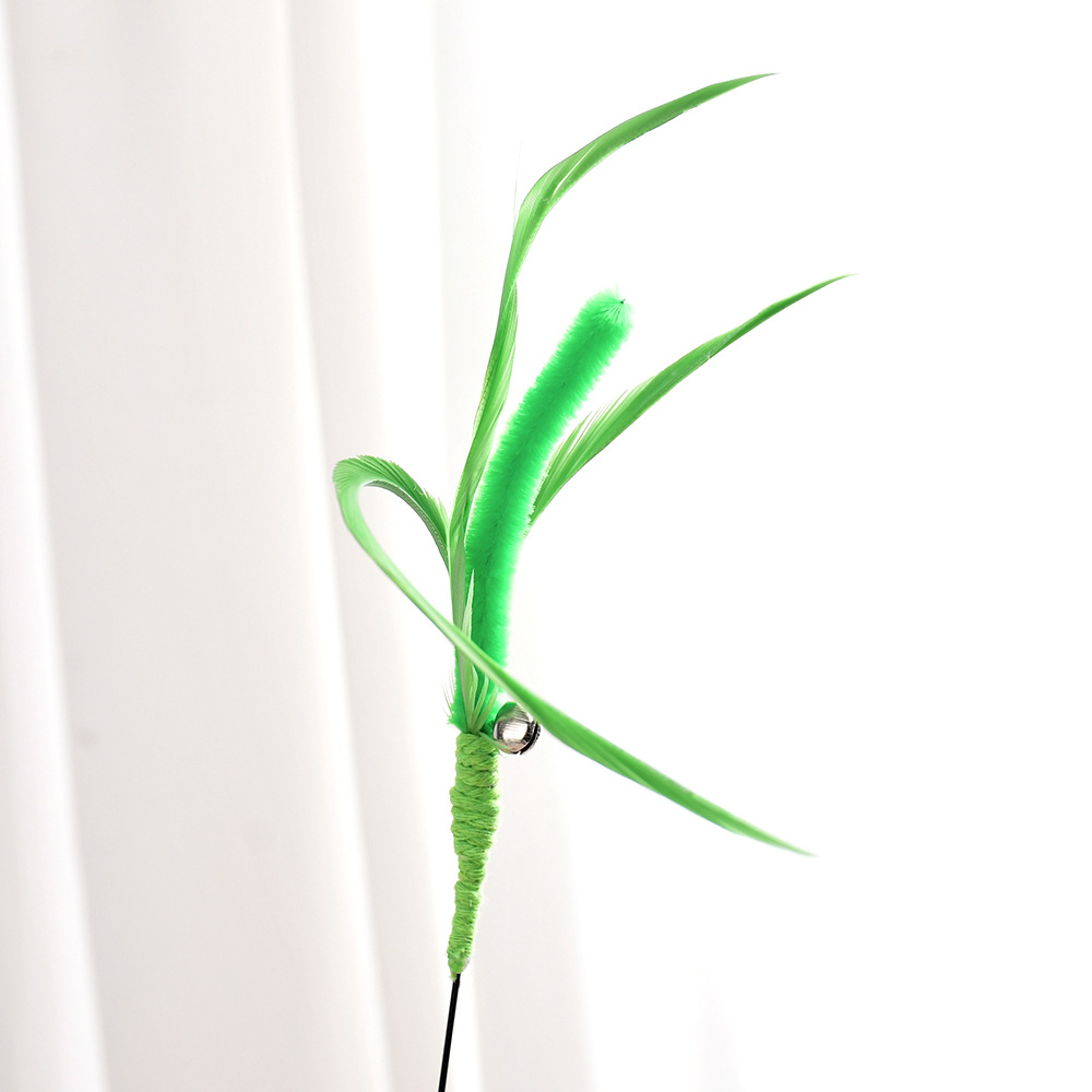 Fabricante de color cola de perro forma de hierba alambre de acero divertido palo de gato con campana gato gato para aliviar el aburrimiento jugando juguete interactivo para gato