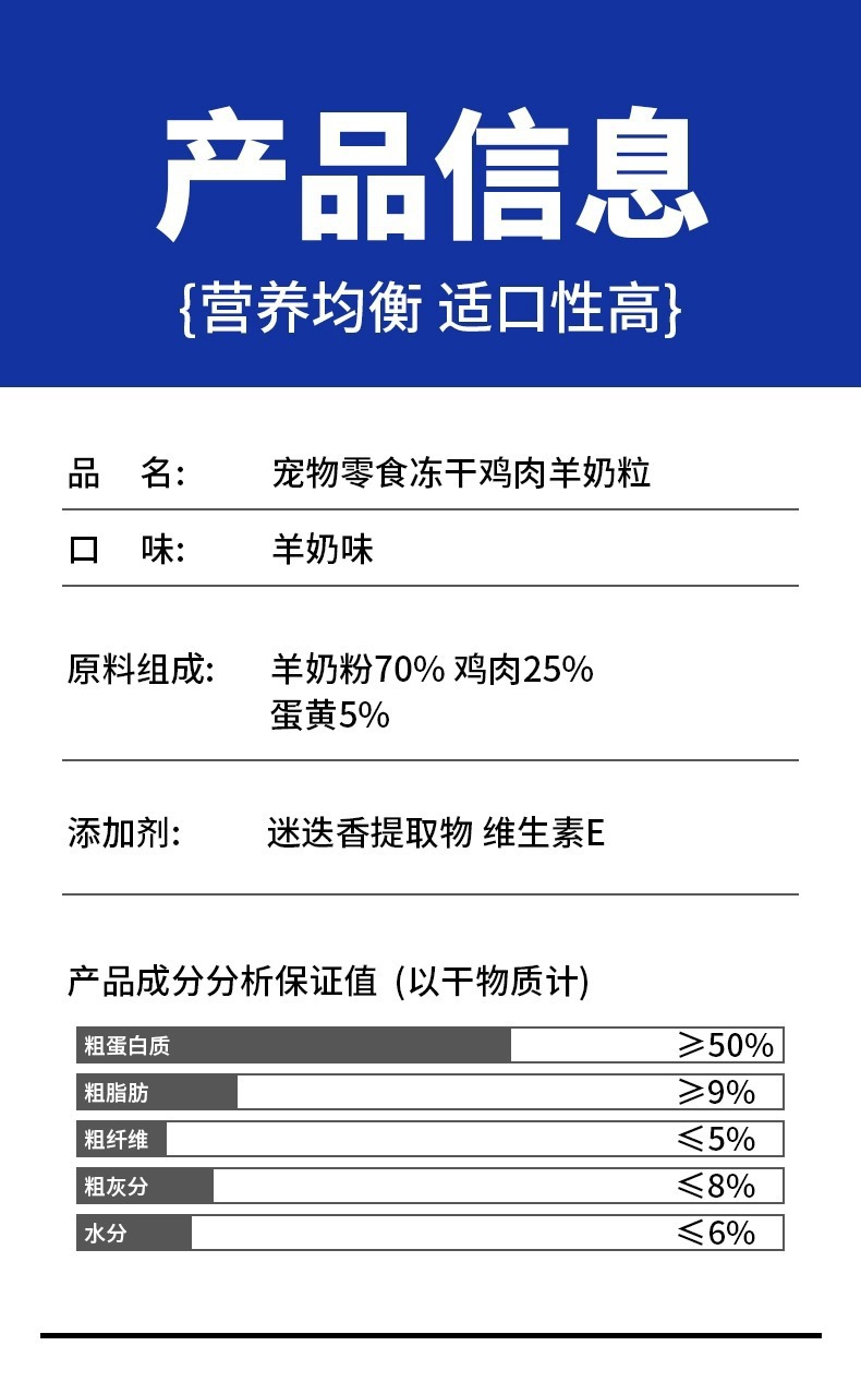 | Sabor | Leche de pollo y cabra 50g,Pollo y leche de cabra 50g * 2 bolsas,Leche entera de cabra 500g,Pollo de leche de cabra 500g * 2 barriles,Barra de leche de cabra liofilizada [60g] enlatada,Barra de leche de cabra liofilizada [40 g/bolsa] |