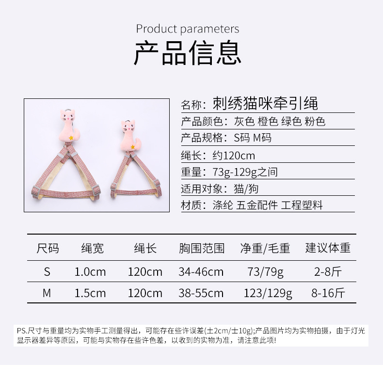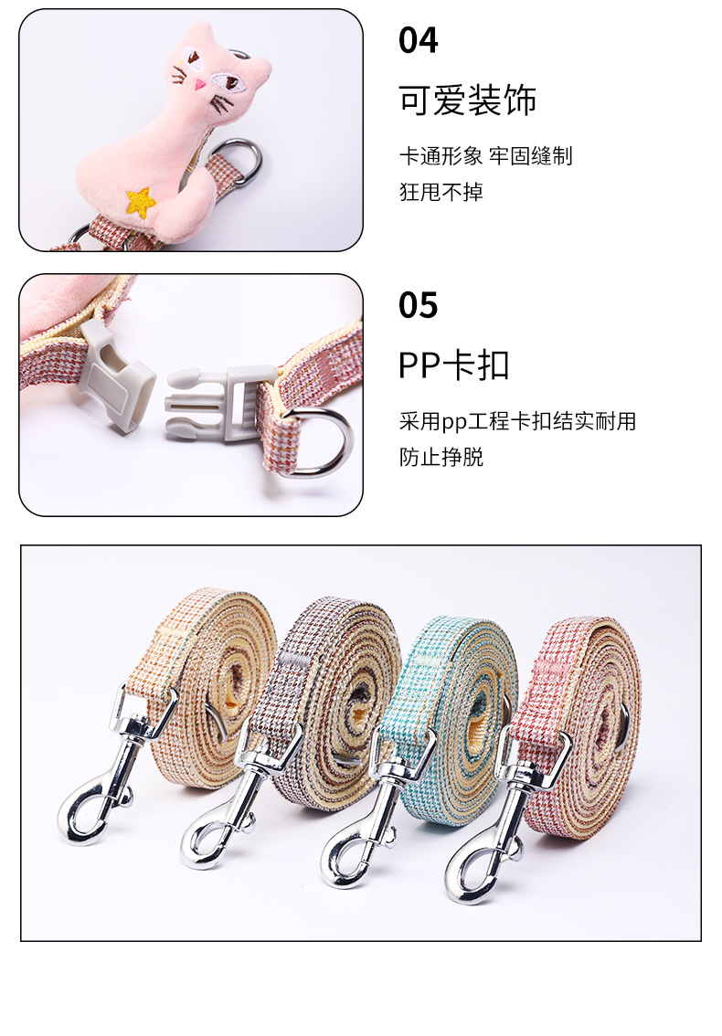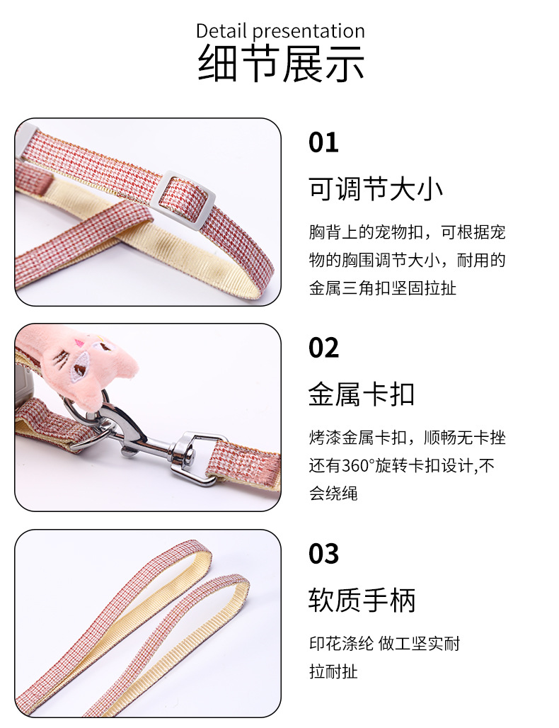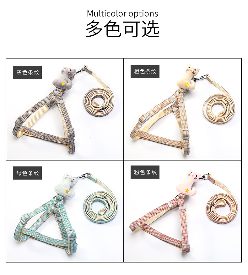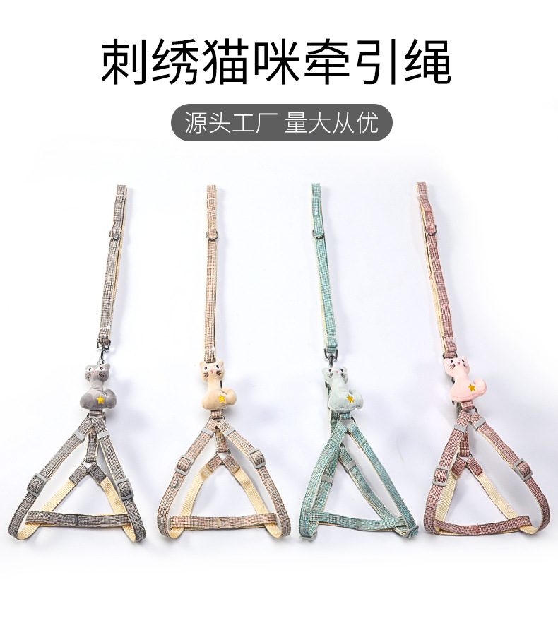 Perro cuerda de dibujos animados mascota cuerda de tracción pata de gallo gatito bordado gato pecho Correa perro cadena perro caminar cuerda en stock