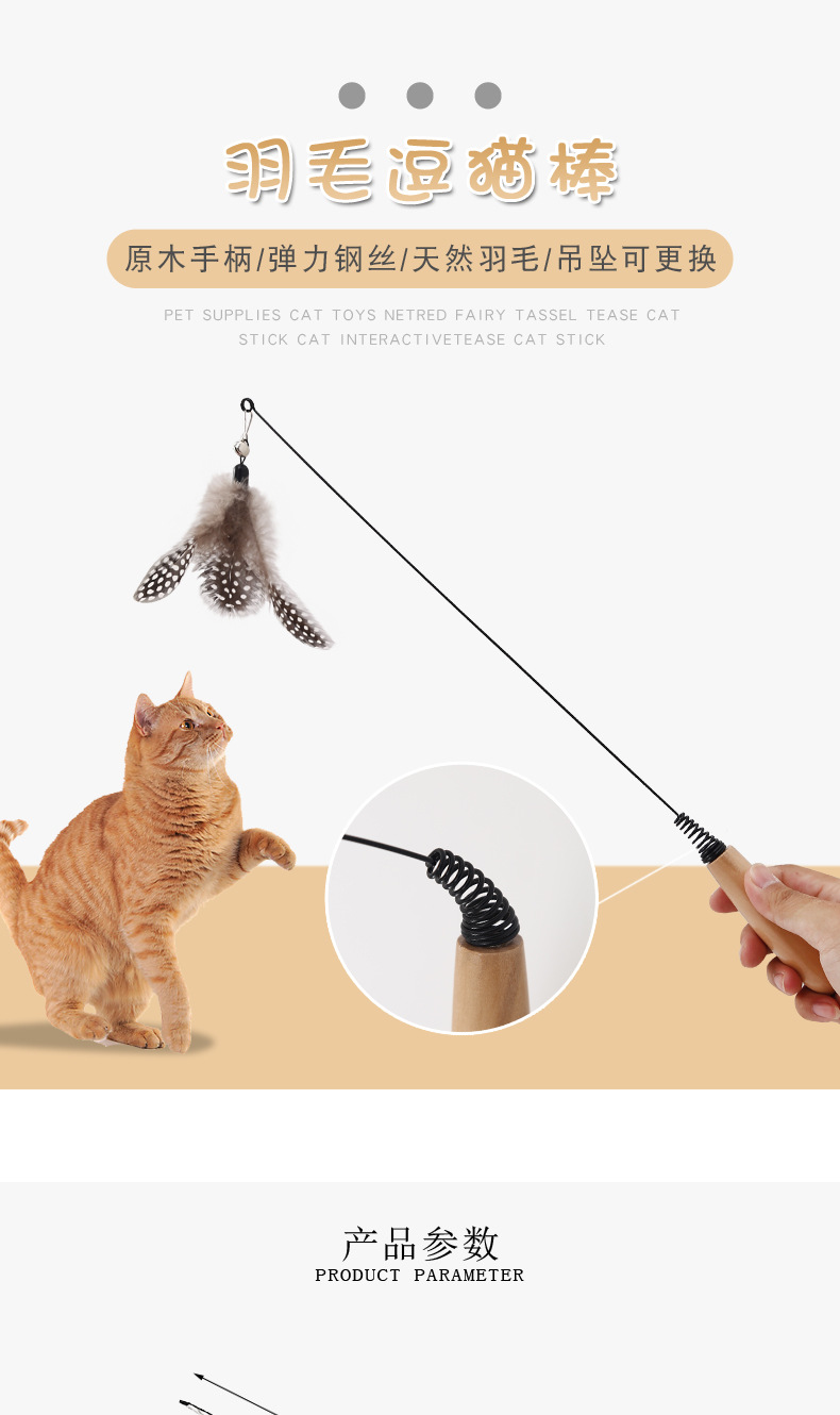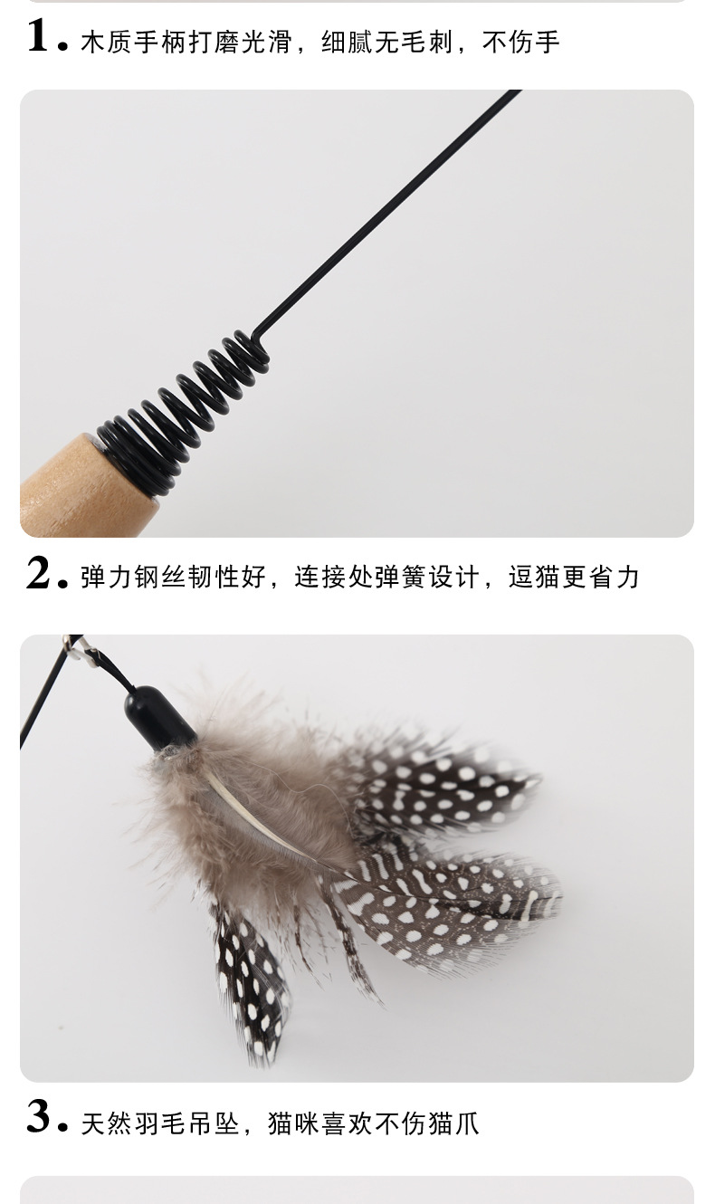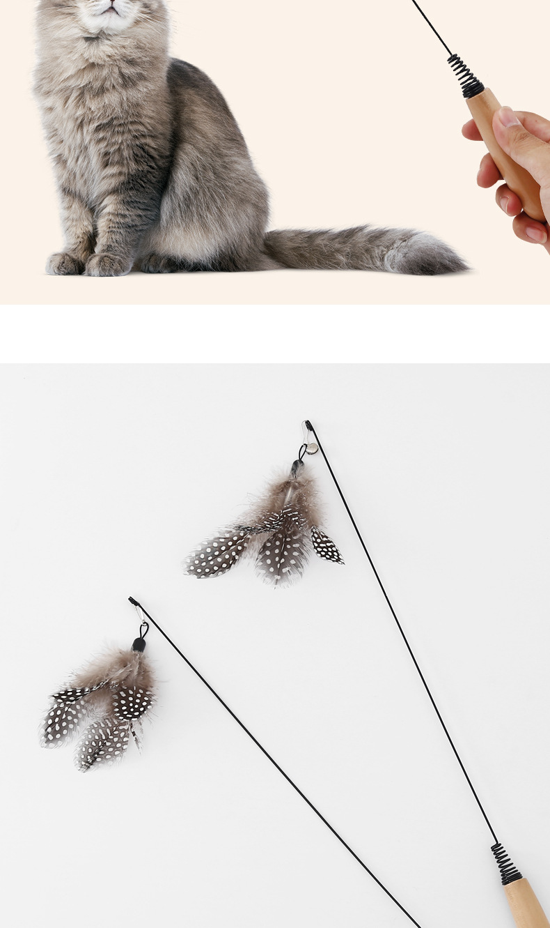 Suministros para mascotas Amazon nuevo mango de madera primavera pluma divertido gato palo campana pluma divertido gato juguete al por mayor