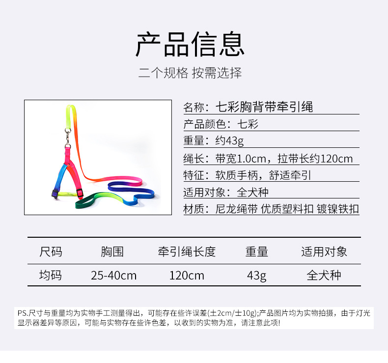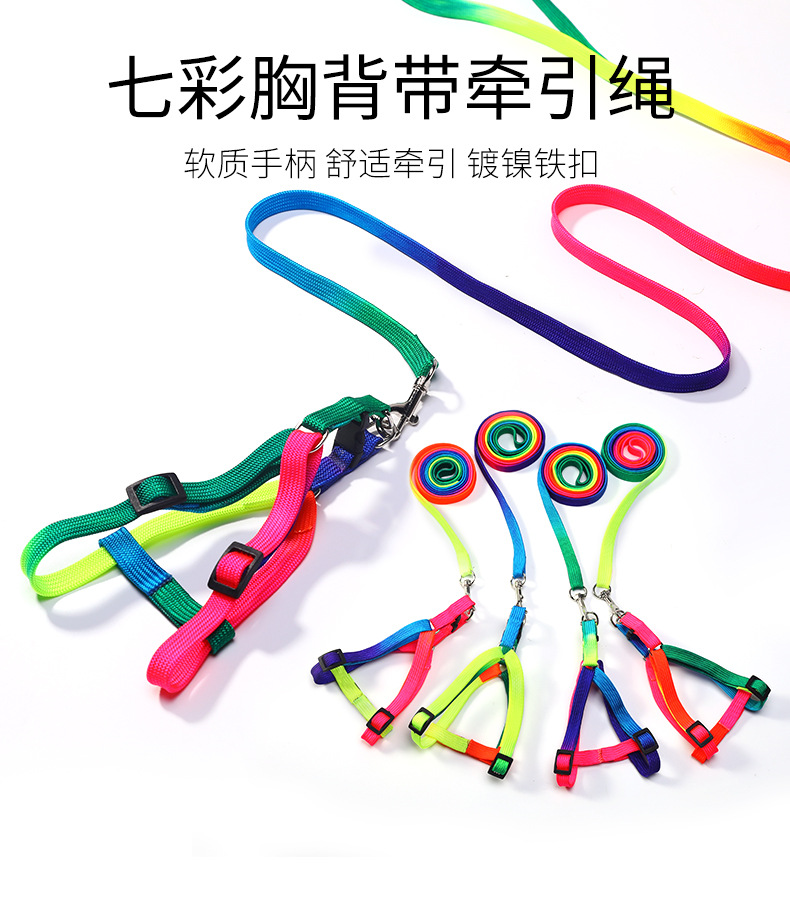 Arco Iris correa de pecho para mascotas traje de color a juego estilo chaleco anti-rotura correa de pecho de perro cuerda de tracción correa de perro en stock