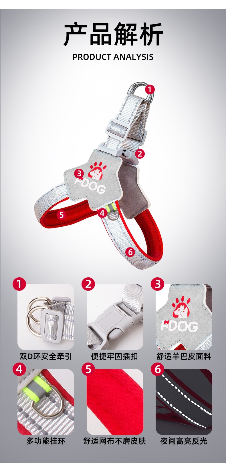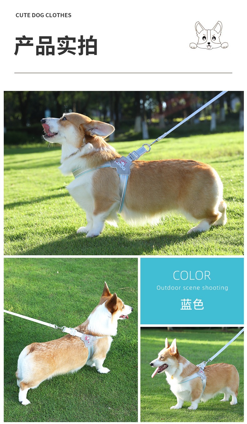 Cuerda de tracción, espalda de pecho de perro ajustable, golpe a prueba de explosiones, chaleco de cuerda de perro reflectante, cuerda de perro mediano y grande, suministros para mascotas