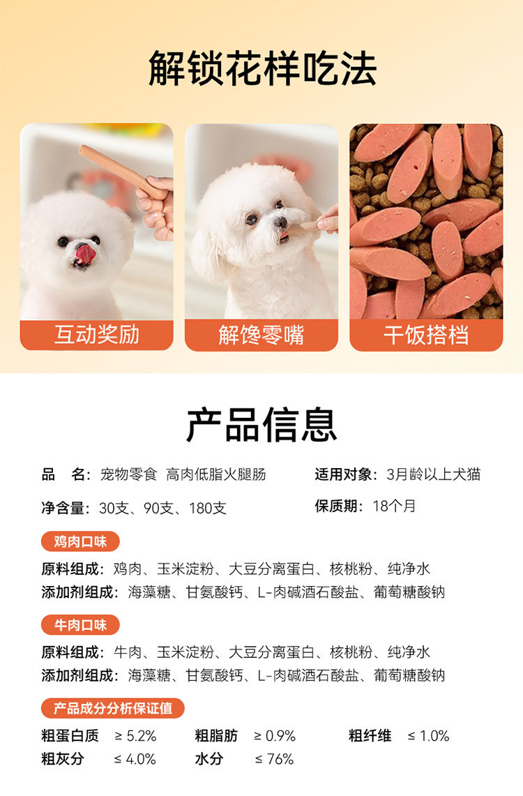 Salchicha de jamón alta en carne y baja en grasa para perros Teddy Bigs gatito cachorro salchicha paquete de regalo para entrenamiento de mascotas