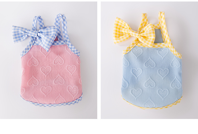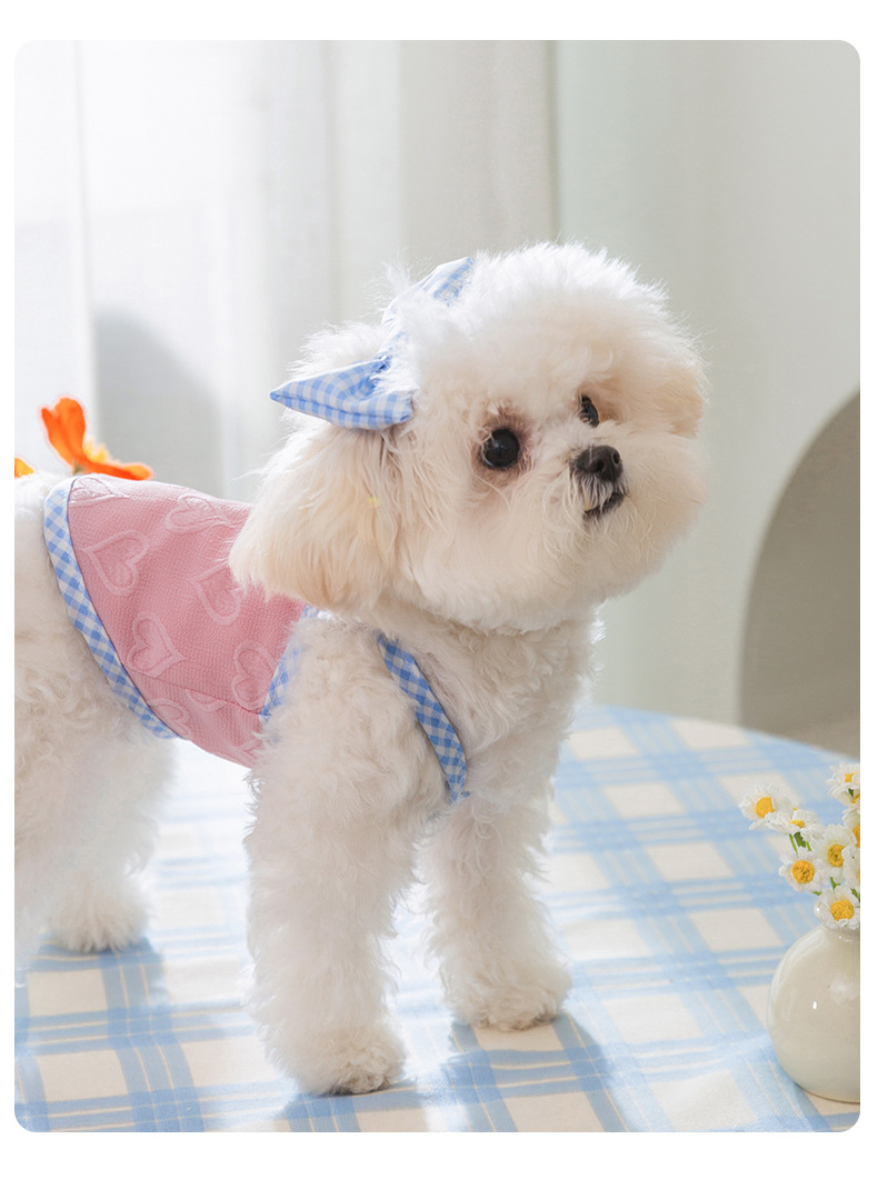 Perro de primavera y verano Versión coreana del pequeño amor fresco textura en relieve lazo cabestrillo gato chaleco ropa para perros