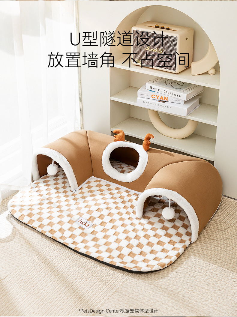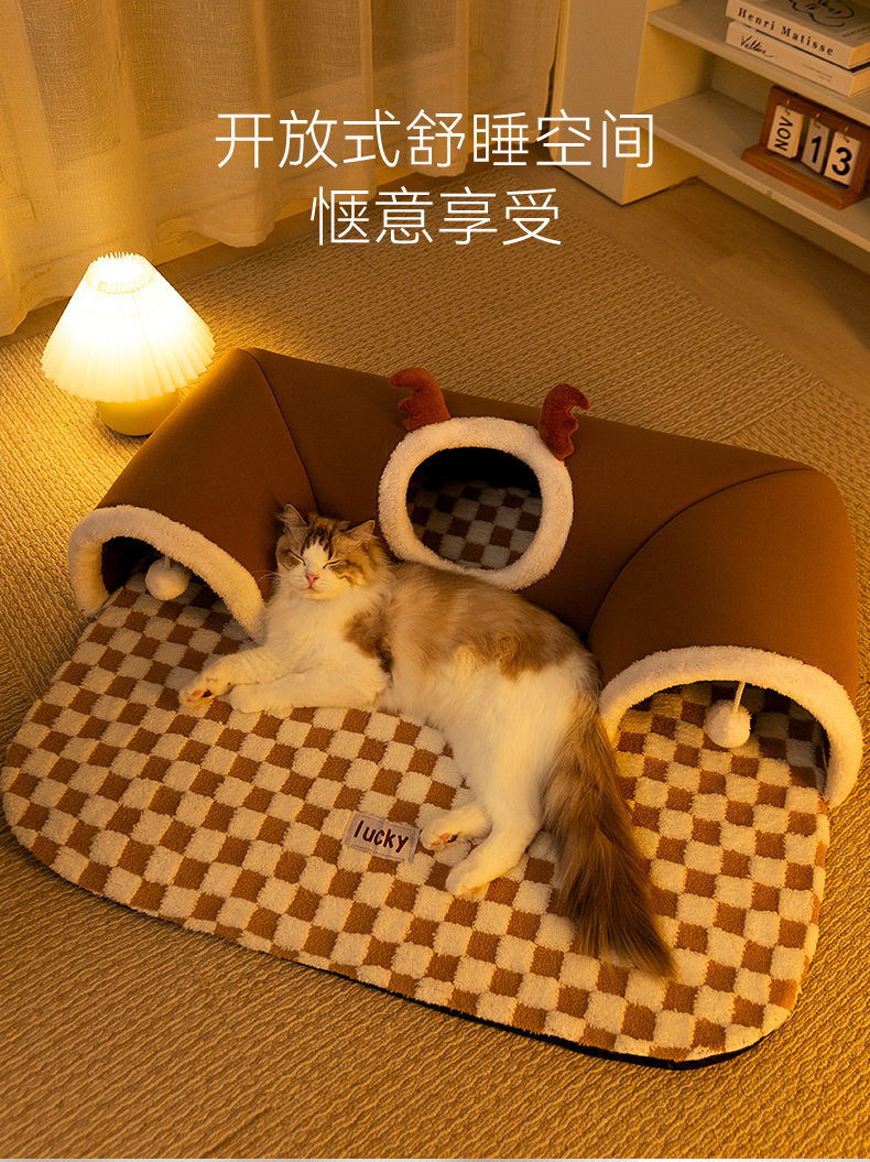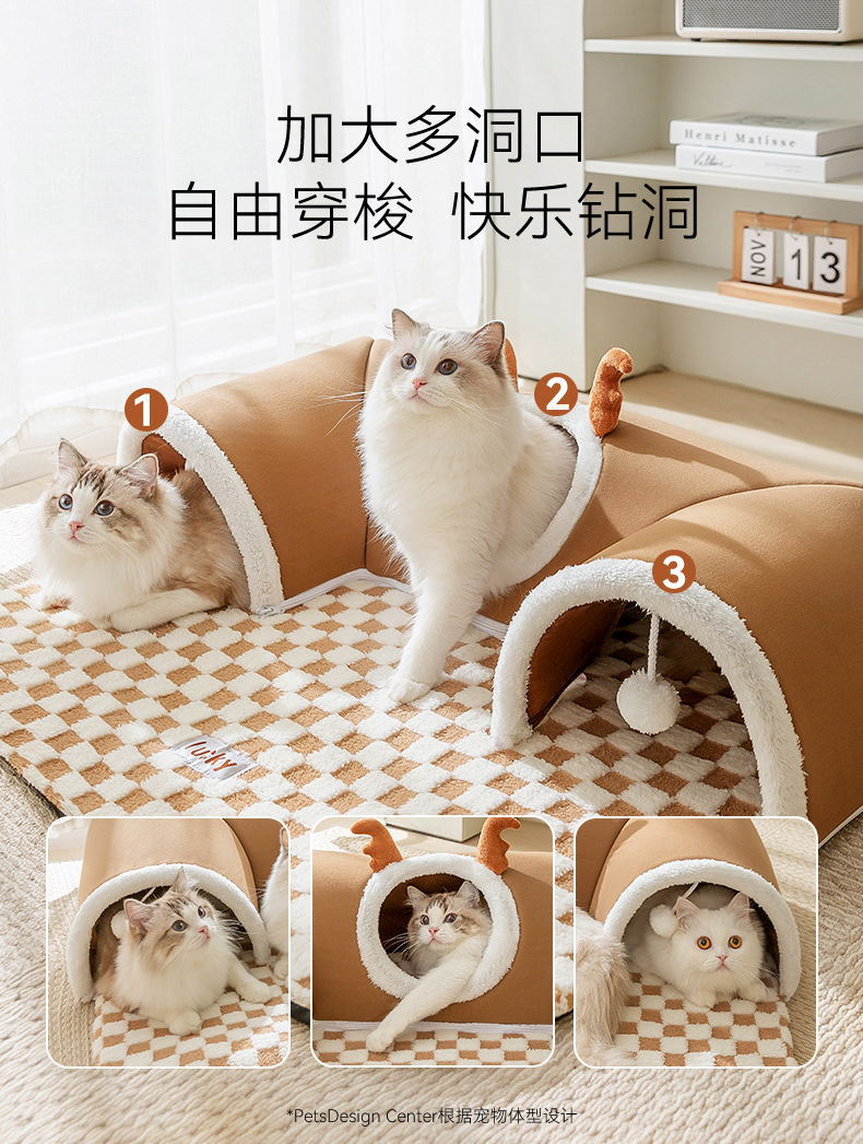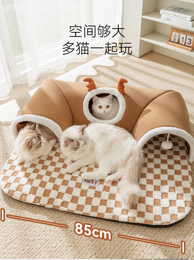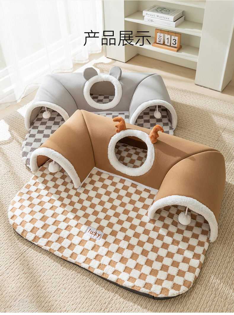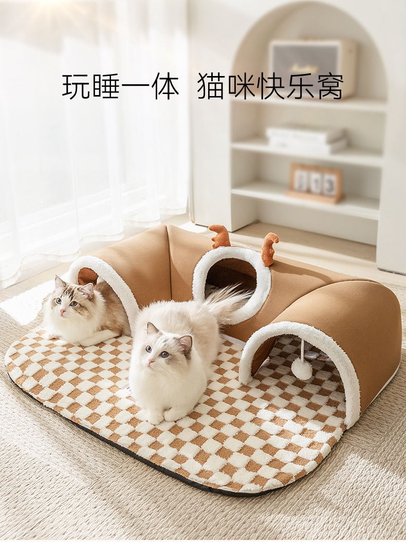 Explosivo transfronterizo 2024 otoño e invierno gato alce escondite gato túnel para jugar y dormir túnel todo en uno nido de gato mascota al por mayor