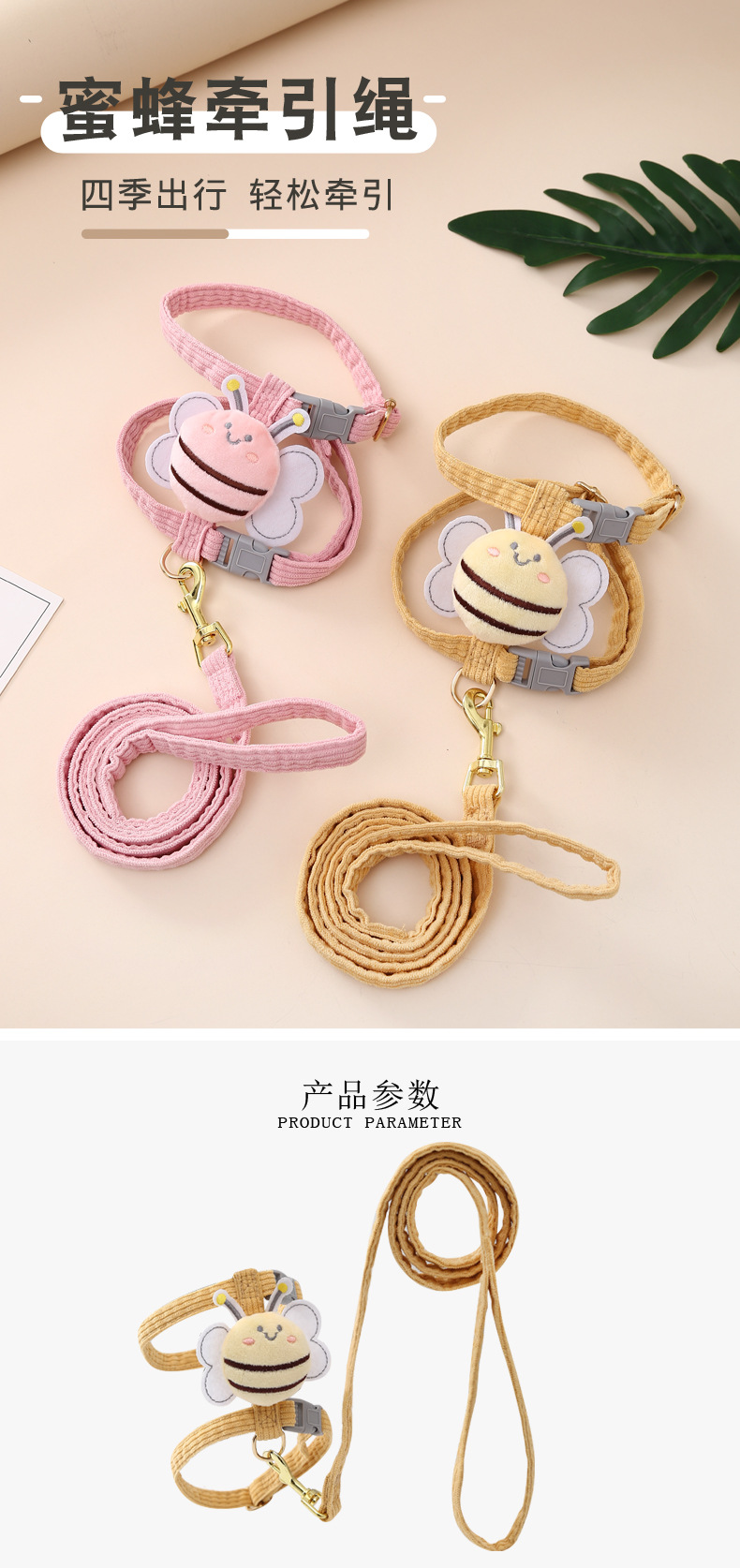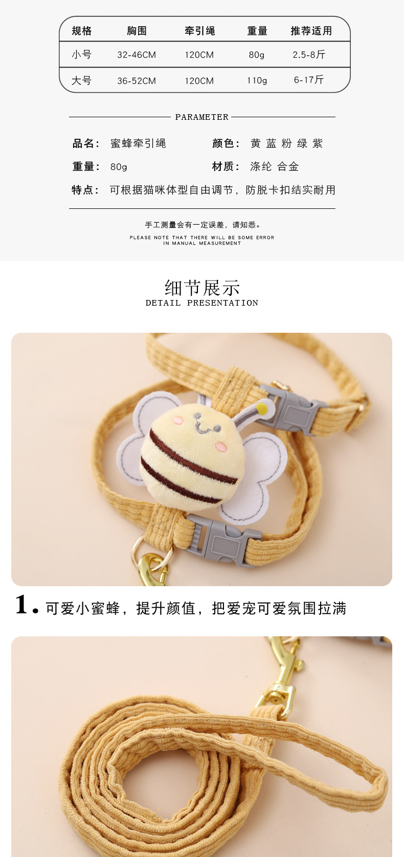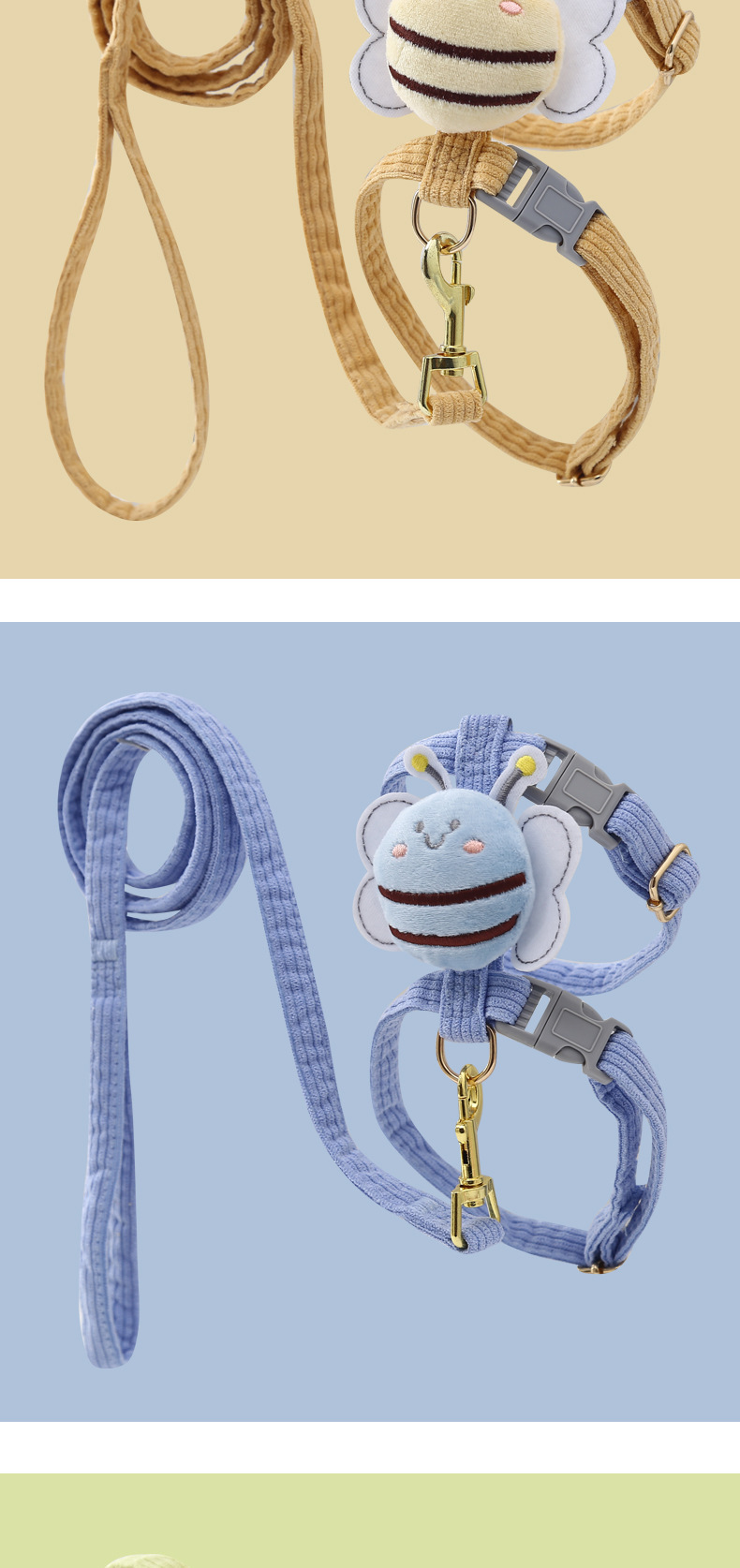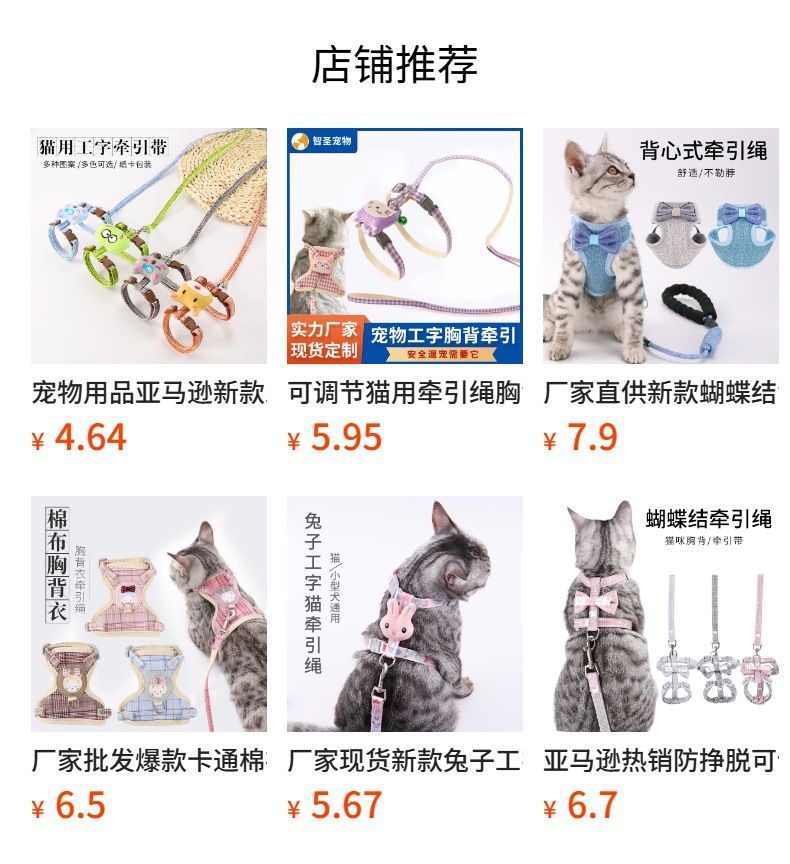Suministros para mascotas Amazon nueva abeja pecho espalda gato tracción cuerda en forma de I anti-rotura ajustable gato caminando cuerda