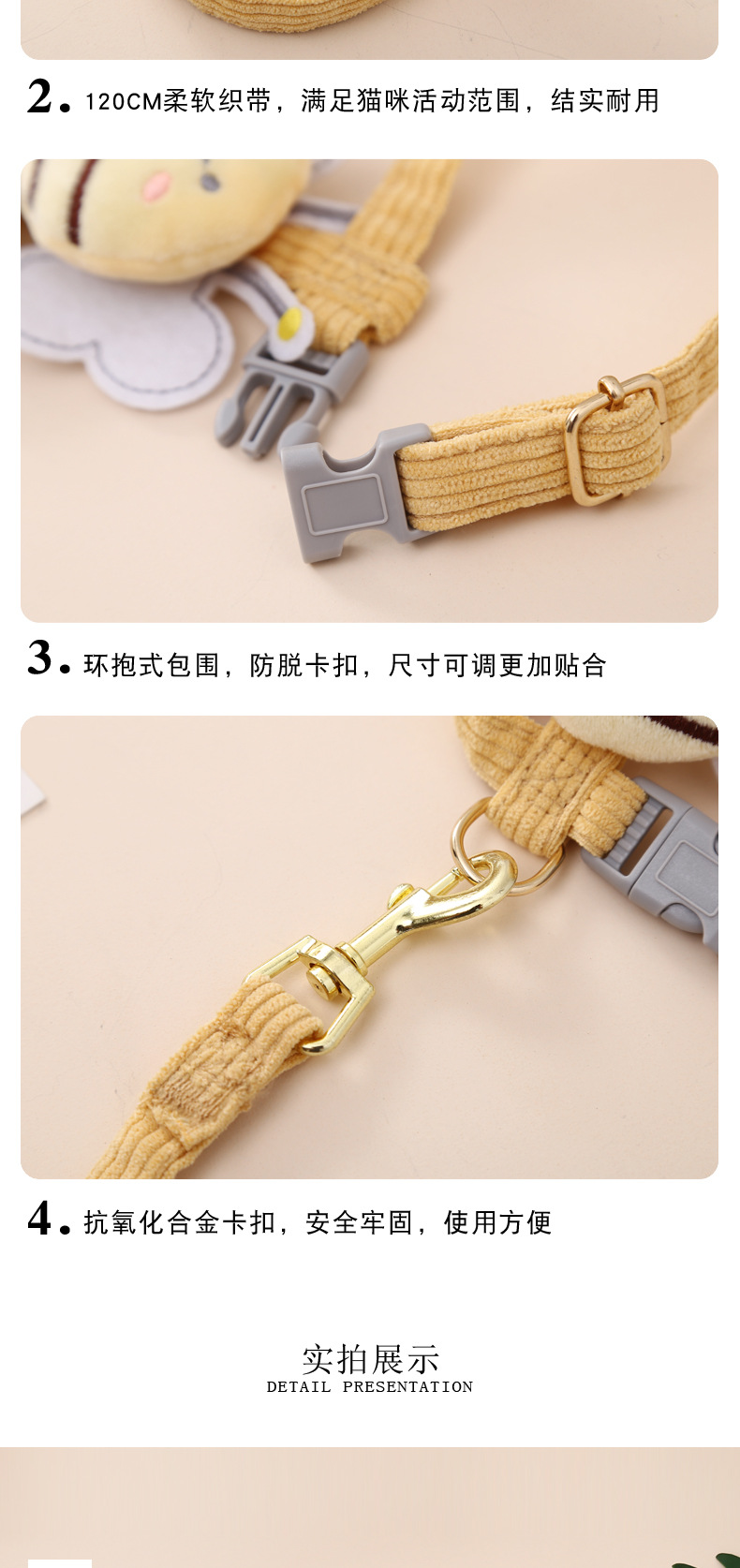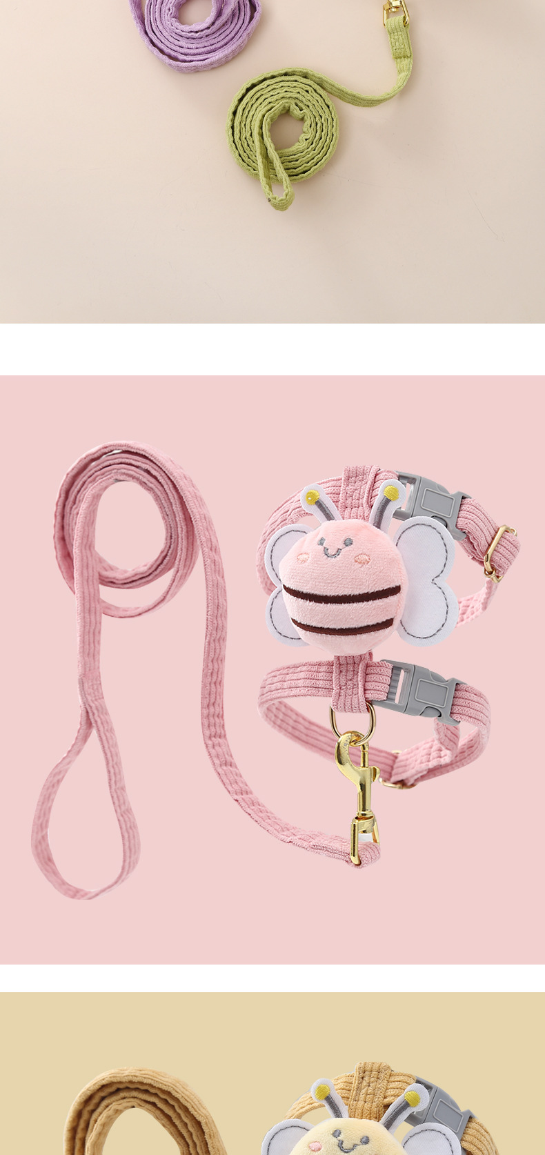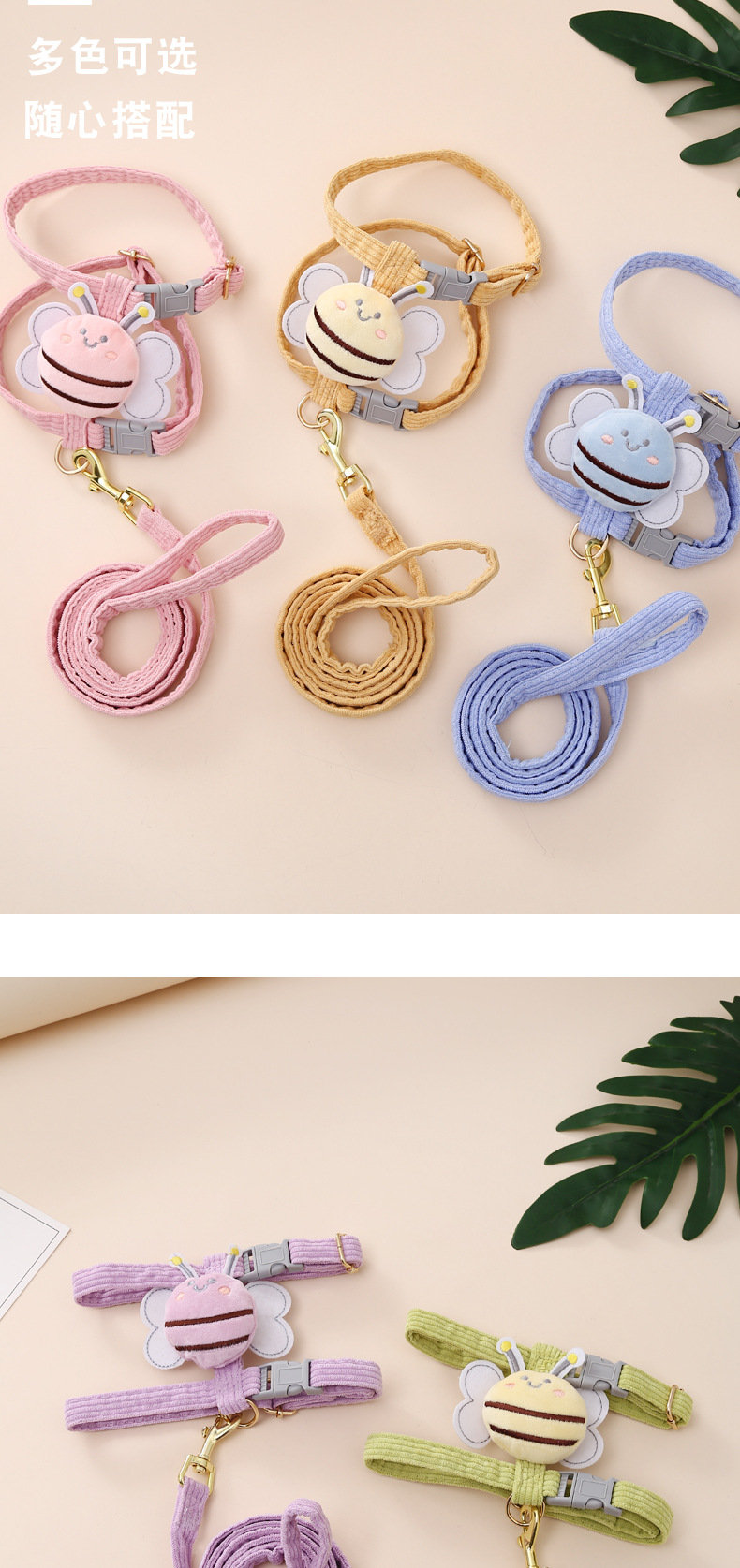 Suministros para mascotas Amazon nueva abeja pecho espalda gato tracción cuerda en forma de I anti-rotura ajustable gato caminando cuerda