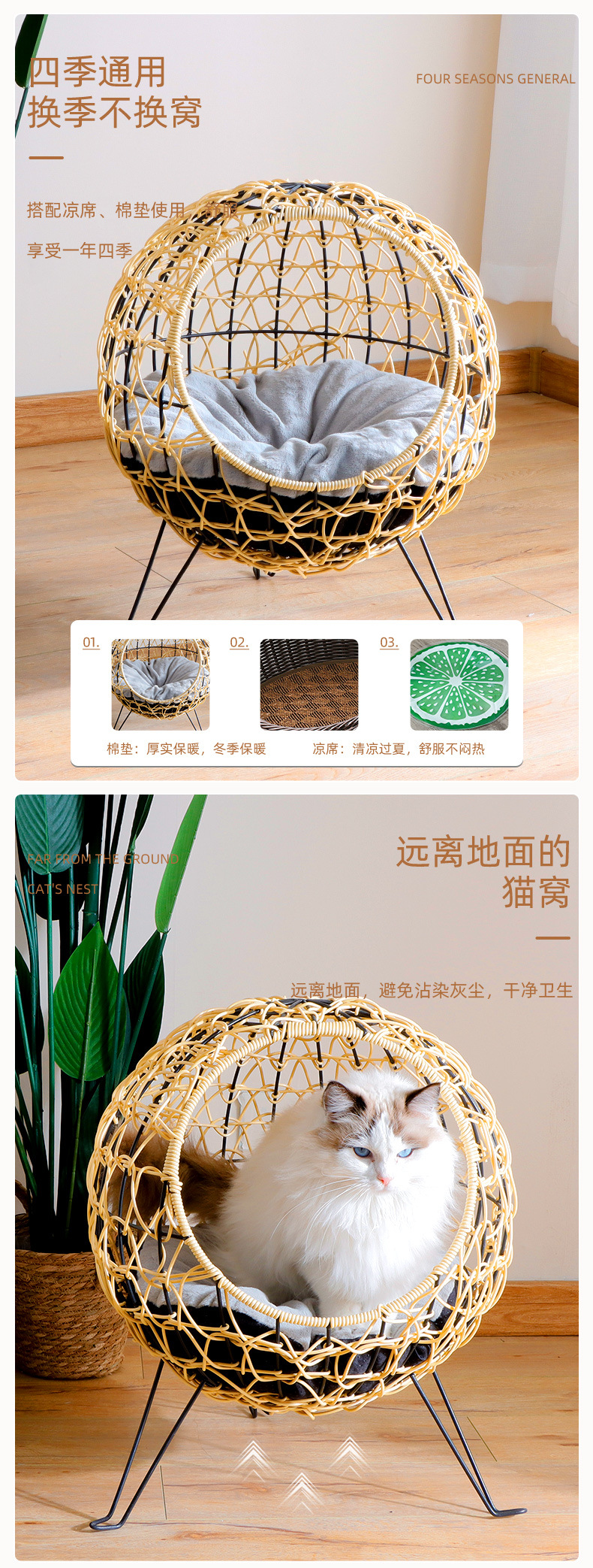 Colada para gatos personalizada transfronteriza Four Seasons Universal con logotipo, nido de gato para mascotas, nido tejido a mano, etiqueta gratuita
