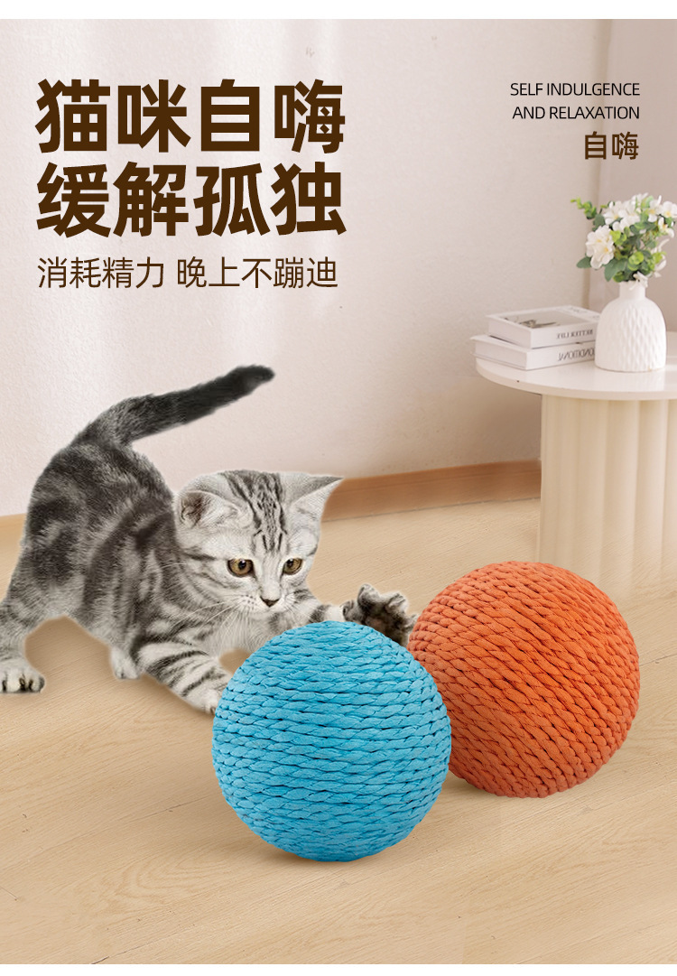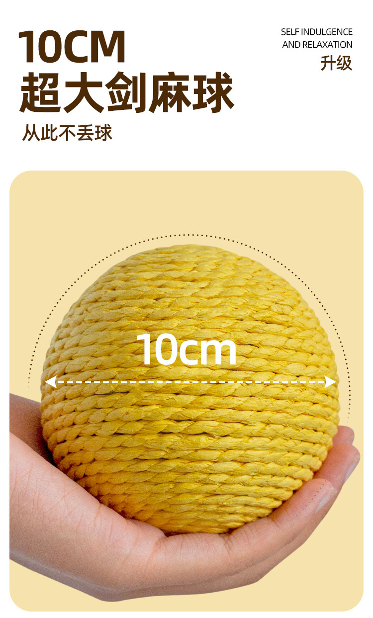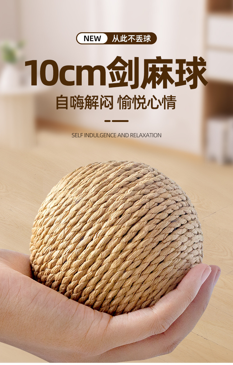 Juguete para gatos 10cm cuerda de papel de tamaño ampliado garra afilada bola de cáñamo gato auto-hola juguete interactivo para aliviar el aburrimiento suministros para mascotas