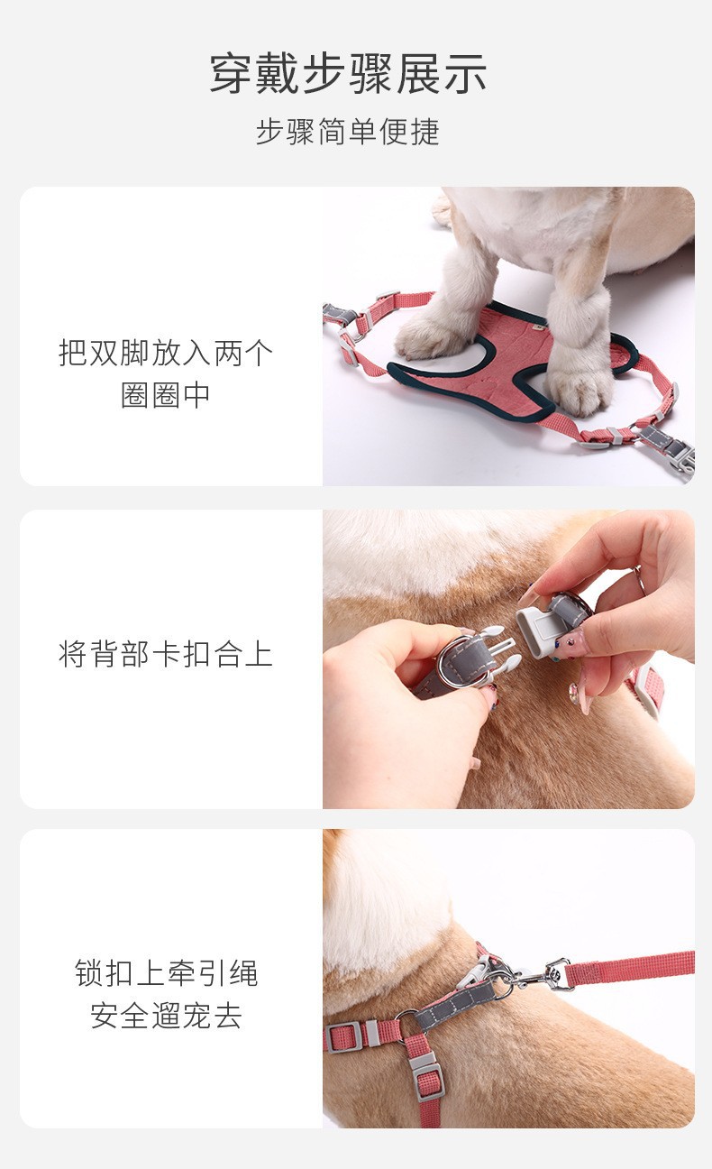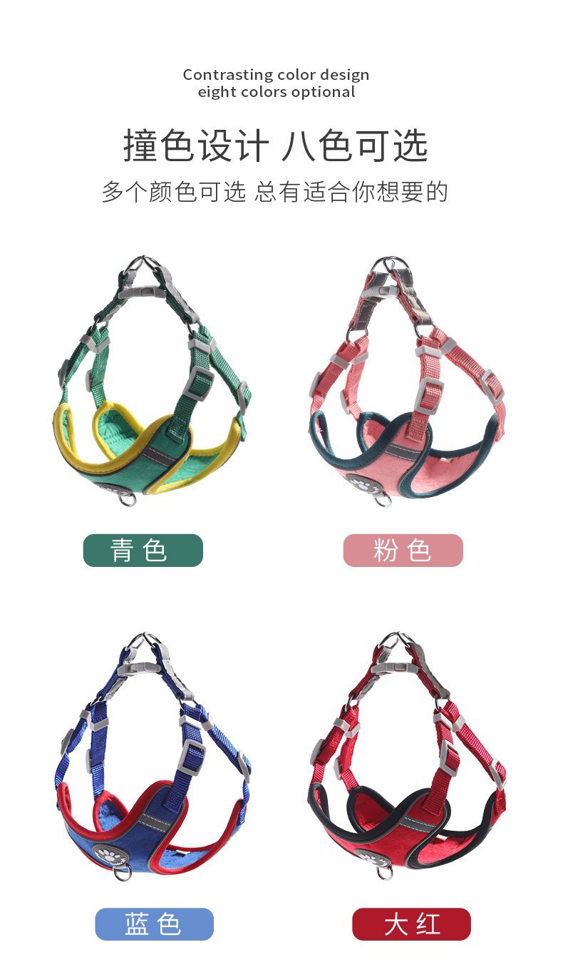 Correa de pecho de tracción para mascotas deerskin terciopelo reflectante a prueba de explosiones correa de pecho perro fuera de tracción ventas directas de fábrica en stock