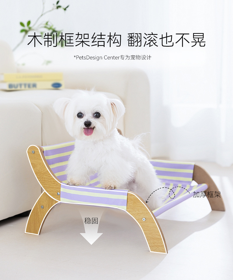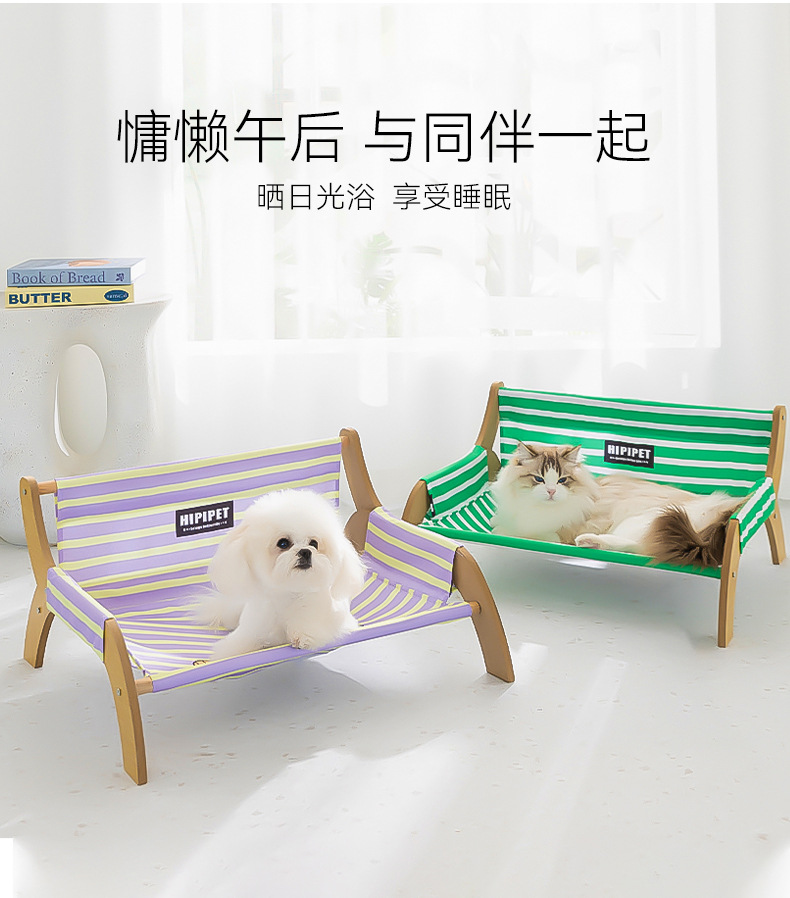 Primavera y verano perro persiguiendo pelota gato sillón a rayas sofá de madera maciza perrera cuatro estaciones nido para gatos fuera del suelo nido para mascotas a prueba de humedad