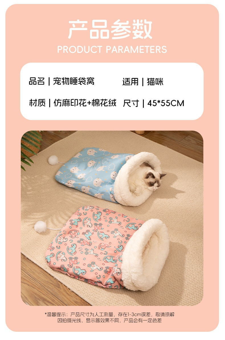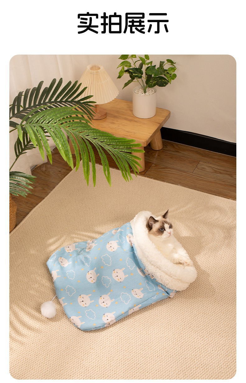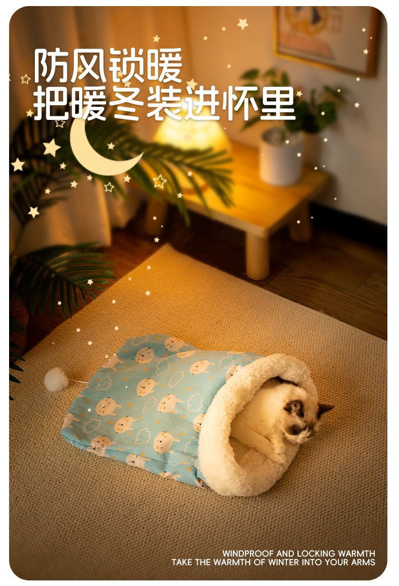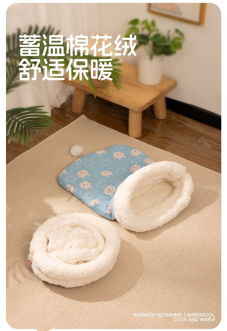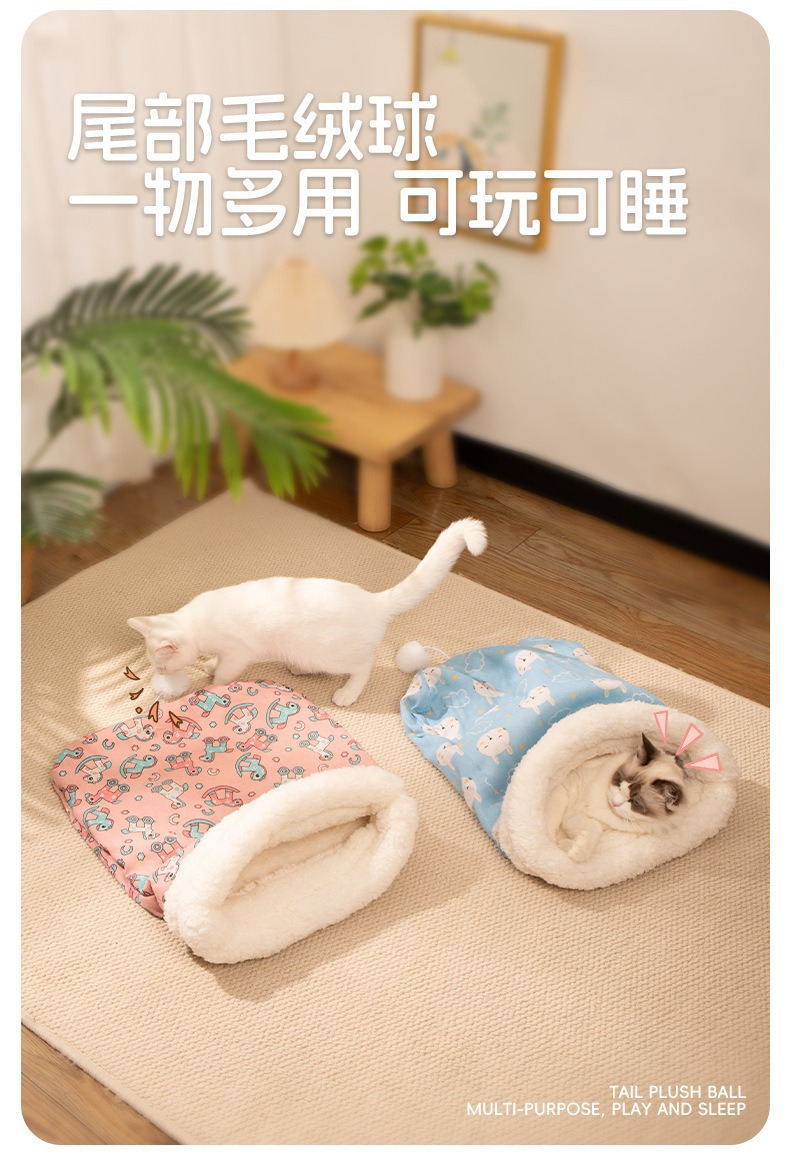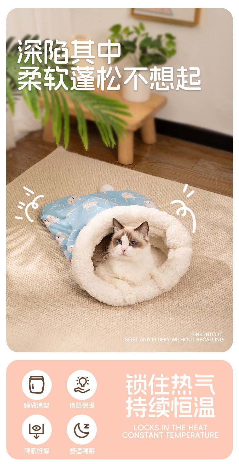 Nido para gatos, cálido en invierno, saco de dormir para gatos semicerrado, sueño profundo, cama para gatos, cojín para gatos, cuatro estaciones