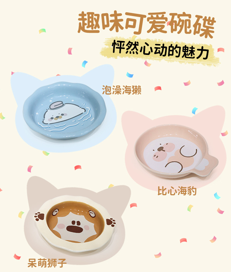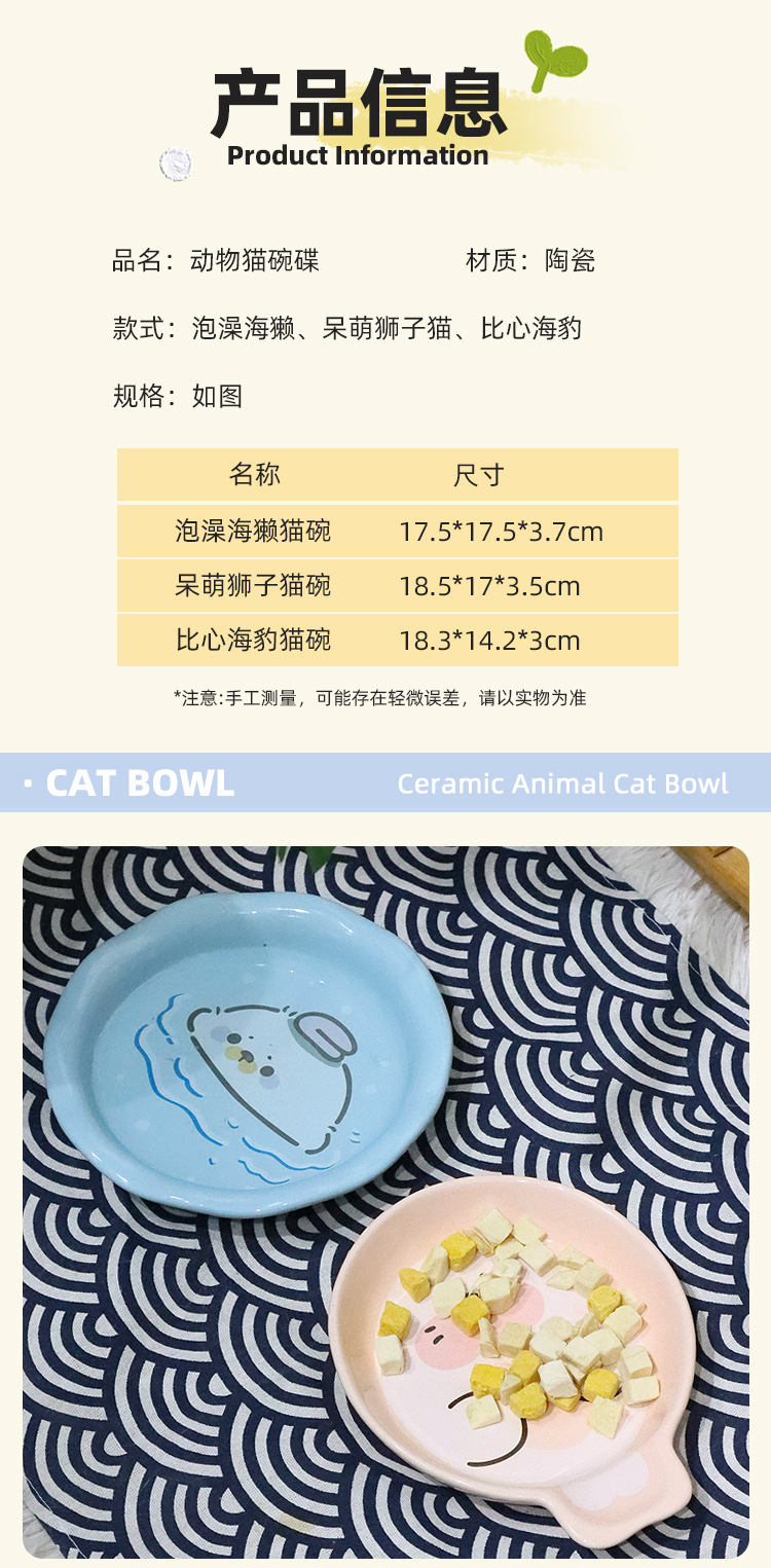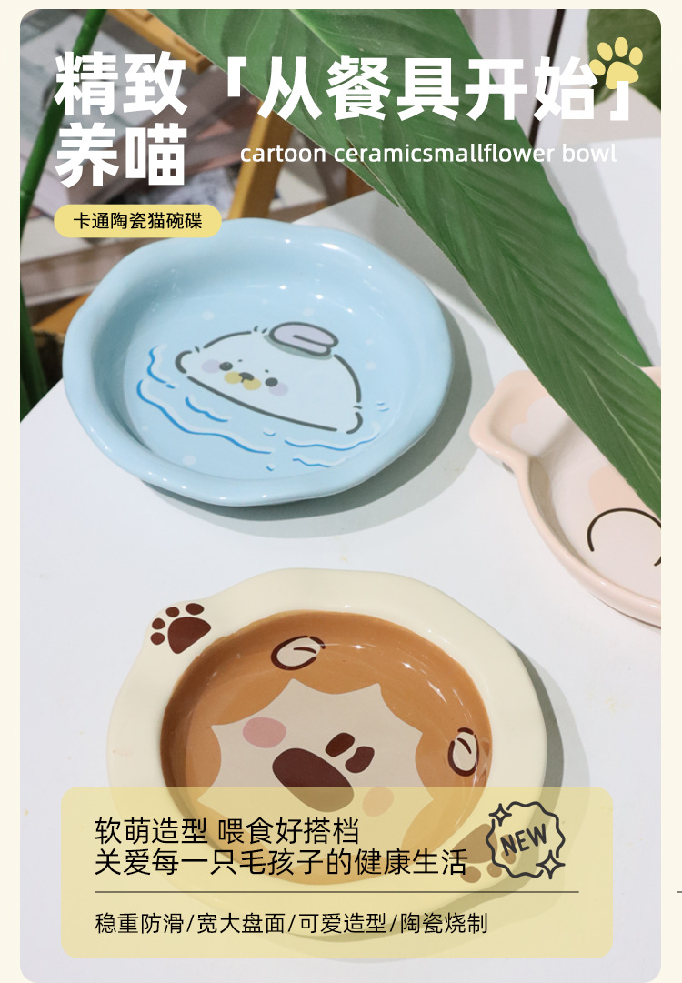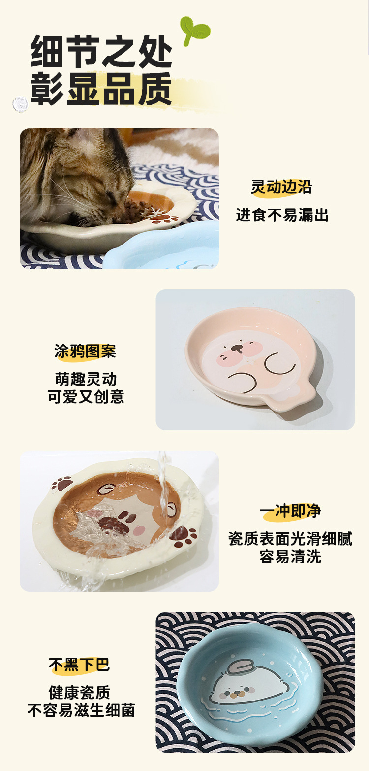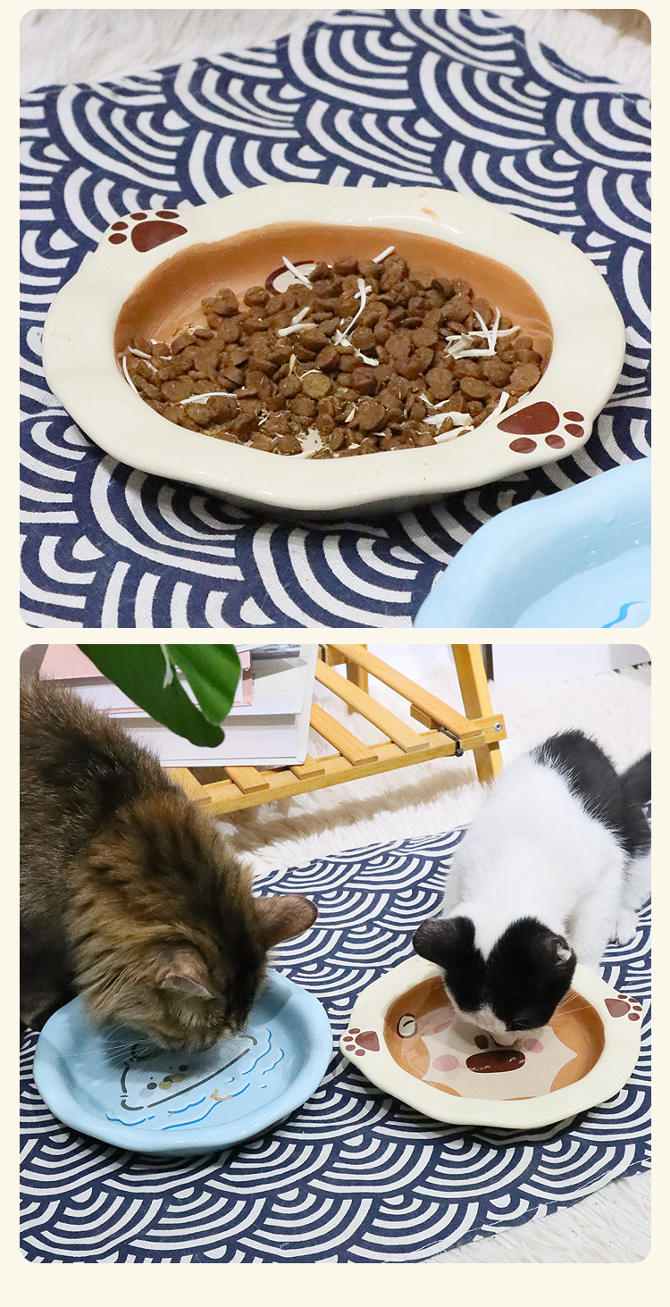 Lavabo de cerámica para gatos, cuenco para gatos, serie animal, cuenco para gatos de gran calibre, barbilla anti-negra, utensilios para comer para mascotas, agua potable para gatos, antideslizante