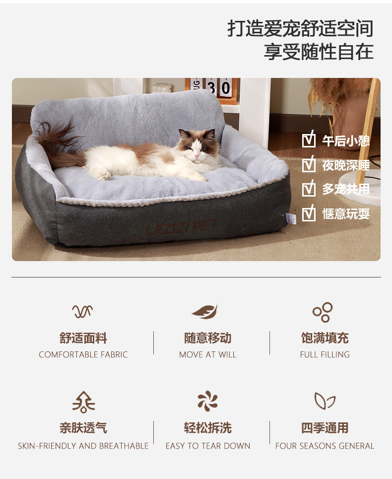 La camada para gatos es cálida en invierno, desmontable y lavable, tapete para gatos, tapete para perros grande, caseta para perros semicerrada, engrosada, productos para gatos