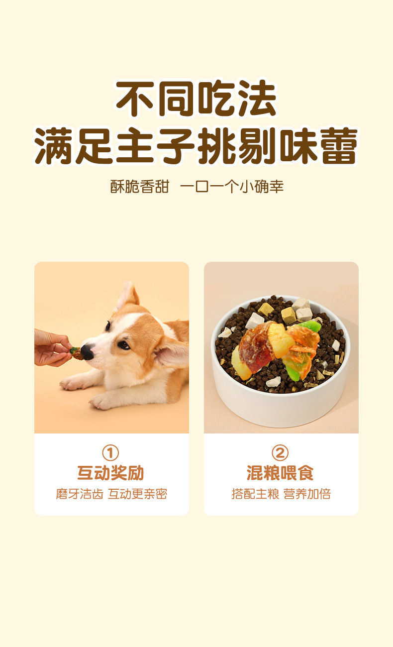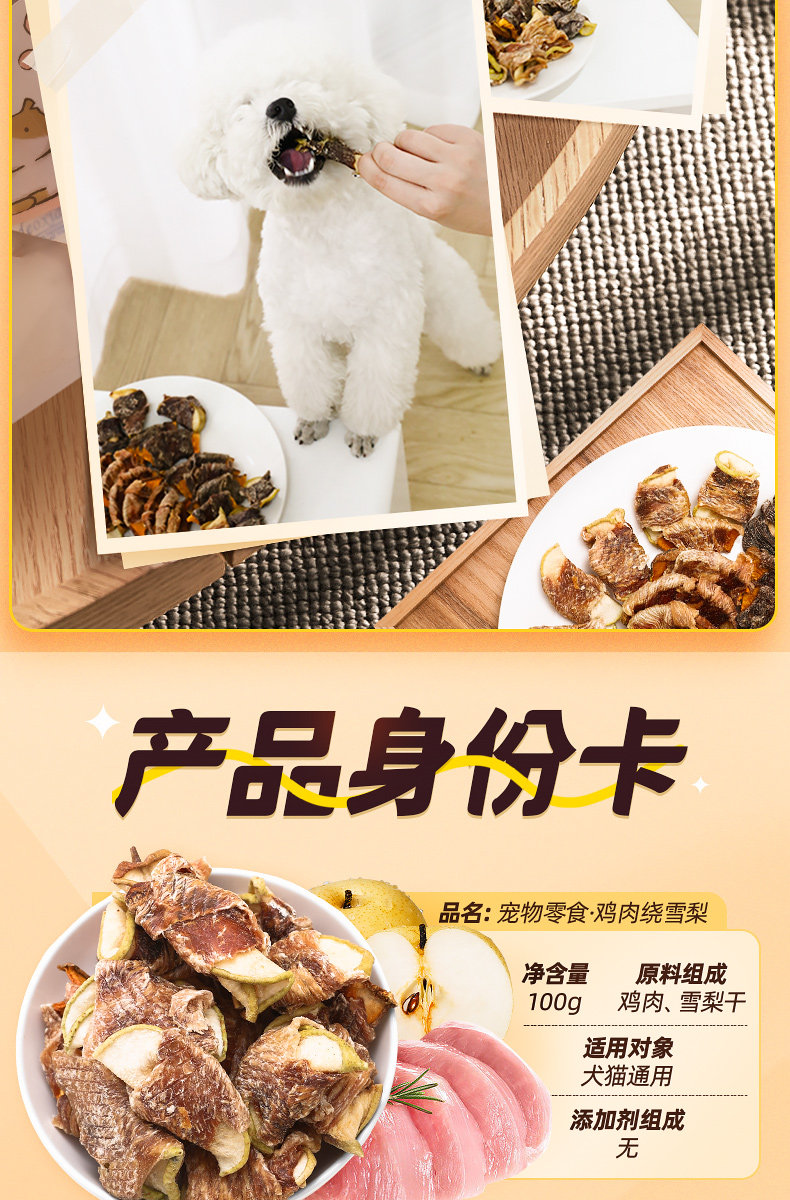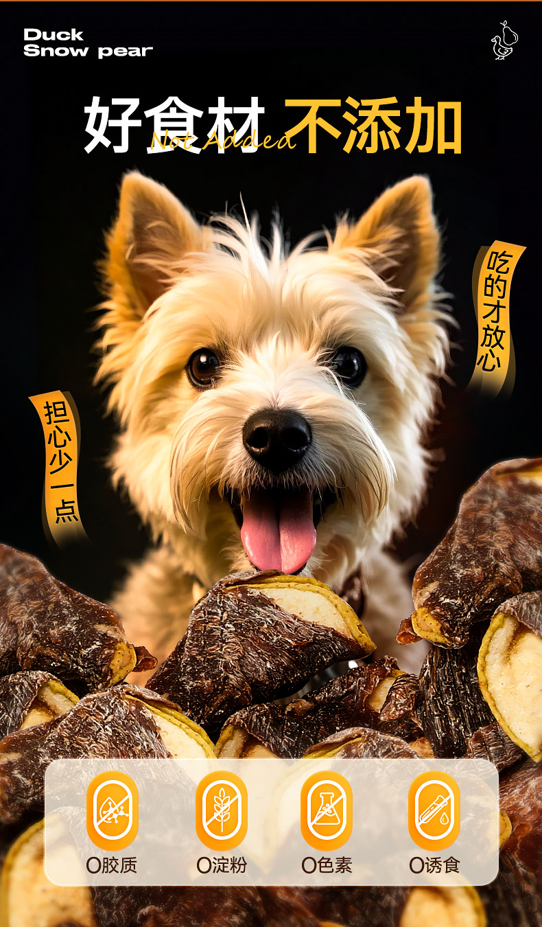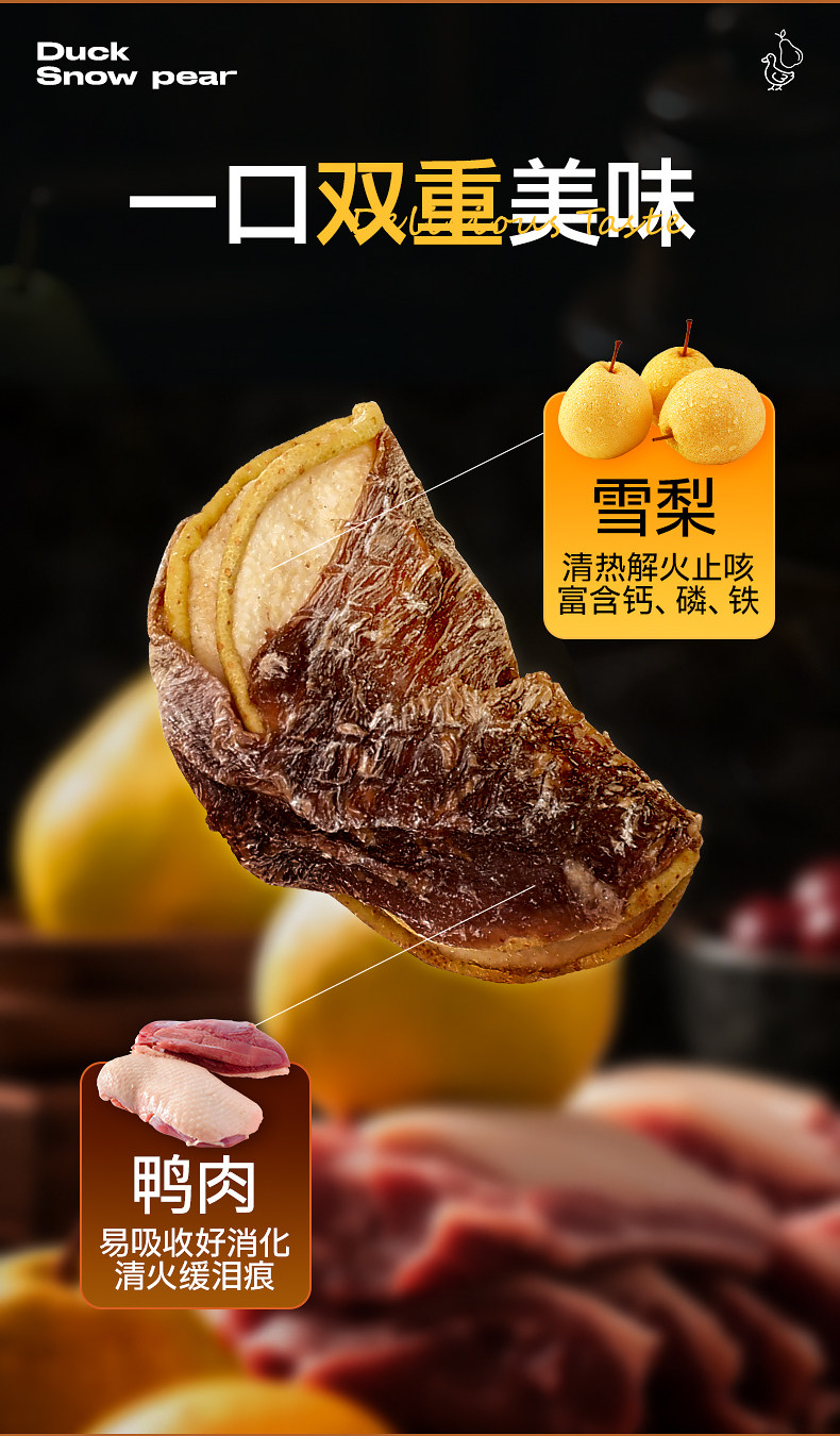 | Especificaciones | 100g de carne de pato envuelta en Sydney (reducir las lágrimas, eliminar el calor y eliminar el fuego),Pato envuelto en manzana 100g (suplemento vitamínico),Pollo alrededor de coco 80g (nutritivo),Pollo alrededor de la col 50g (comida equilibrada) |