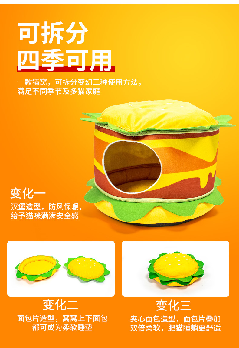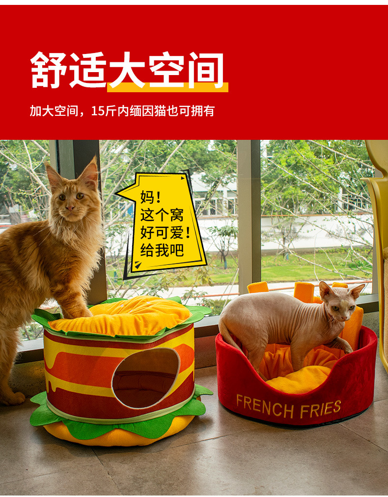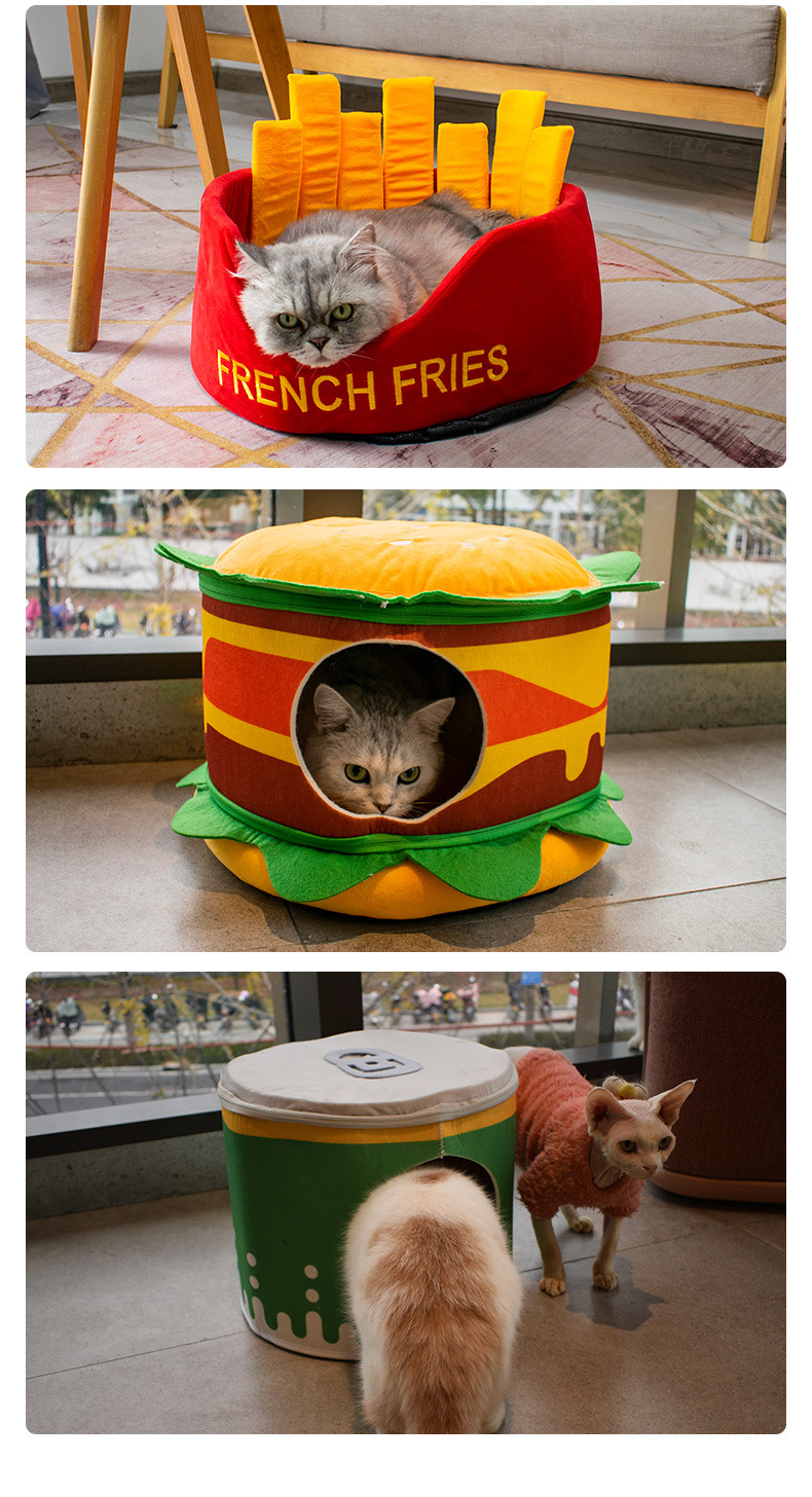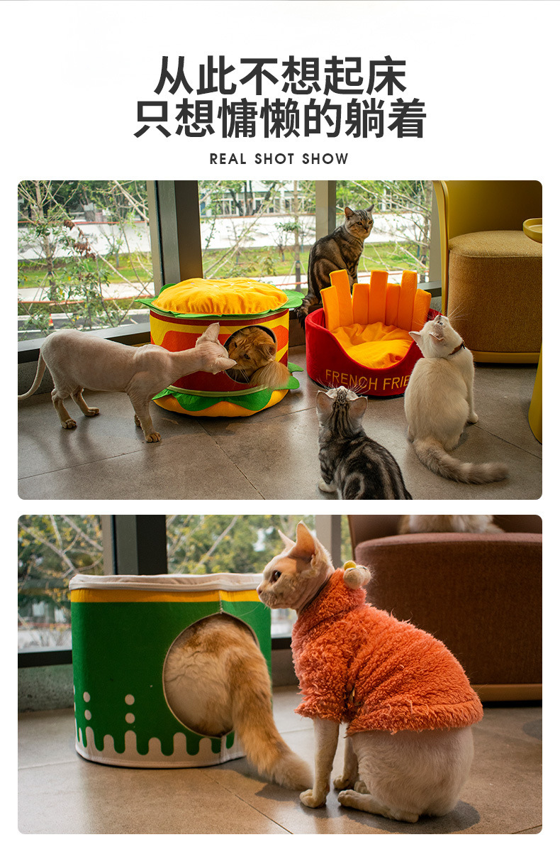 Papas fritas cálidas de invierno, nido para gatos de gran capacidad, nido para dormir para gatos, nido para mascotas abierto desmontable, villa para gatos lavable