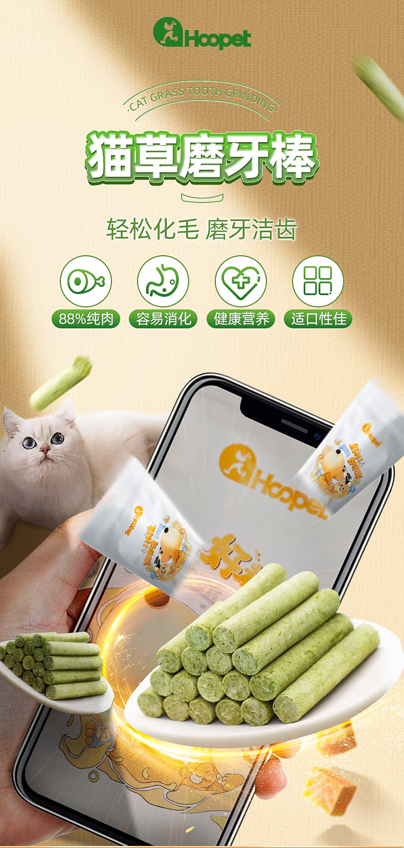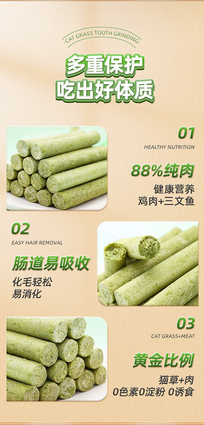 Palos de paja para gatos, dientes molares, bocadillos para gatos liofilizados, gránulos de hierba para gatos, gatitos, chuletas de pelo, dientes de limpieza instantáneos, nutrición de pollo