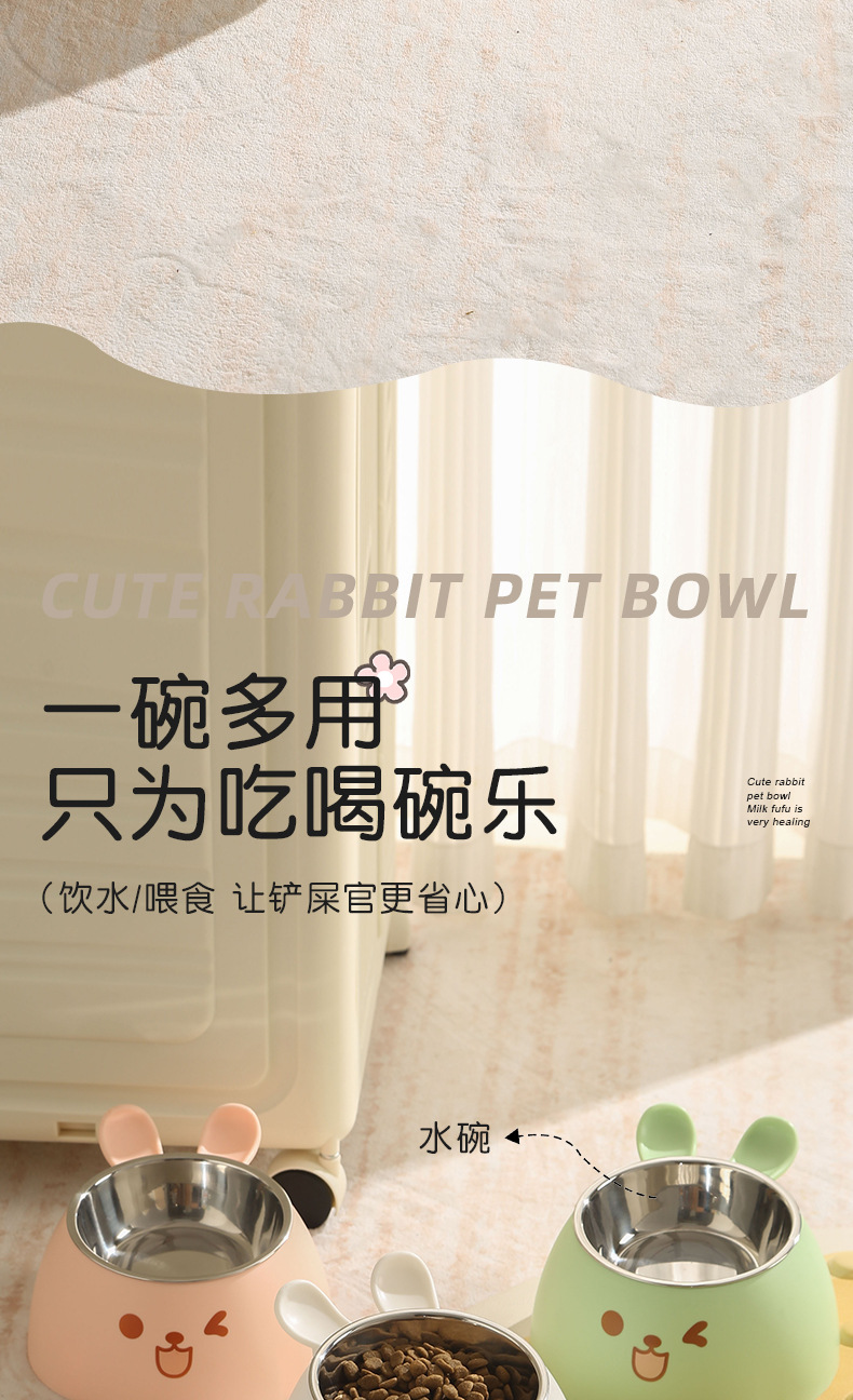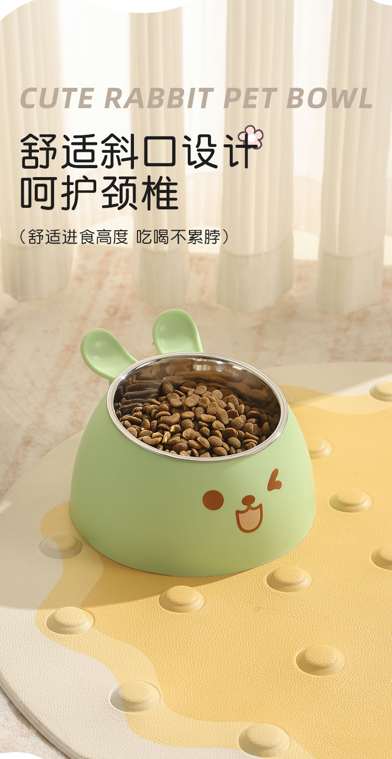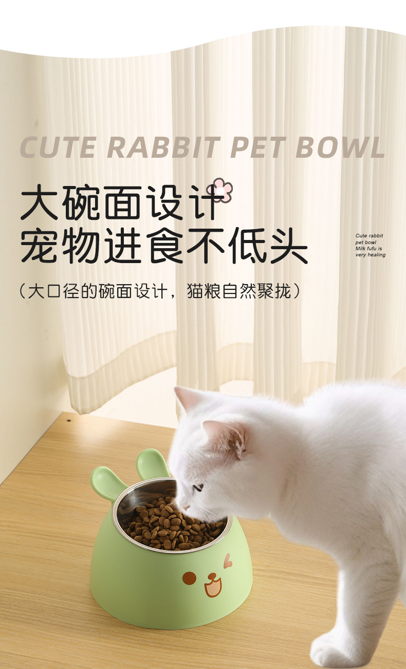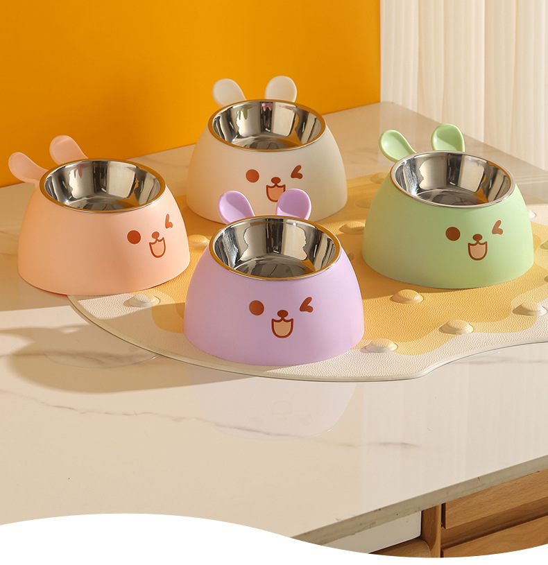 Nuevo tazón para mascotas, tazón para orejas de conejo, cuello desmontable, diagonal, antideslizante, anti-volcado, tazón de alimentación de agua potable de acero inoxidable al por mayor