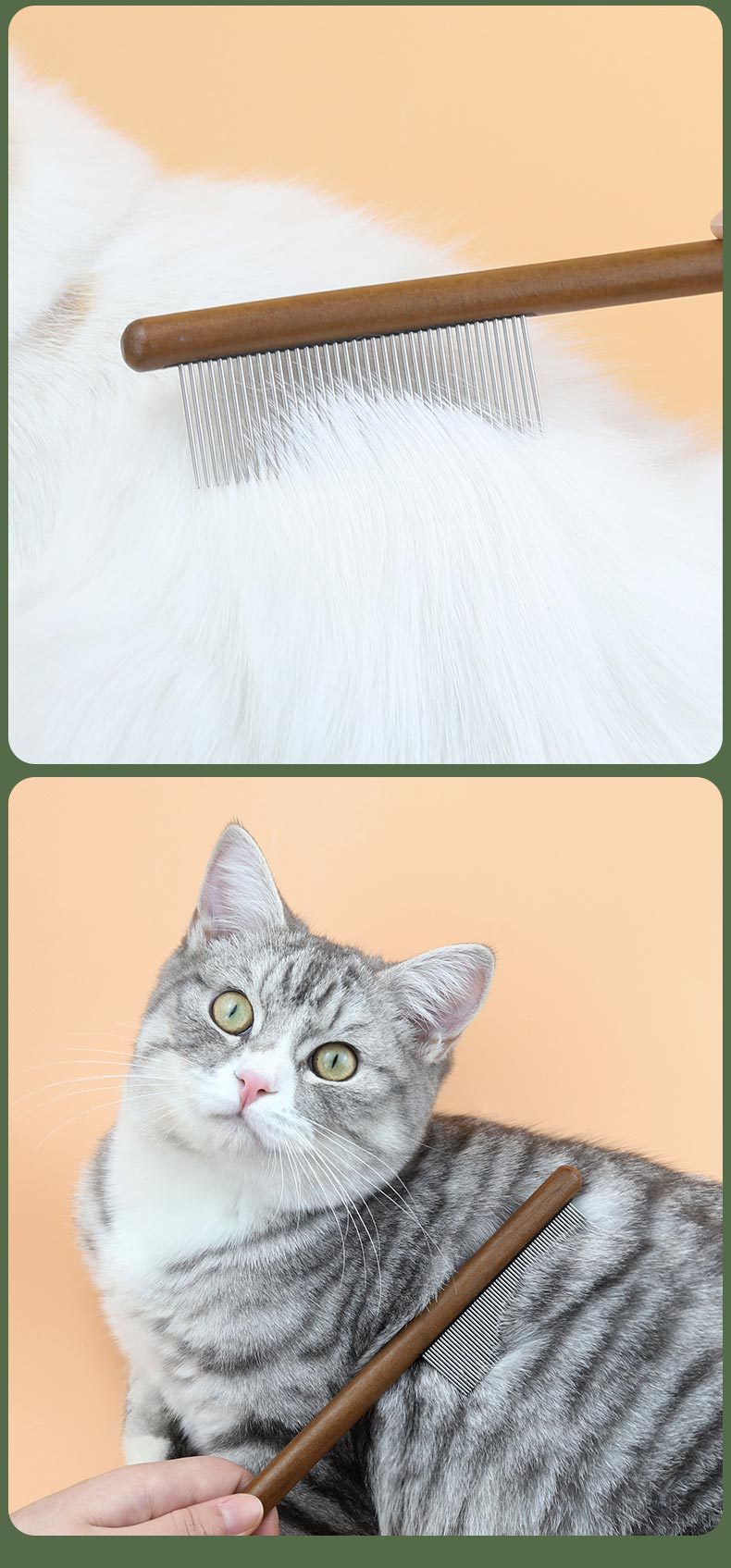 Nueva mascota gato peine depilación de madera maciza de acero inoxidable pulga nudo peine perro limpieza belleza peine