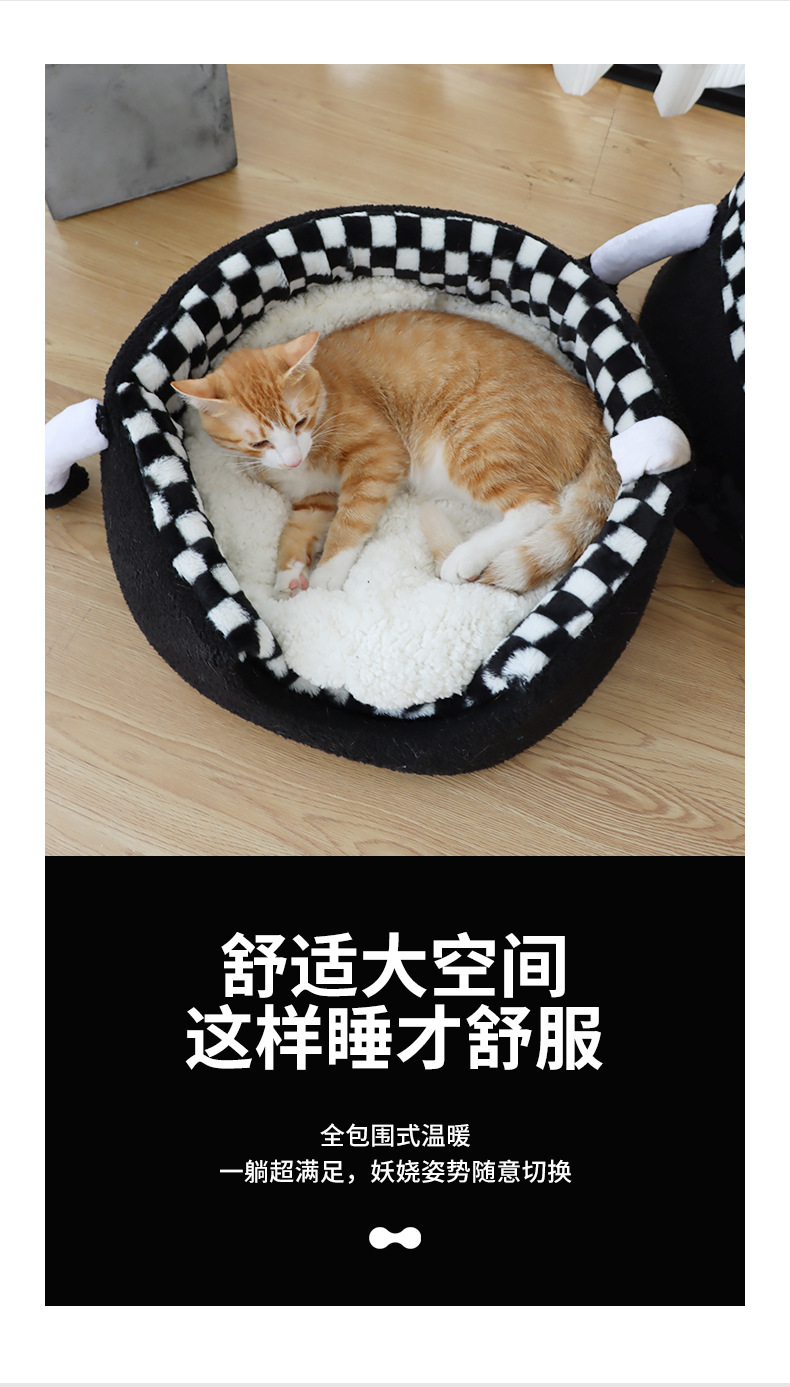 Le ViewSonic gran cara abierta a cuadros en blanco y negro nido para gatos cerrado plegable de doble uso para mascotas Four Seasons Universal