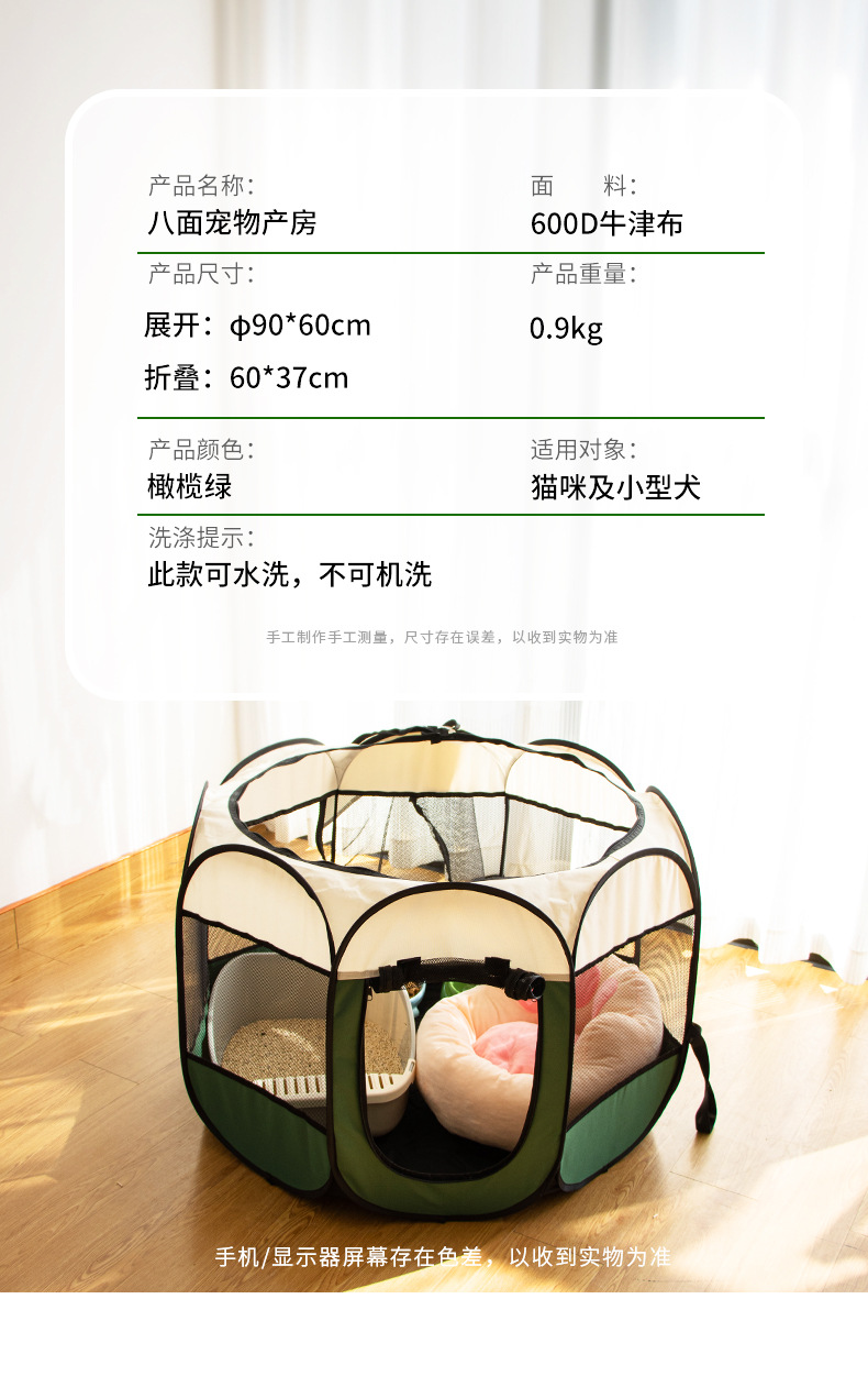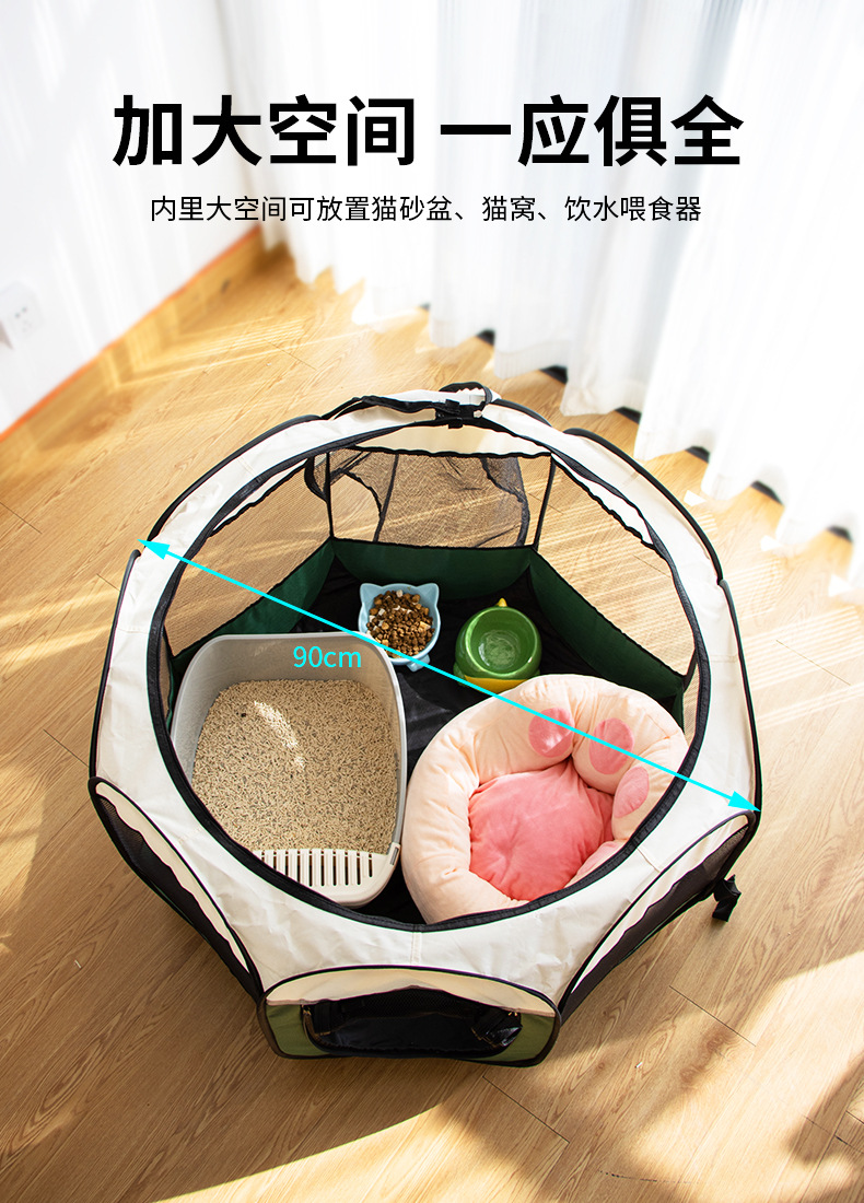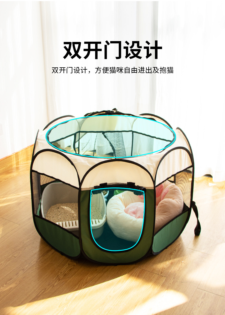 Jaula octogonal para gatos, sala de reparto para gatos, valla plegable, tienda para mascotas, universal para todas las estaciones, nido grande para gatos y jaula para perros para interiores