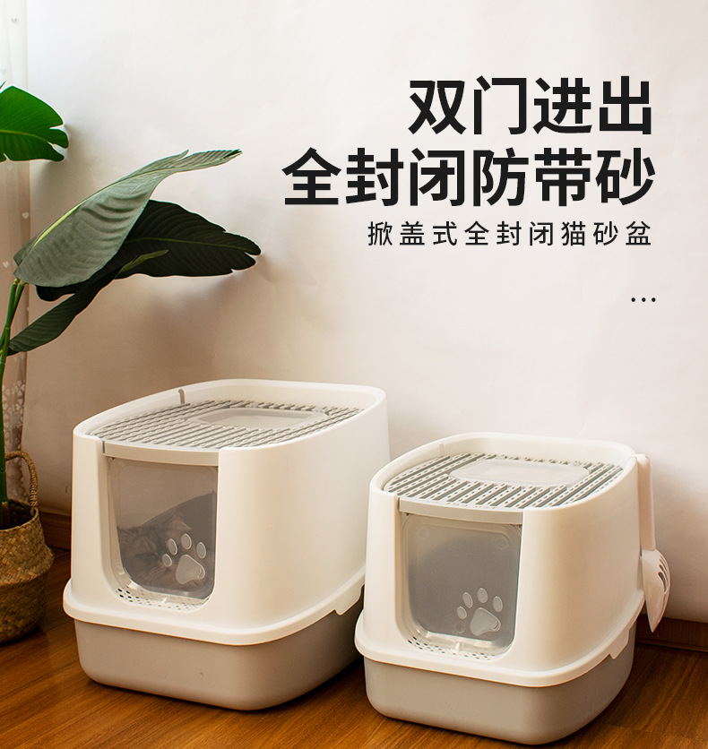 Leyoupai caja de arena para gatos completamente cerrada anti-salpicaduras gato grande desodorante de tocador suministros de limpieza para mascotas arena para gatos
