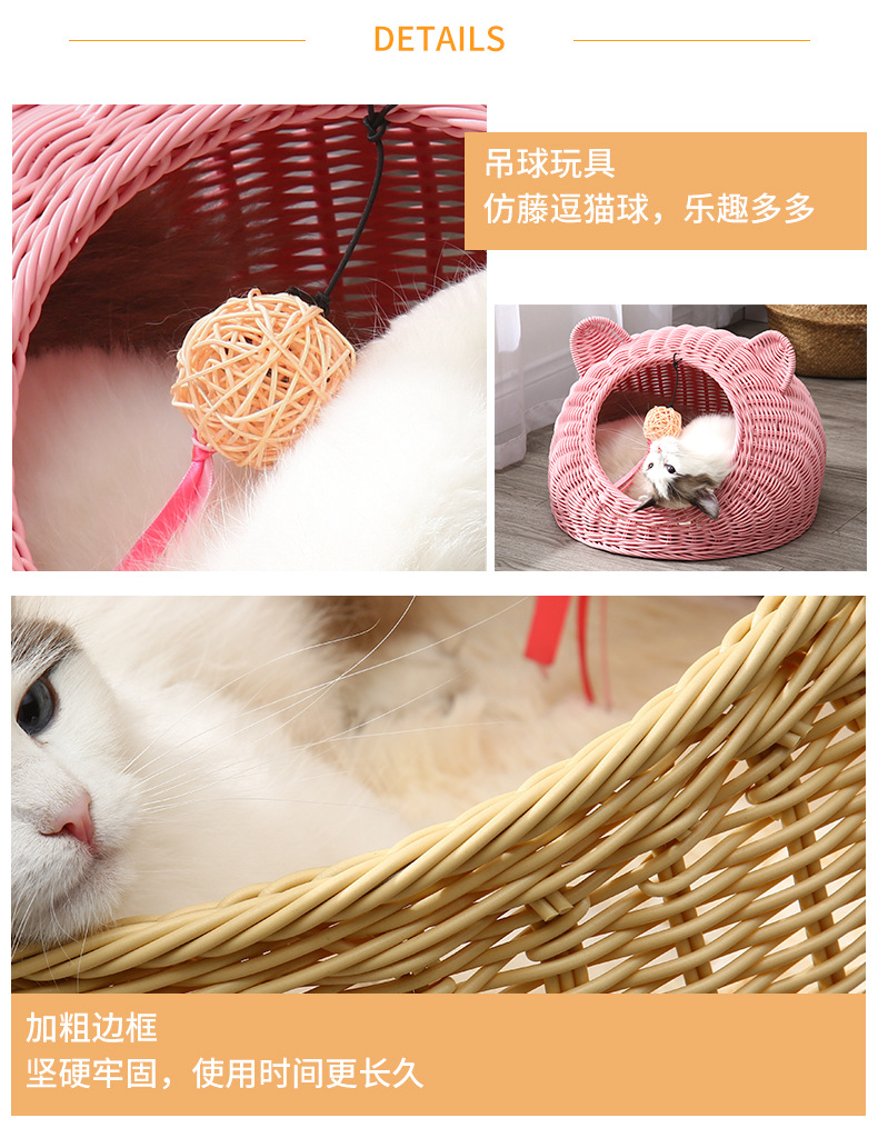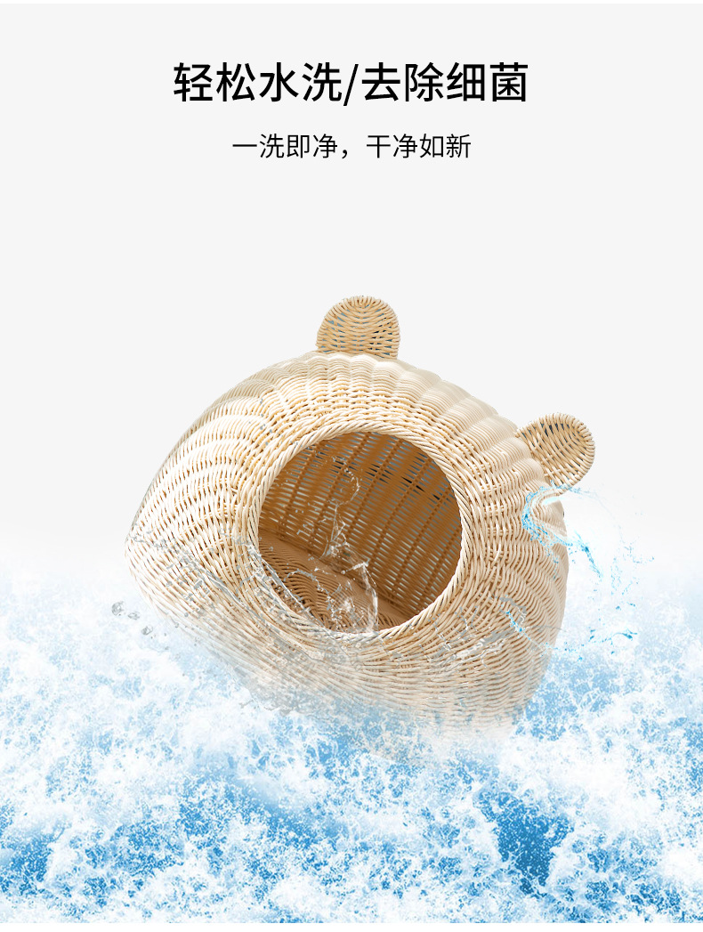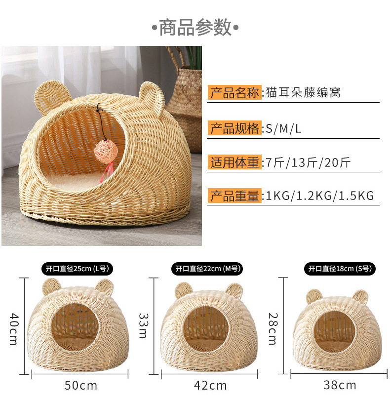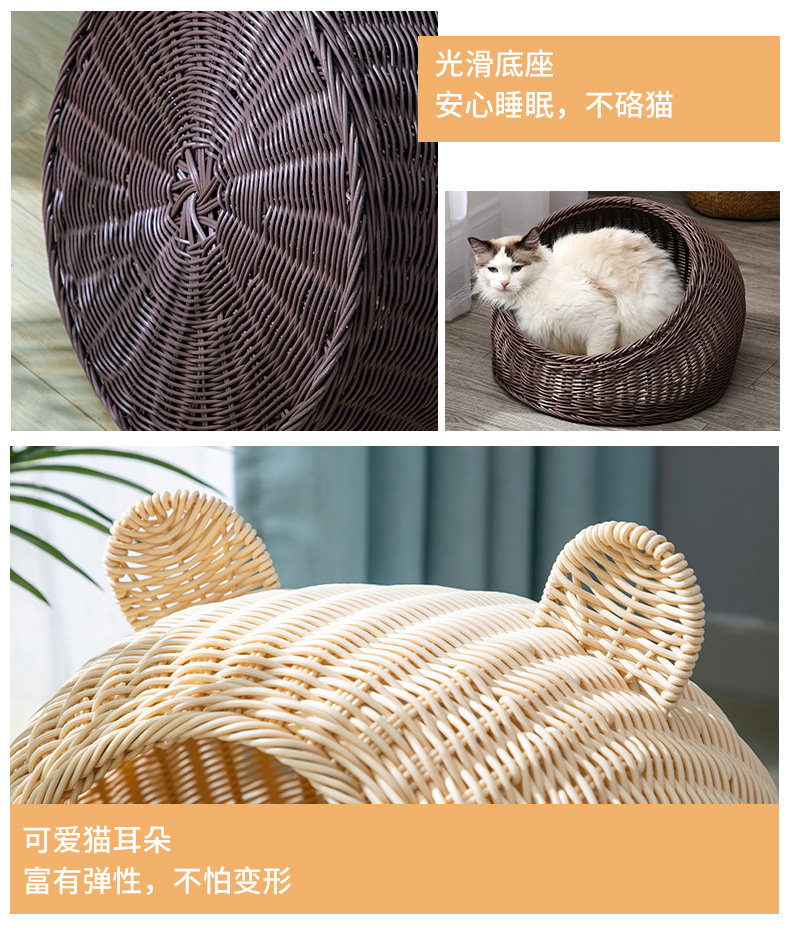 Nido de gato de ratán de imitación de pelo de una pieza lavable, nido de ratán de verano universal de cuatro estaciones, nido para mascotas transpirable semicerrado