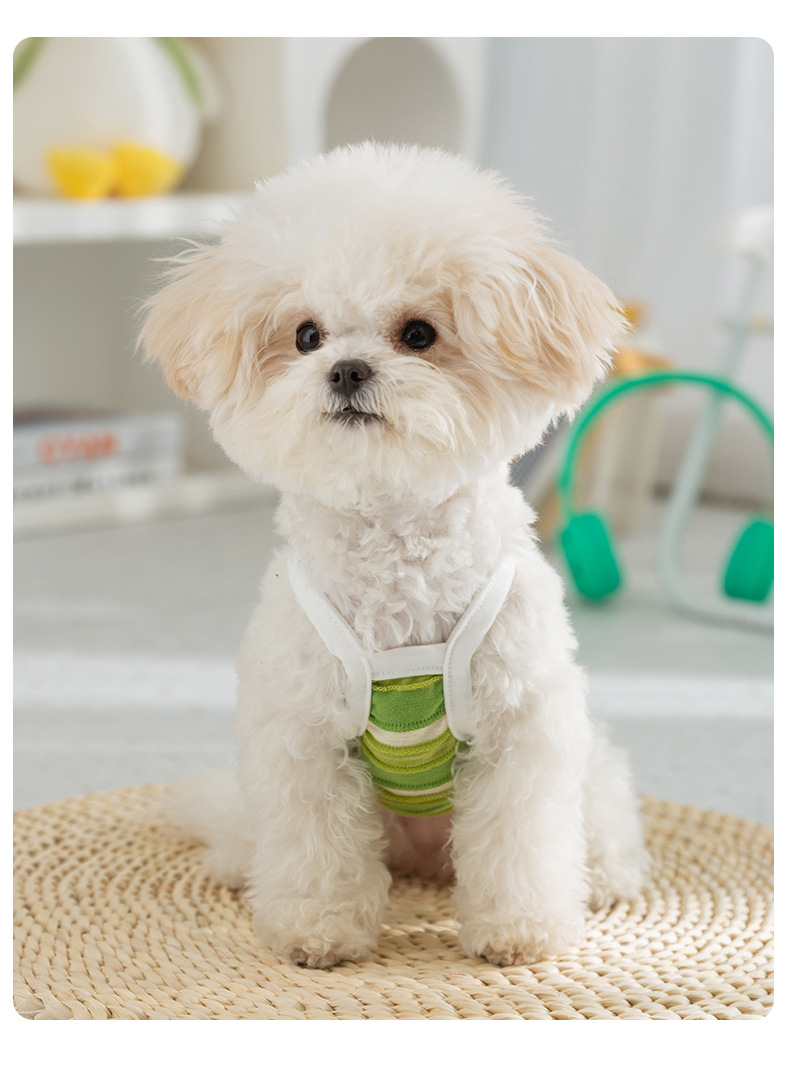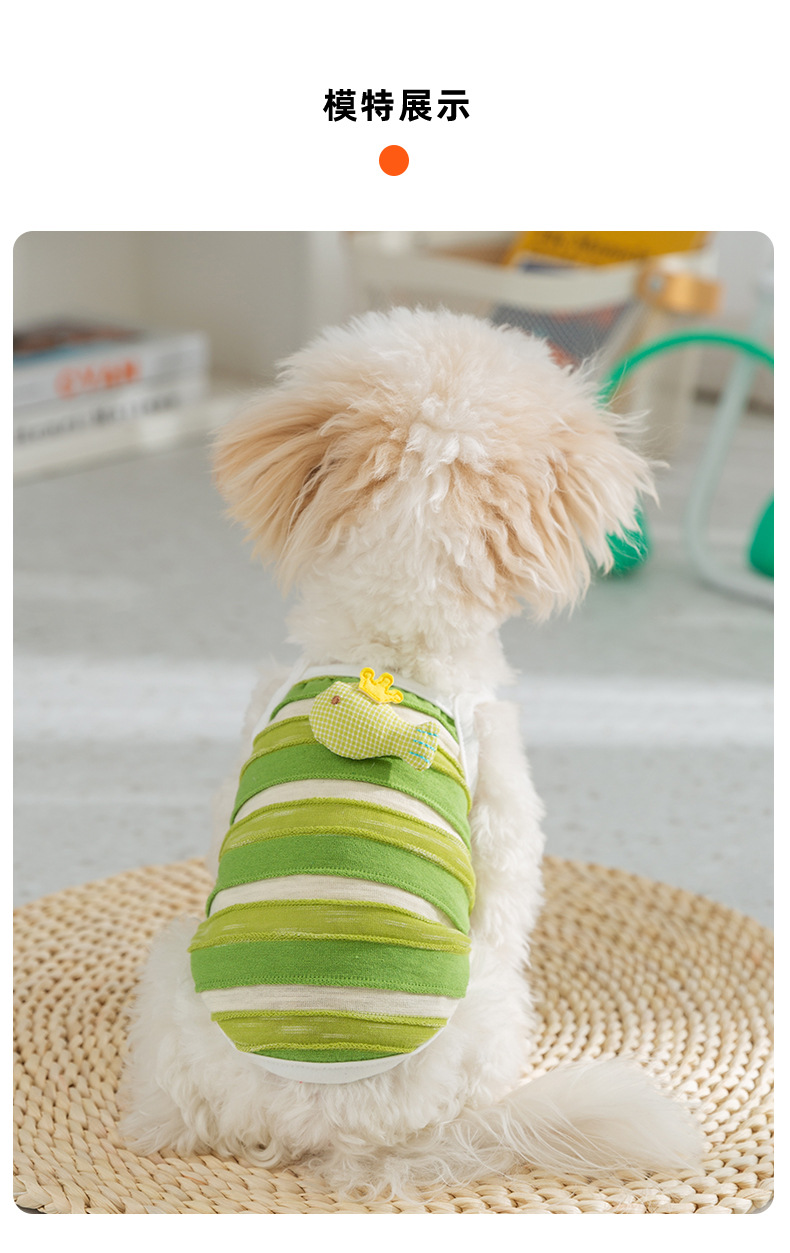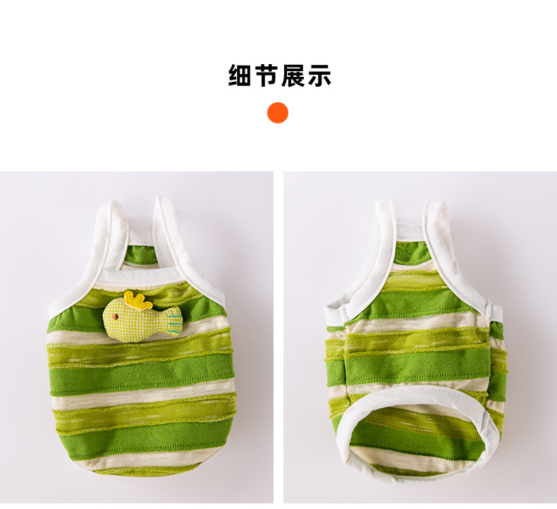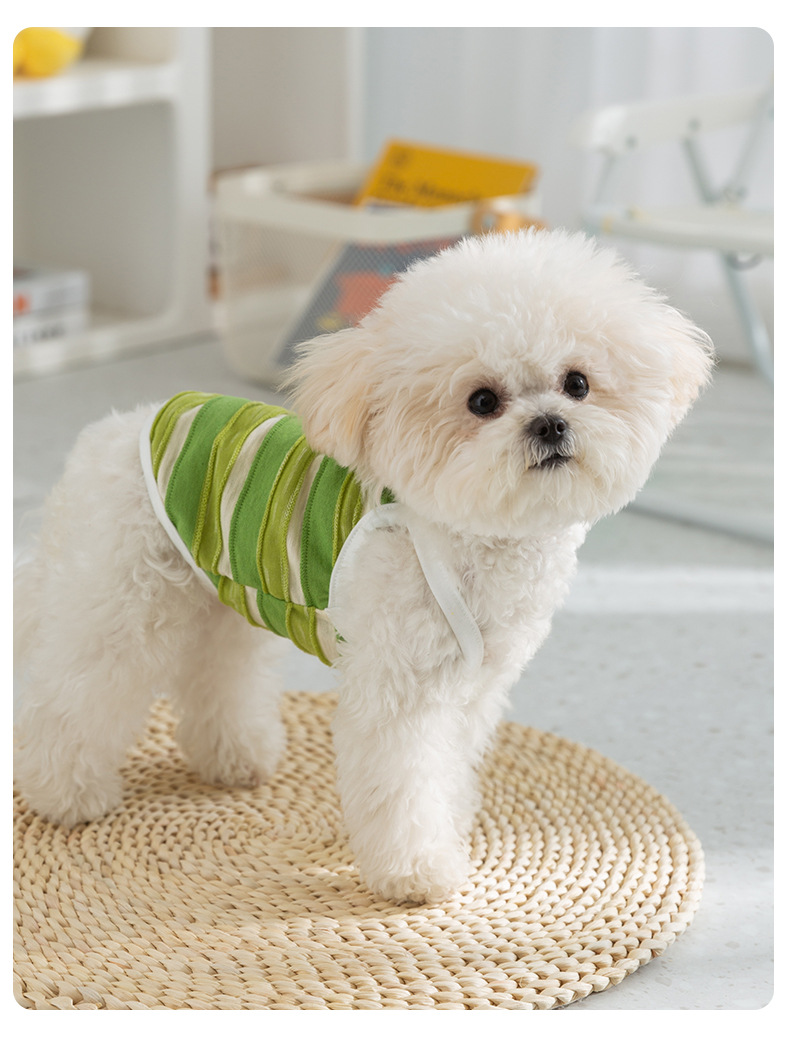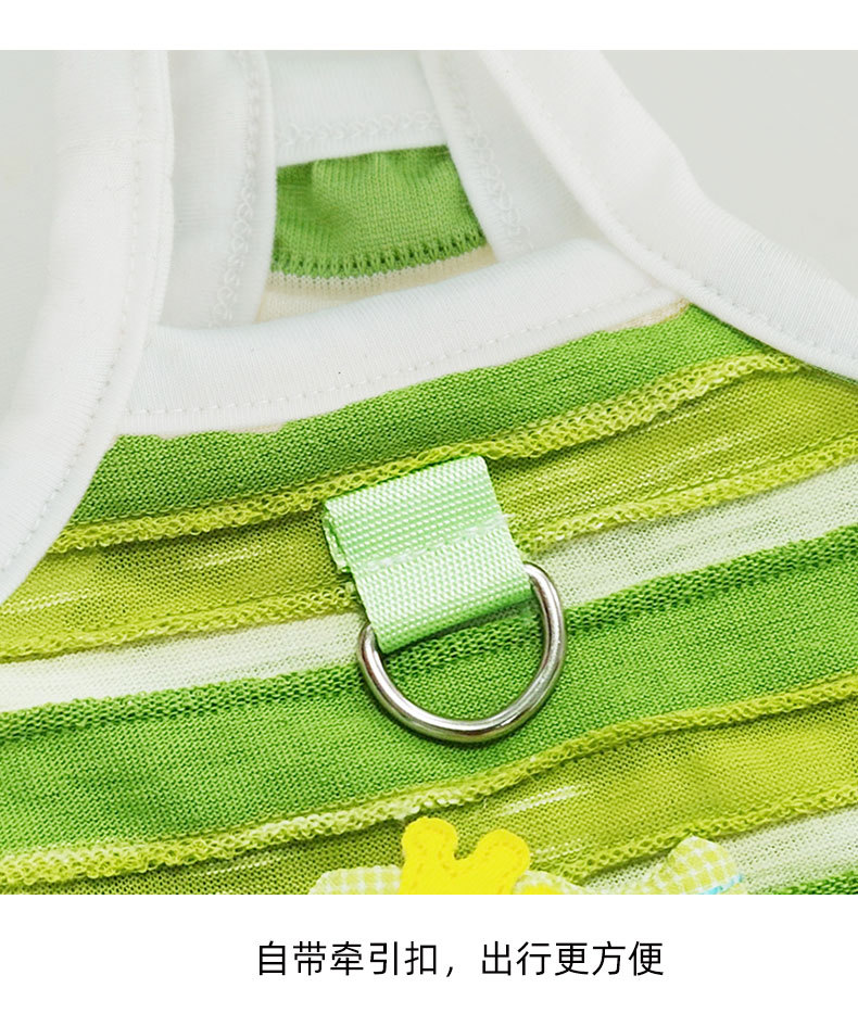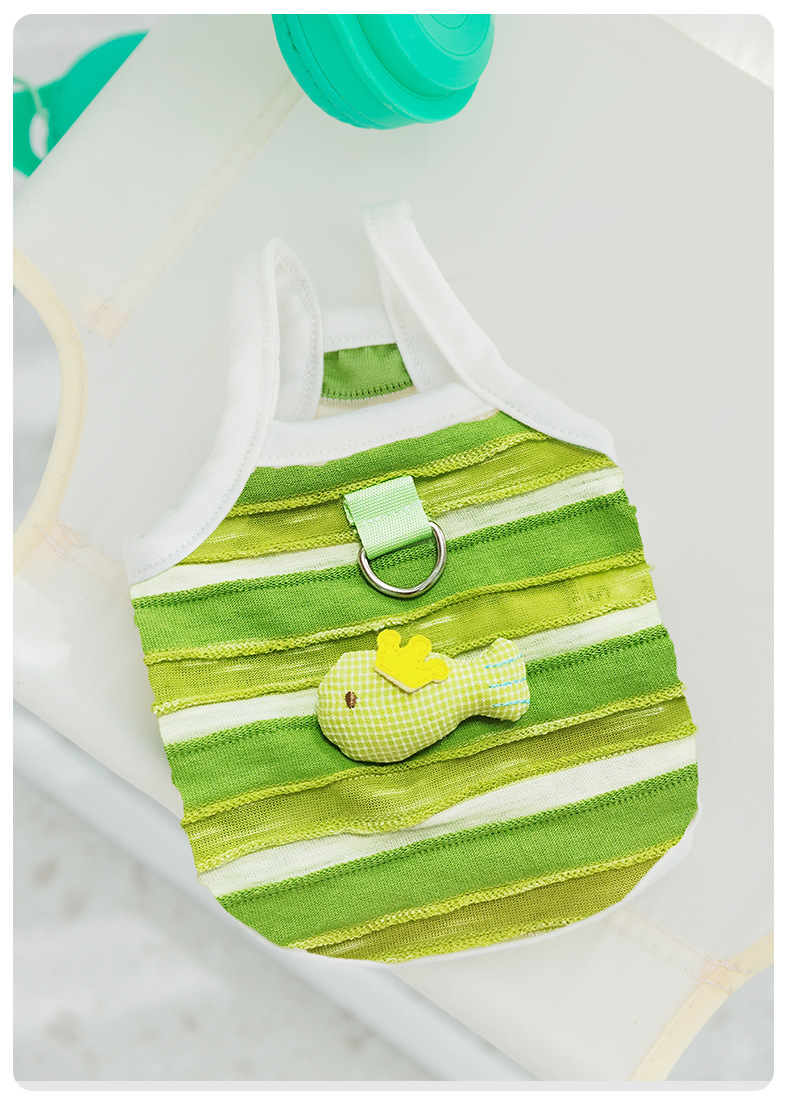 La primavera y el verano delgados transpirables perro rayado pescado tridimensional tracción Sling gato pies lindo perro mascota ropa