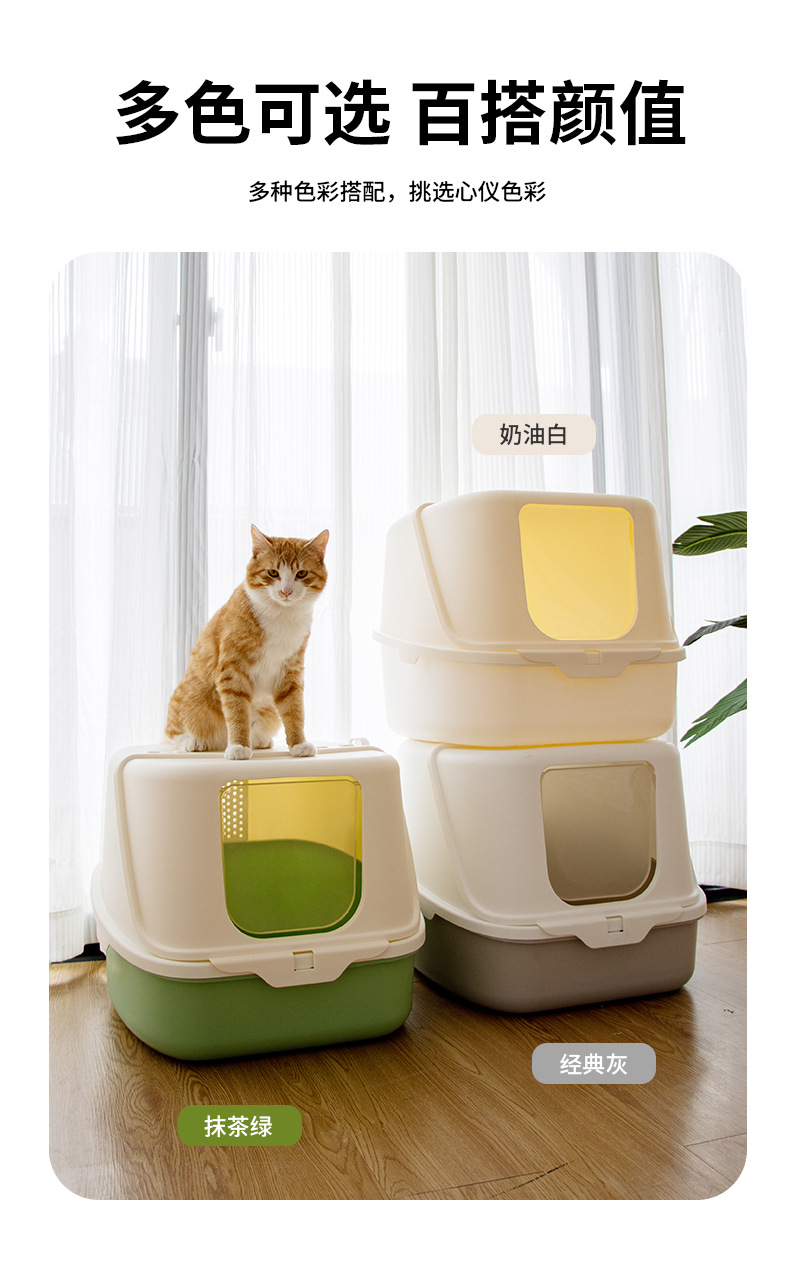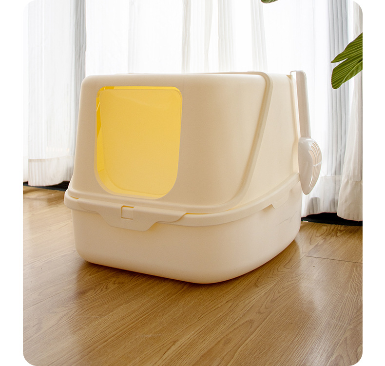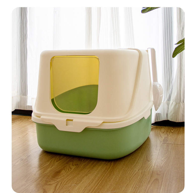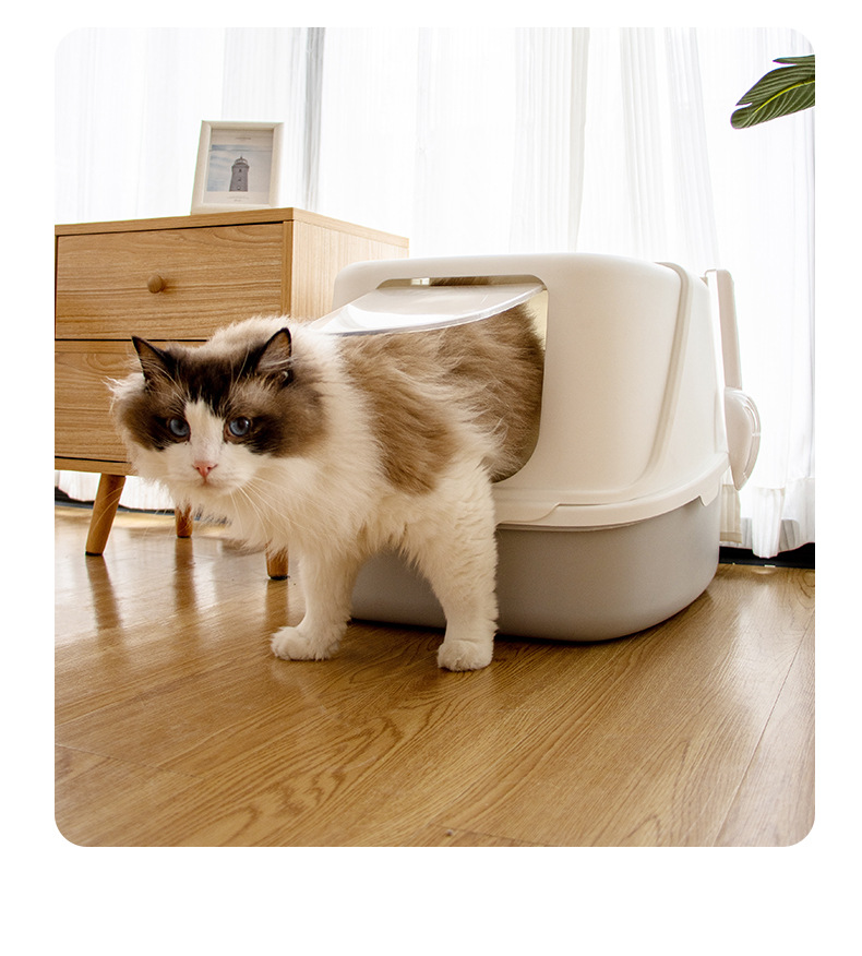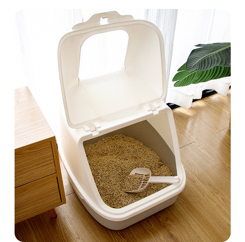Caja de arena abatible Extra grande para gatos, antisalpicaduras cerrada, inodoro desodorizante para gatos, suministros de limpieza para mascotas, pala de arena para gatos gratis