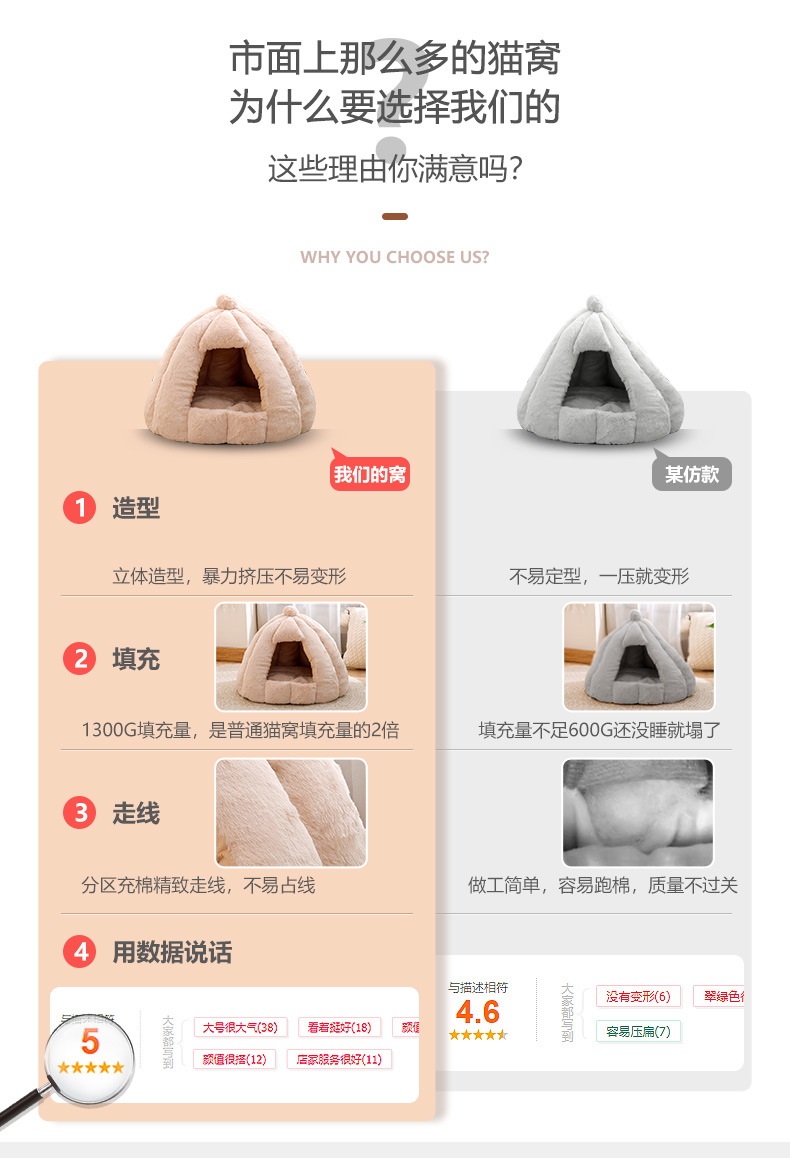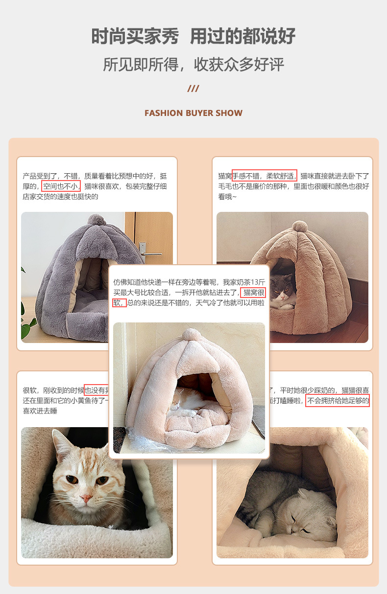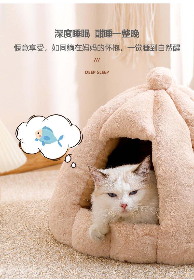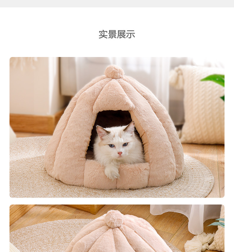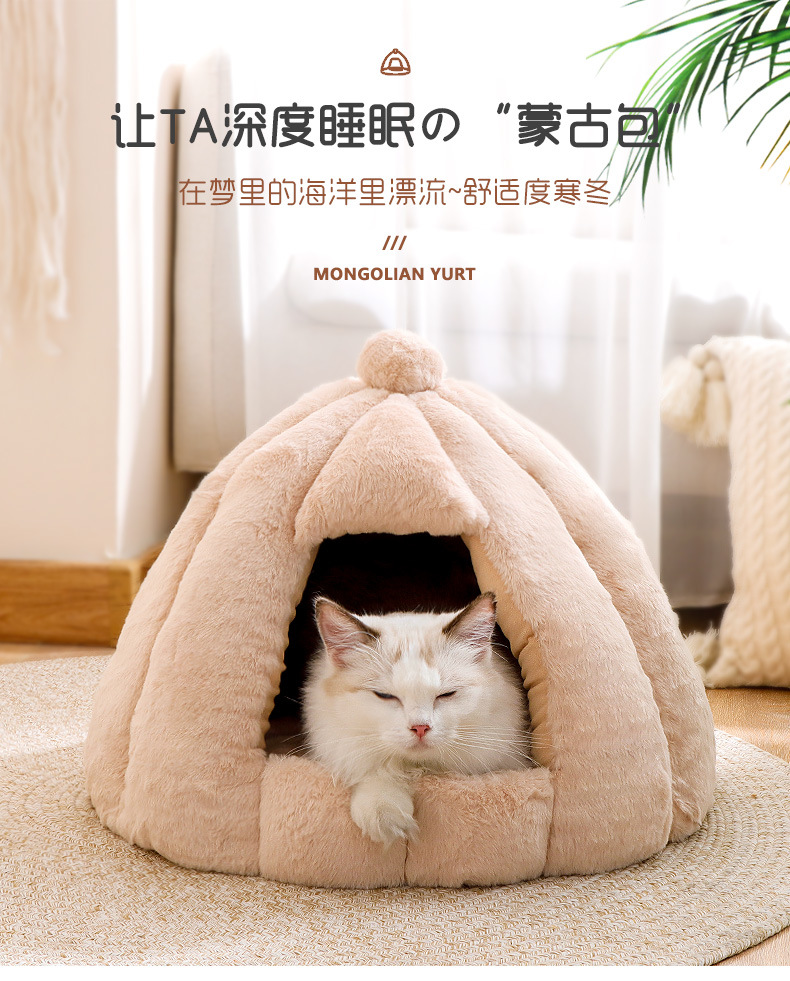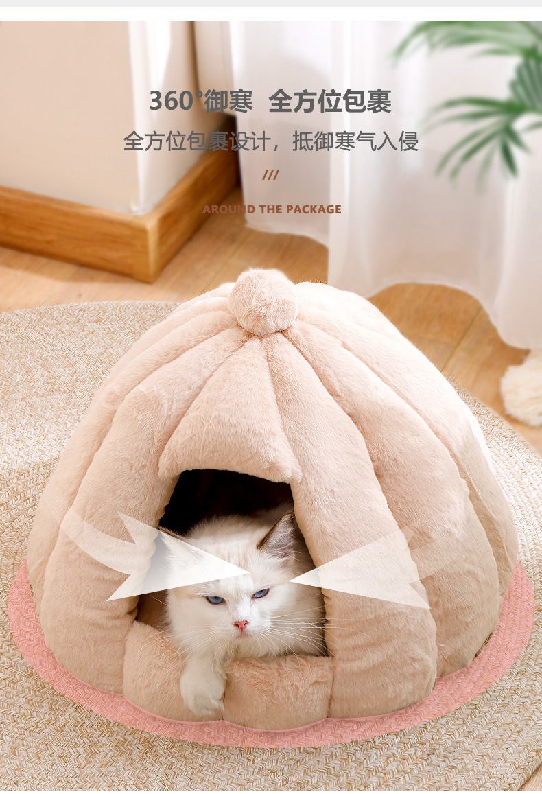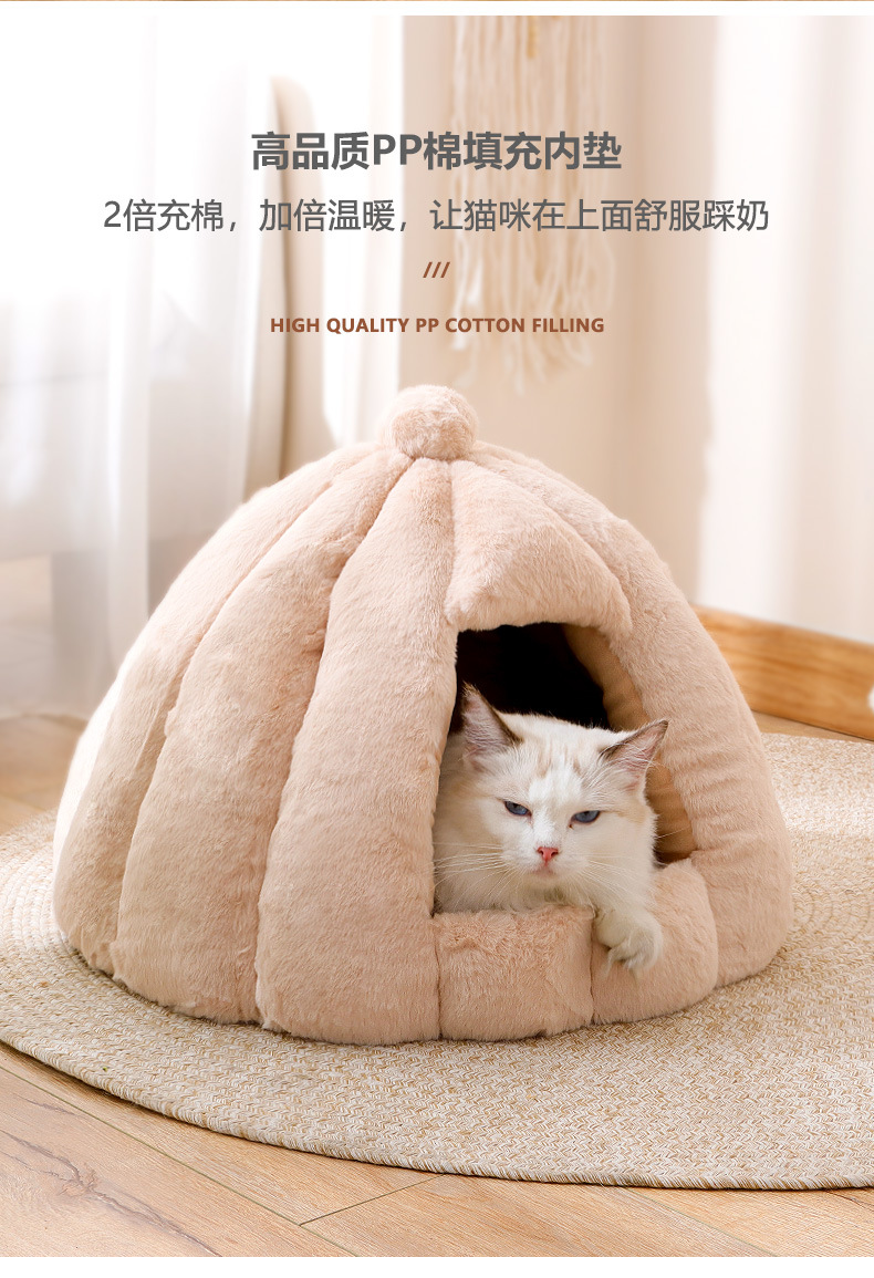 Fabricante de nidos para gatos, cálida en invierno, casa pequeña grande, yurta de oruga de calabaza, fosa para gatos gruesa extraíble y lavable en invierno