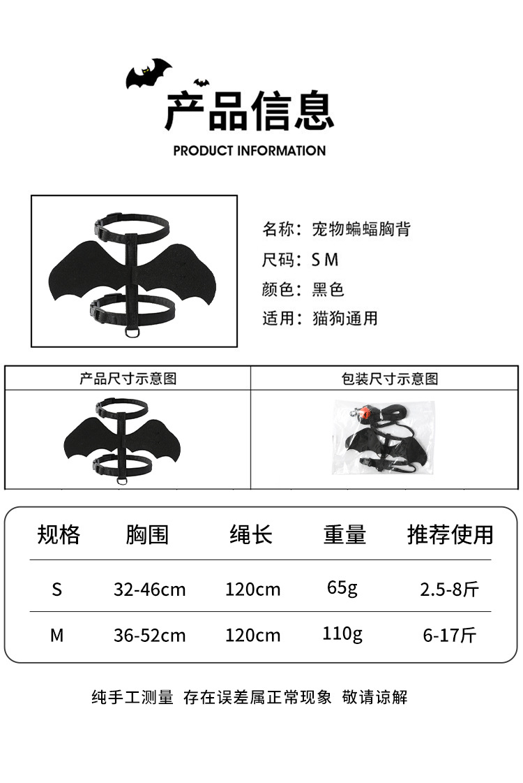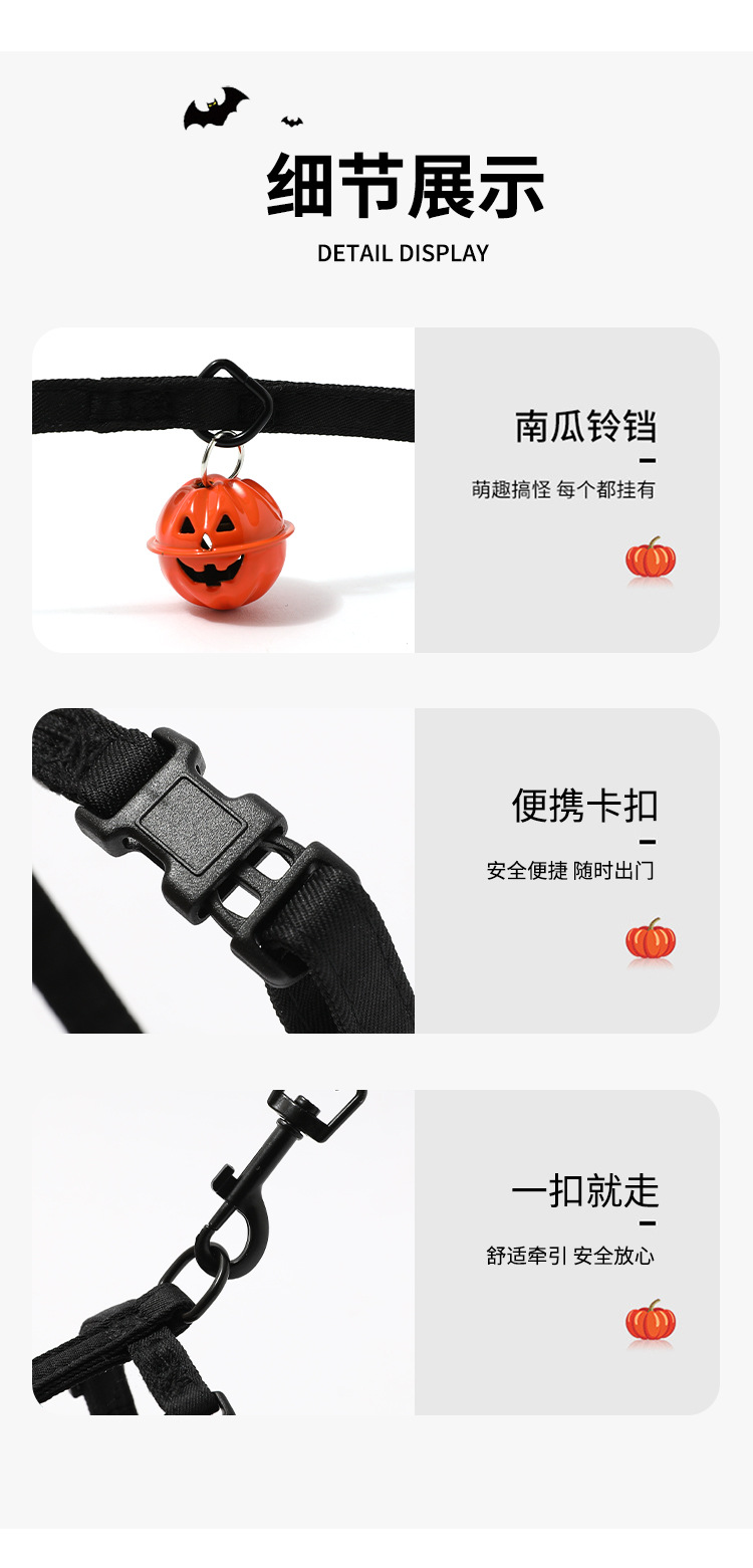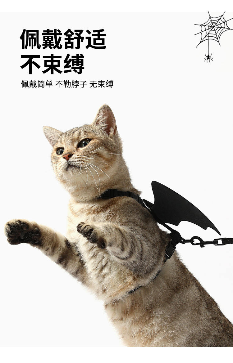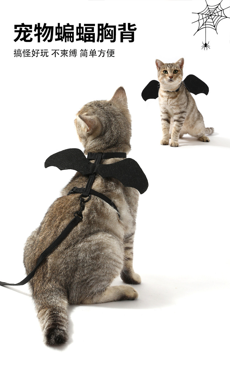 Traje transfronterizo de Halloween para gatos, cuerda de tracción para mascotas, ropa para perros en forma de I, alas de murciélago, pecho y espalda, traje de transformación divertido