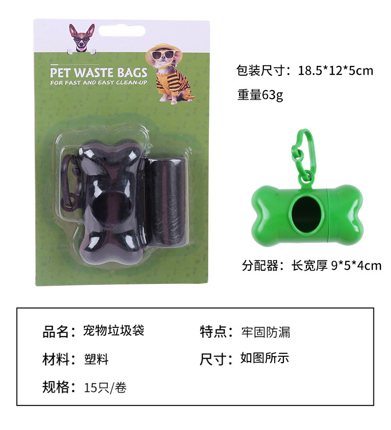 Suministros para mascotas Amazon popular bolsa de basura para mascotas con distribuidor PET pick-up bag Dog pick-up bag
