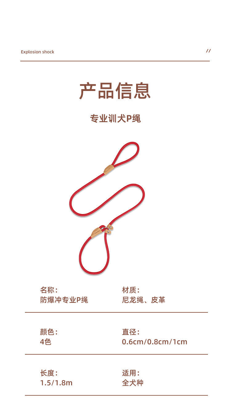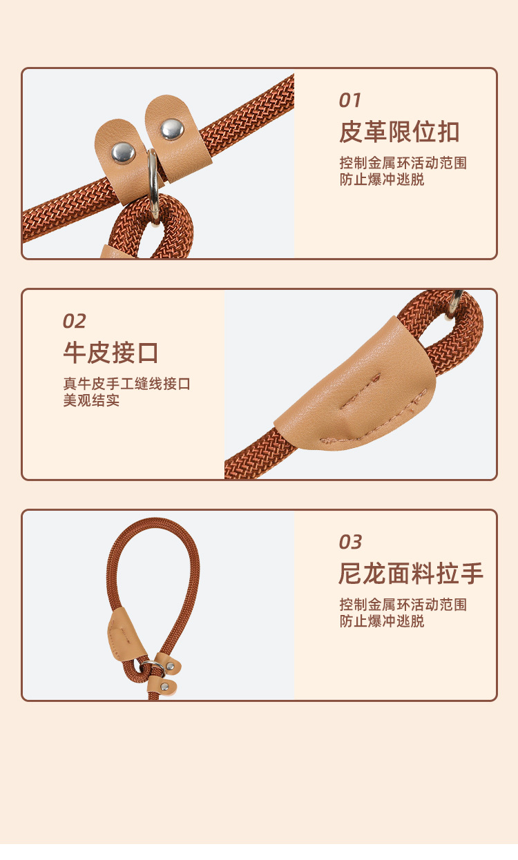 Cuerda de nylon transfronteriza P Cadena de tracción a juego de piel de vaca redonda P cuerda de entrenamiento para caminar perro P cuerda de tracción de perro retráctil
