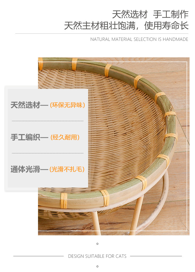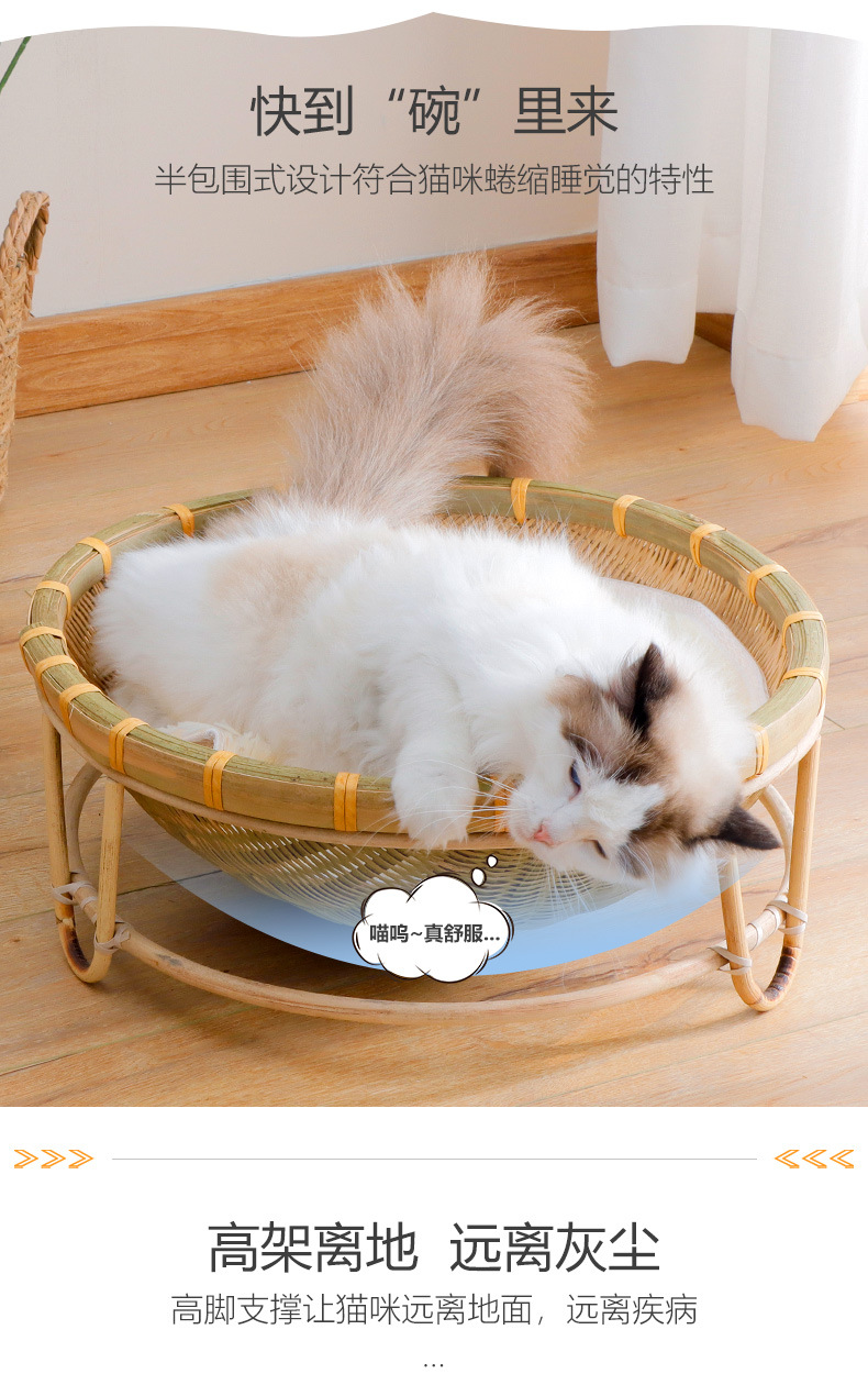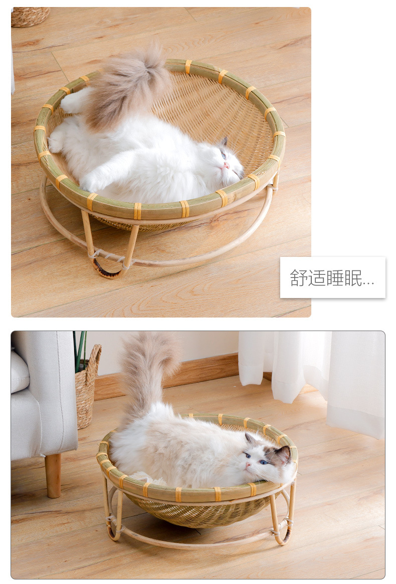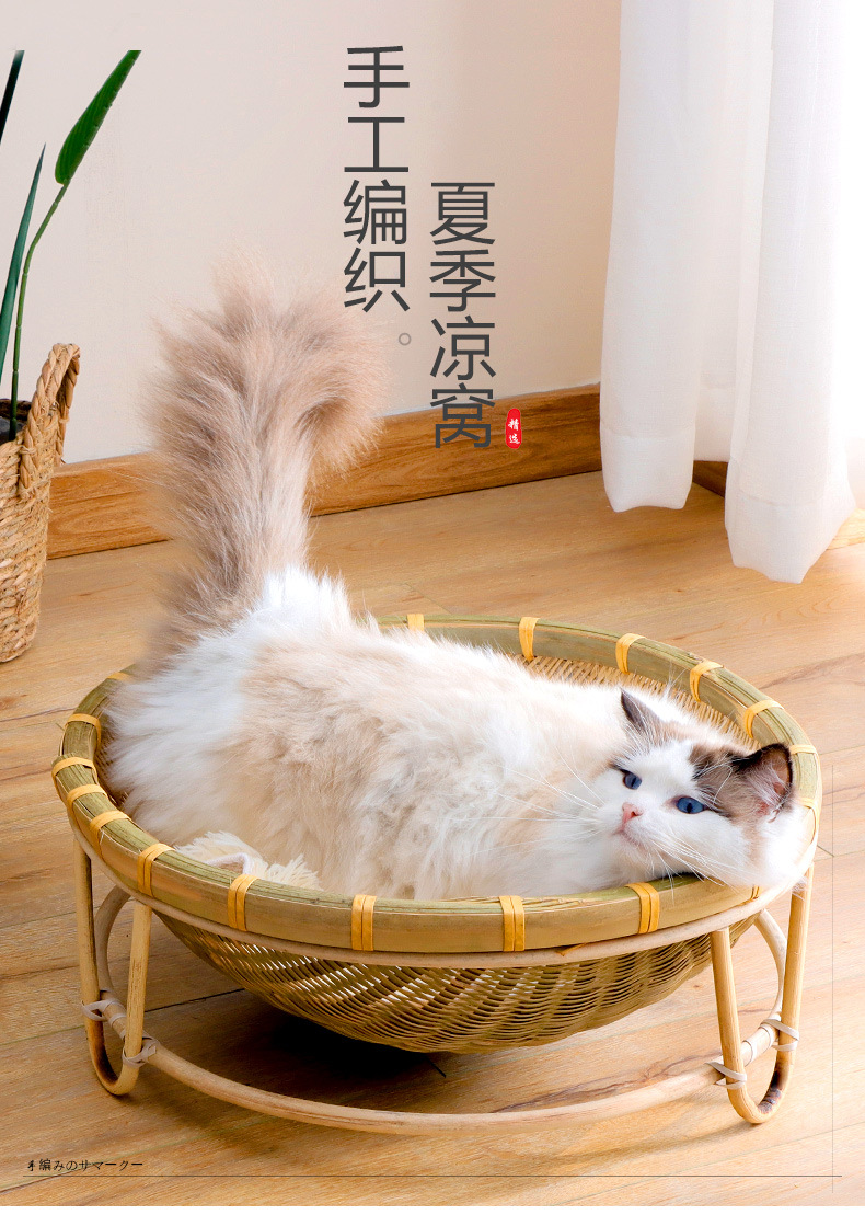 Nido de gato de bambú al por mayor Four Seasons universal semicerrado nido de gato de verano lavable tejido juguete suministros para mascotas