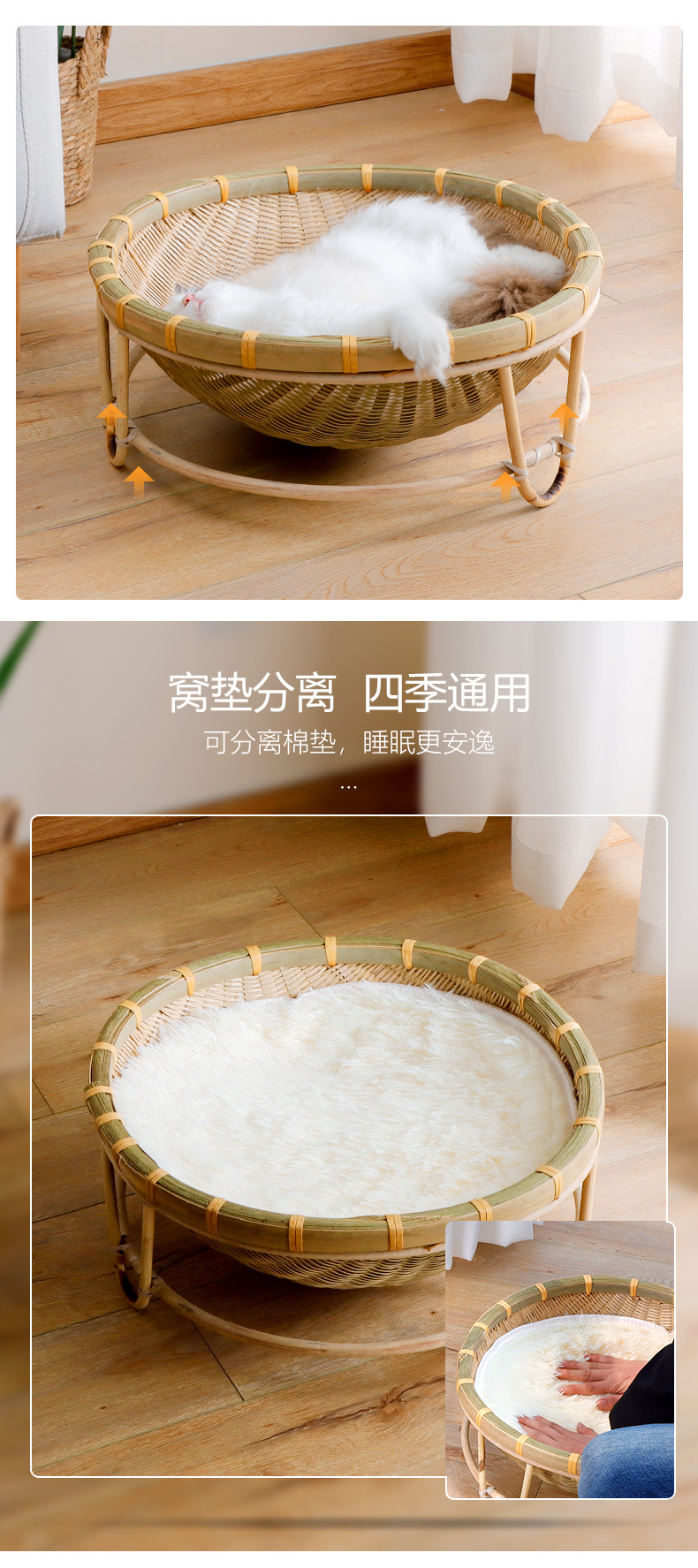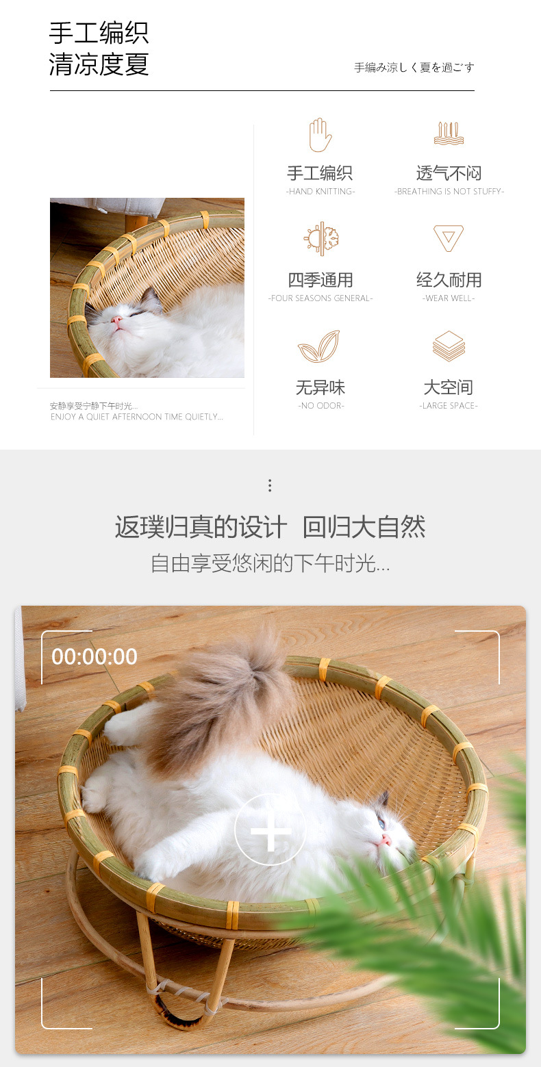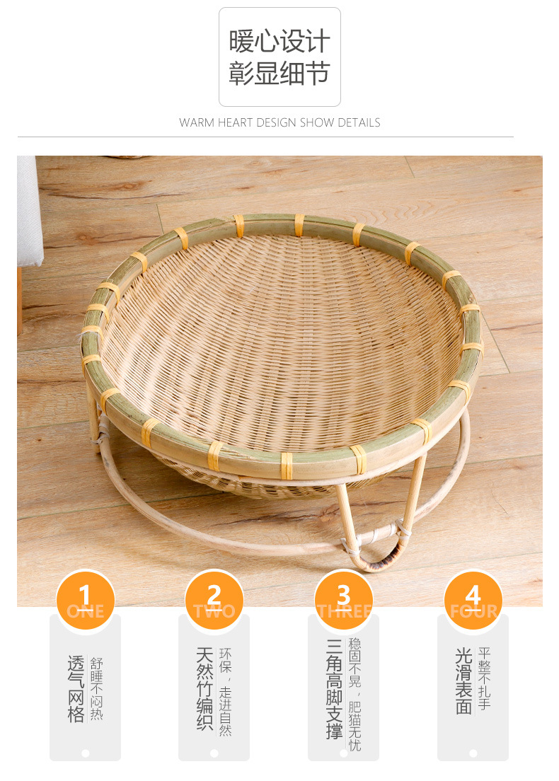 Nido de gato de bambú al por mayor Four Seasons universal semicerrado nido de gato de verano lavable tejido juguete suministros para mascotas