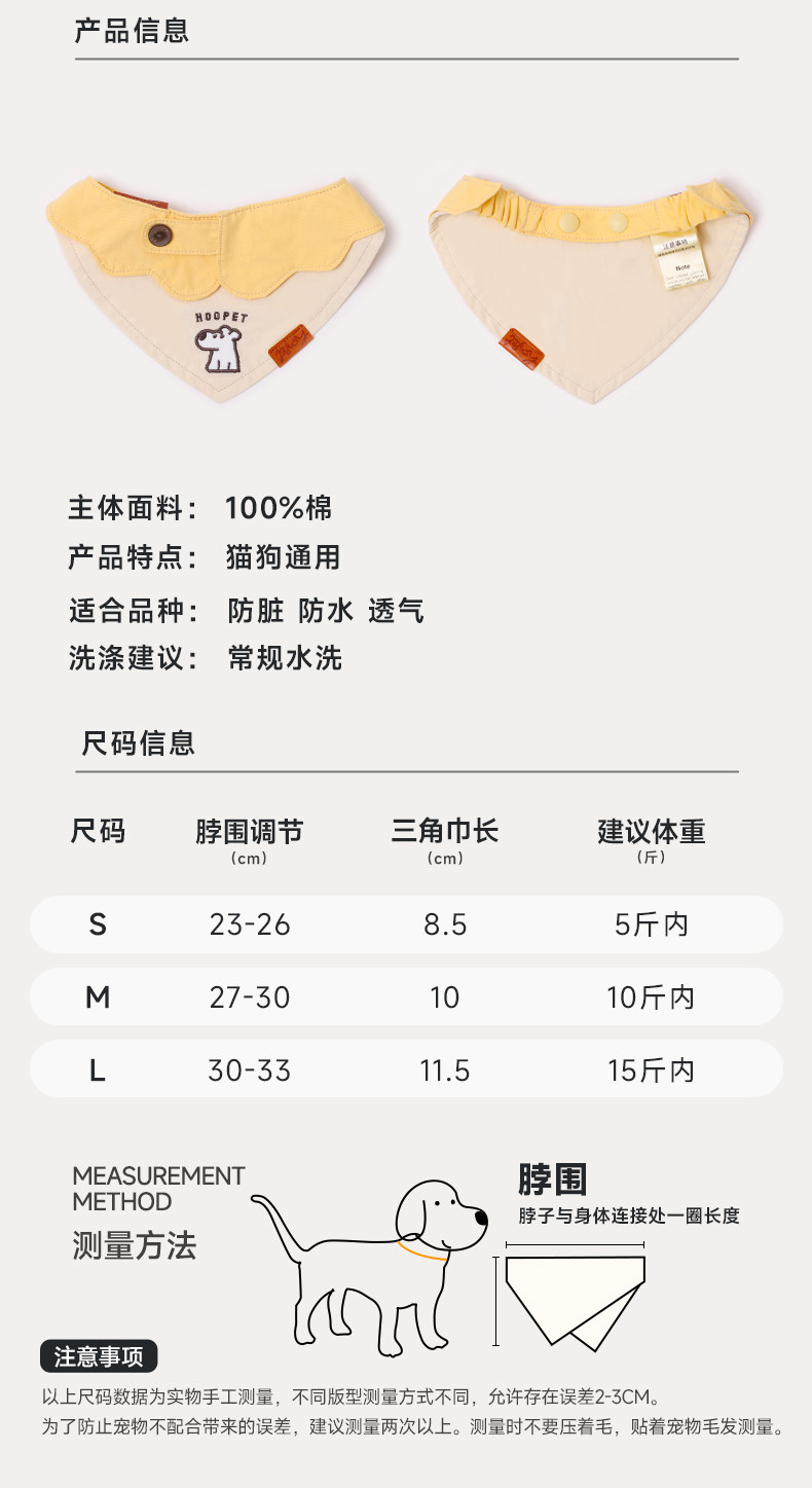 L: circunferencia del cuello 30-33 * longitud de la toalla triangular 11.5CM