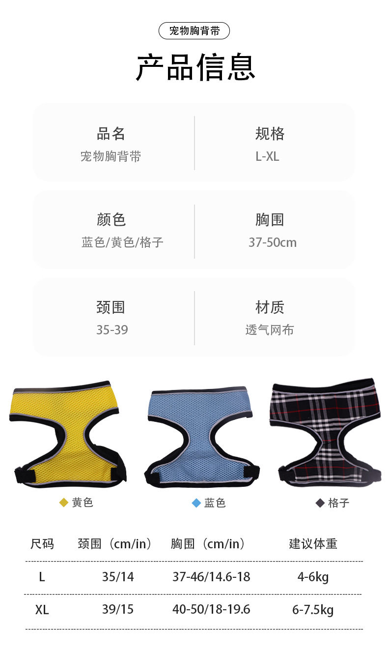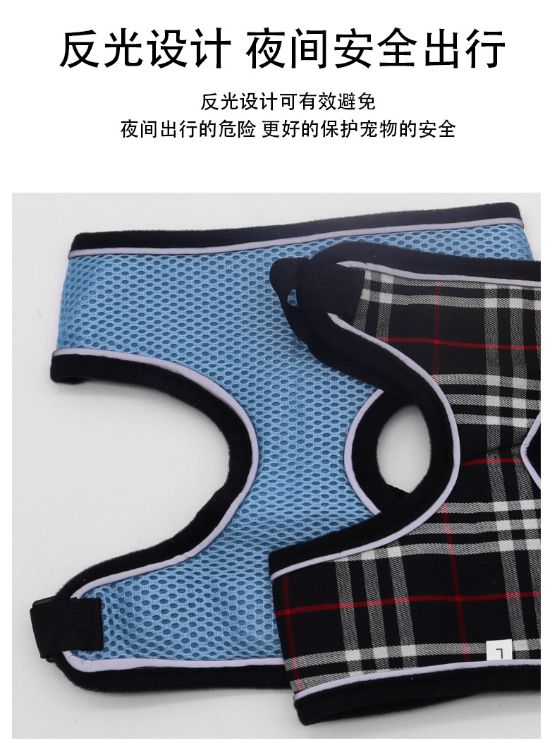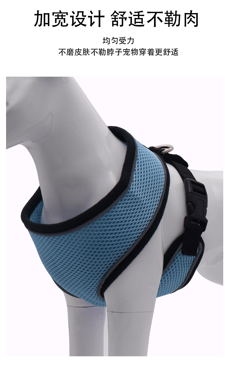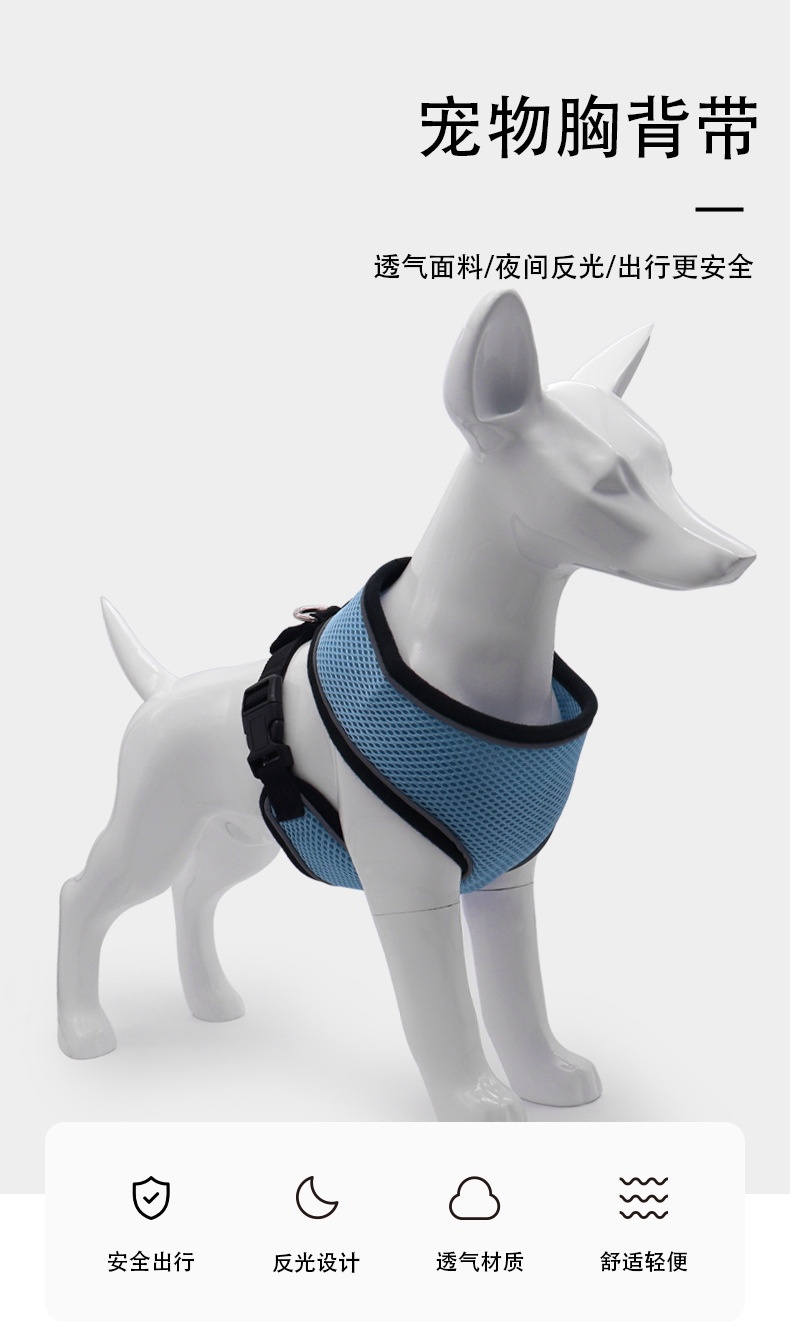 Correa transpirable para el pecho para mascotas, cuerda de tracción para perros pequeños, gato y perro, grueso en forma de I, reflectante, anti-liberación, pecho y espalda