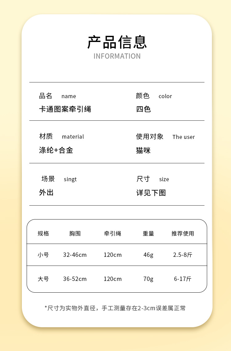 Cuerda de tracción para gatos transfronteriza, anti-pérdida, cuerda ajustable para pasear a los gatos, correa para el pecho para salir, suministros para perros